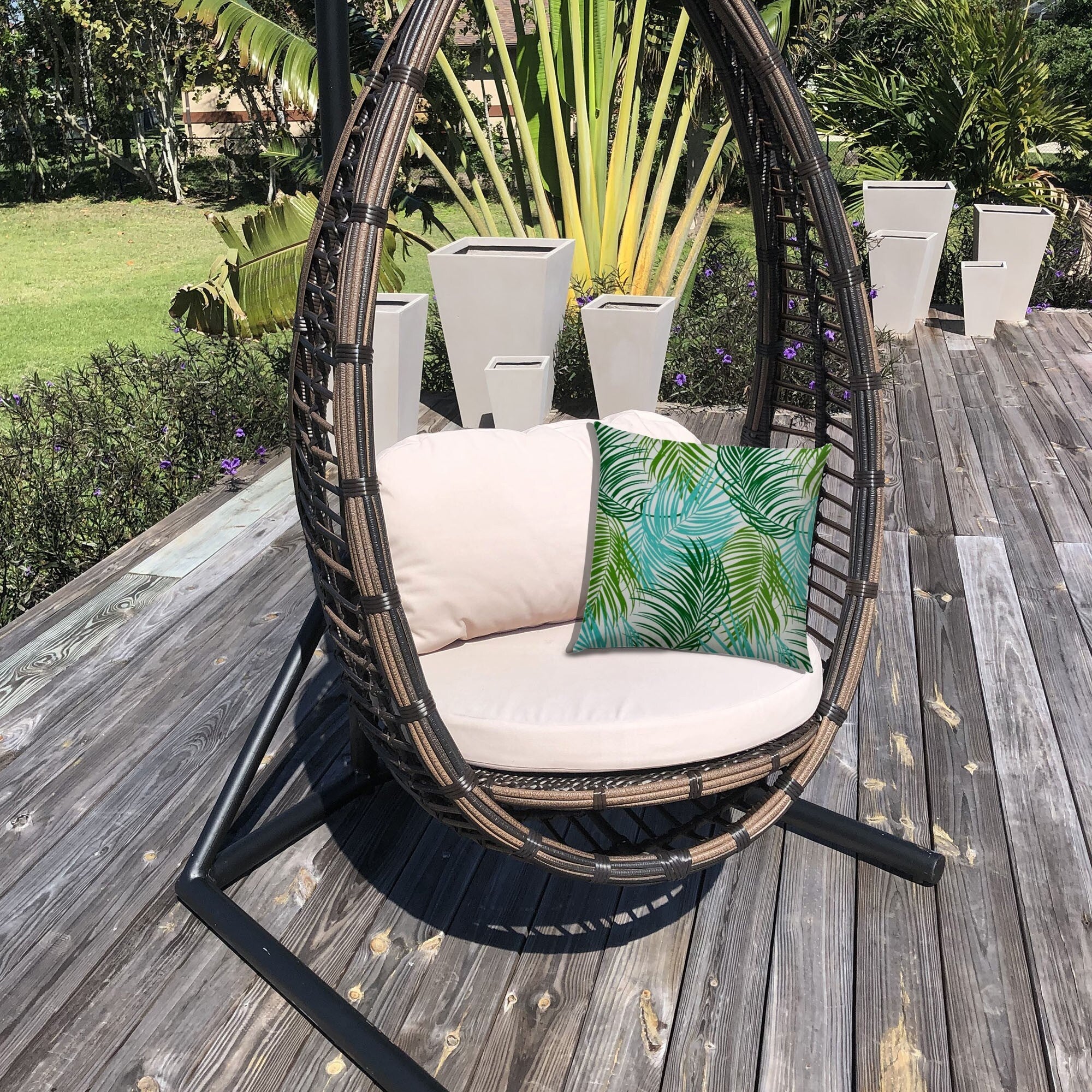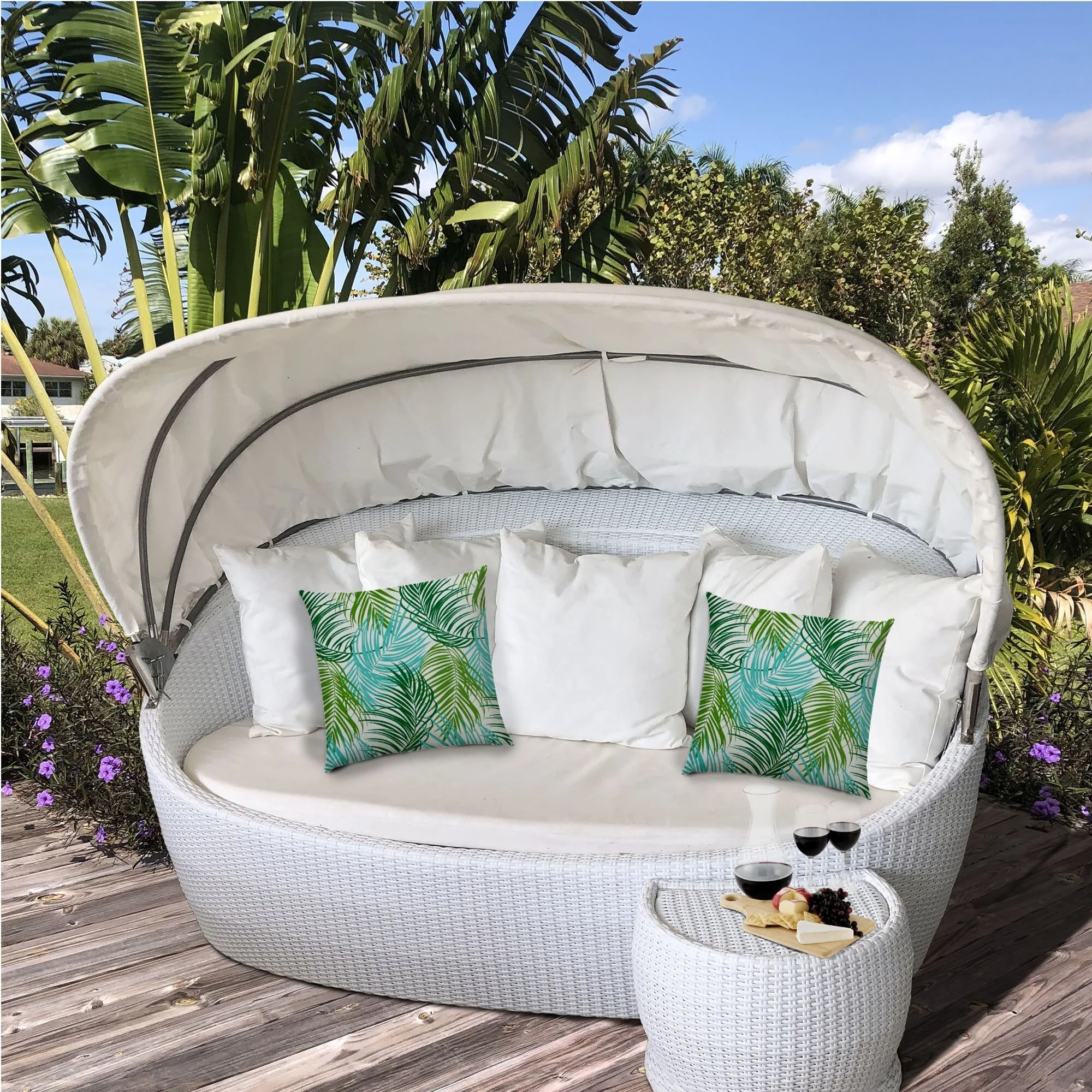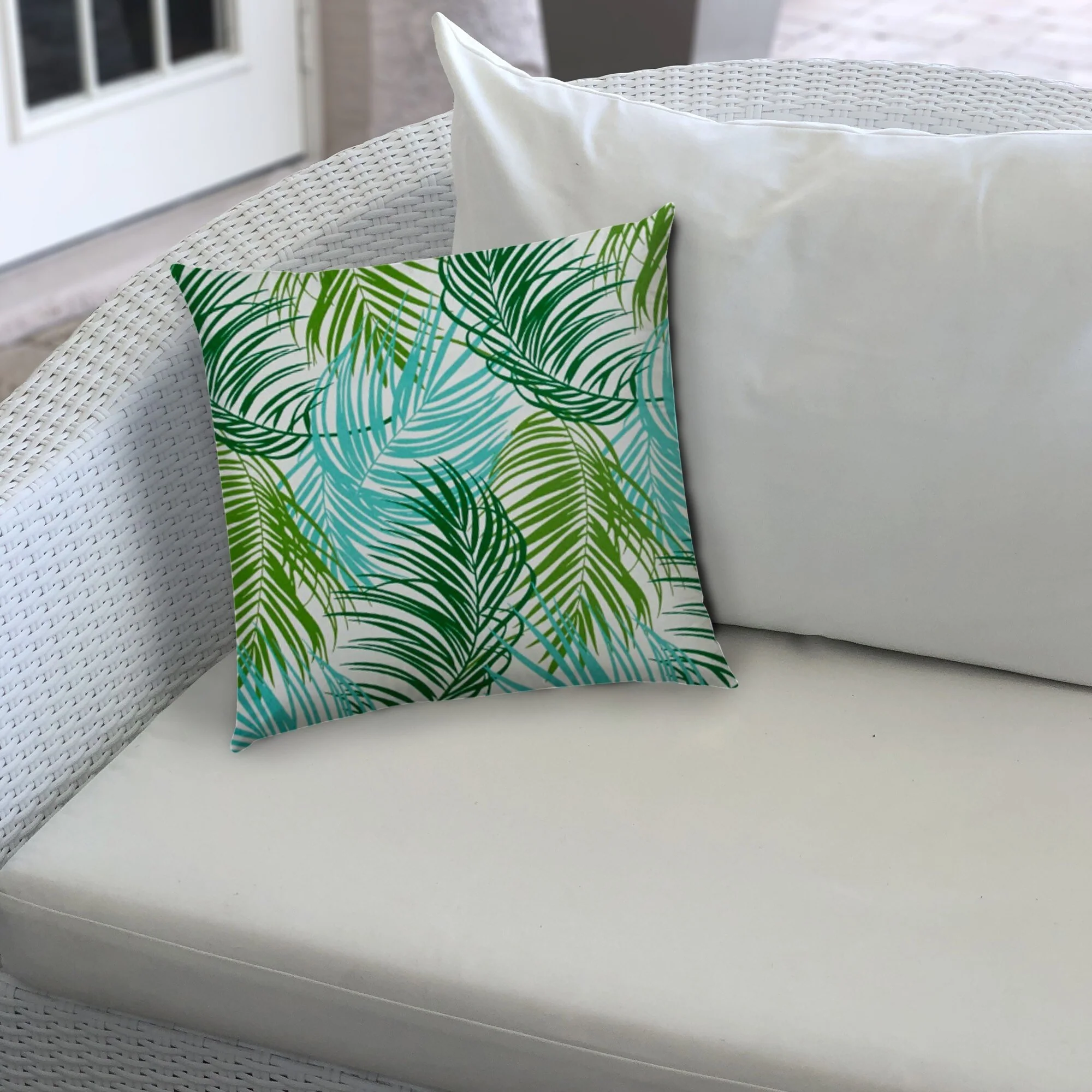 20" X 20" Aqua Green And White Zippered Polyester Tropical Throw Pillow Cover