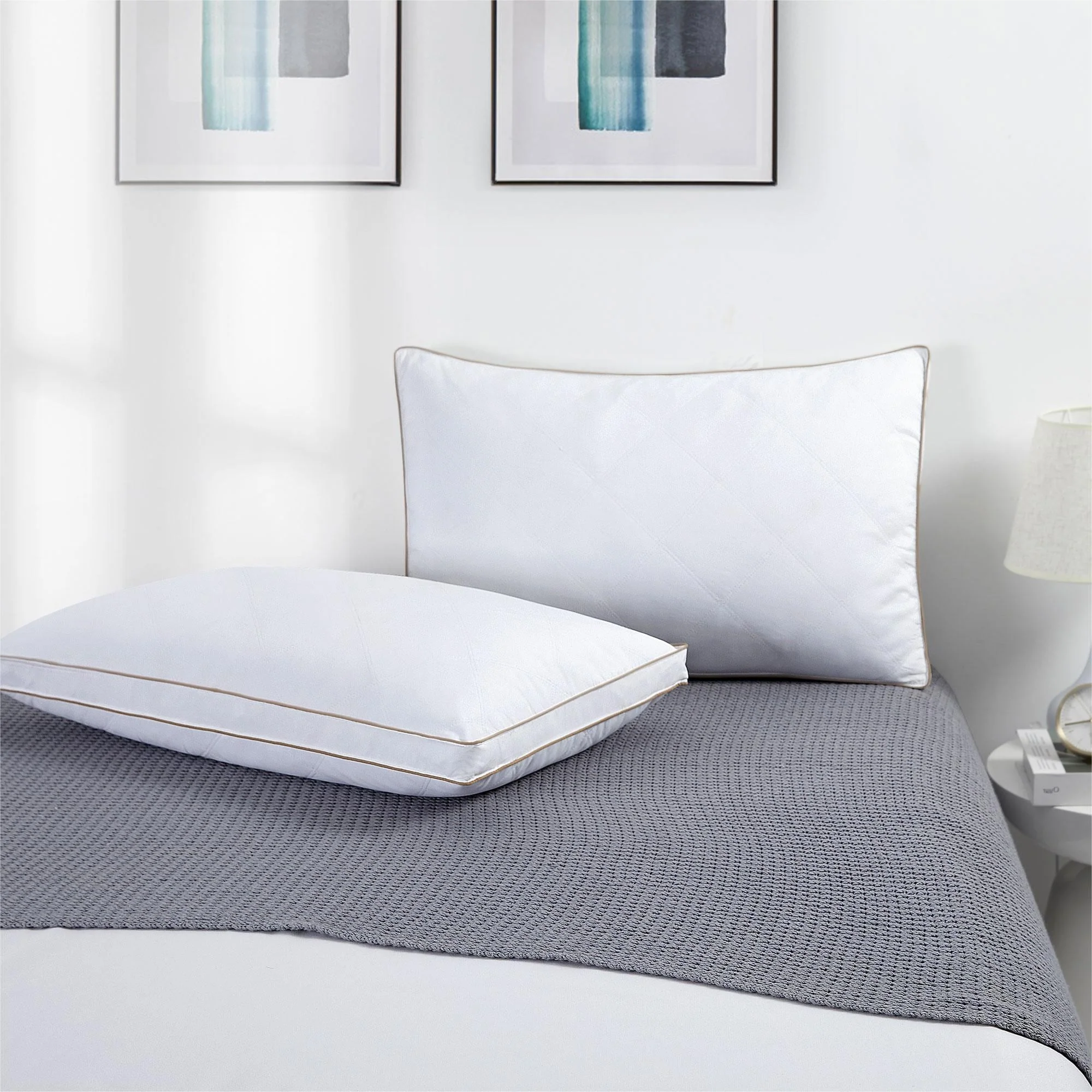 Quilted Cotton Goose Feather Down Pillow, Medium Support Pack of 2 - White