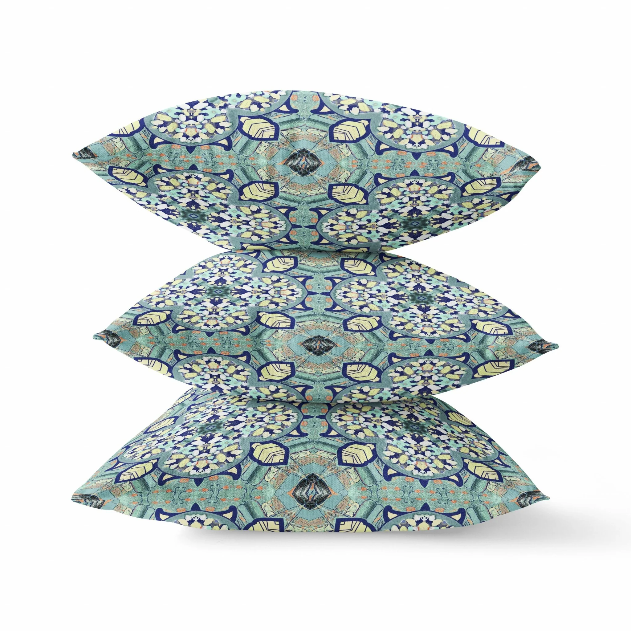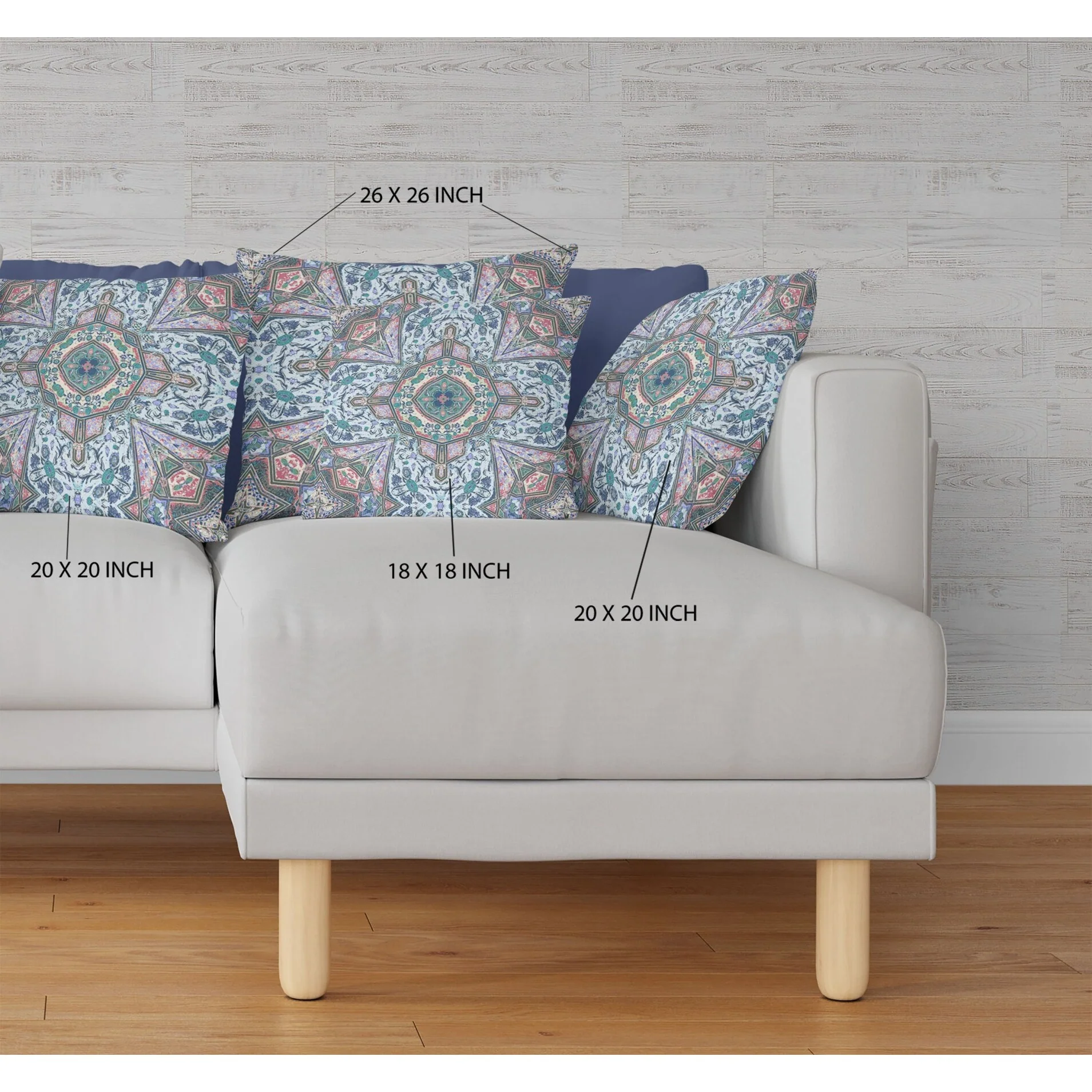 20" Pale Blue Pink Medallion Indoor Outdoor Throw Pillow