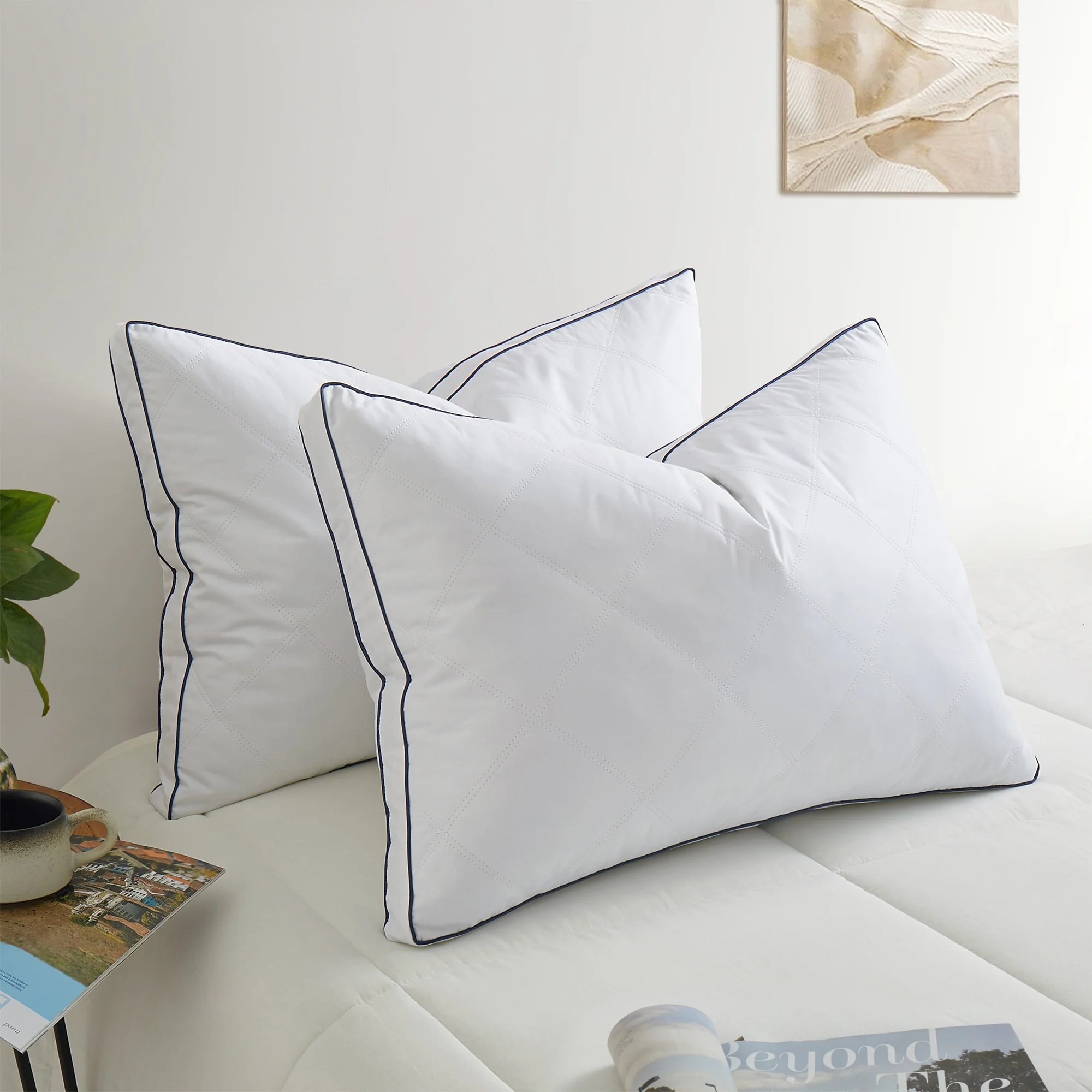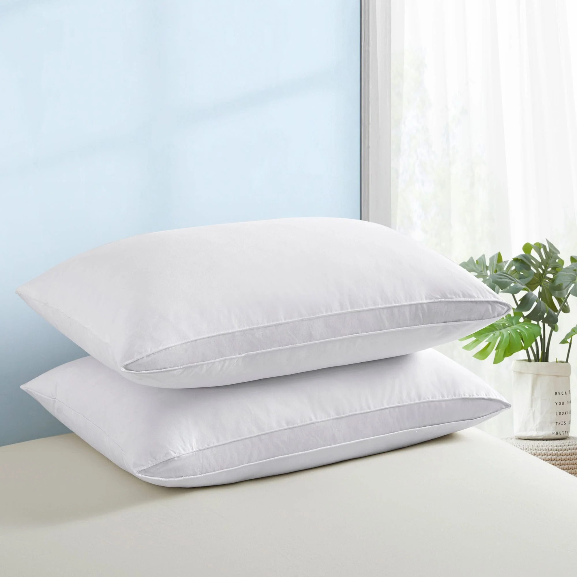 Set of 2 Goose Feather Bed Pillows Medium-Firm for Back and Side Sleepers - White