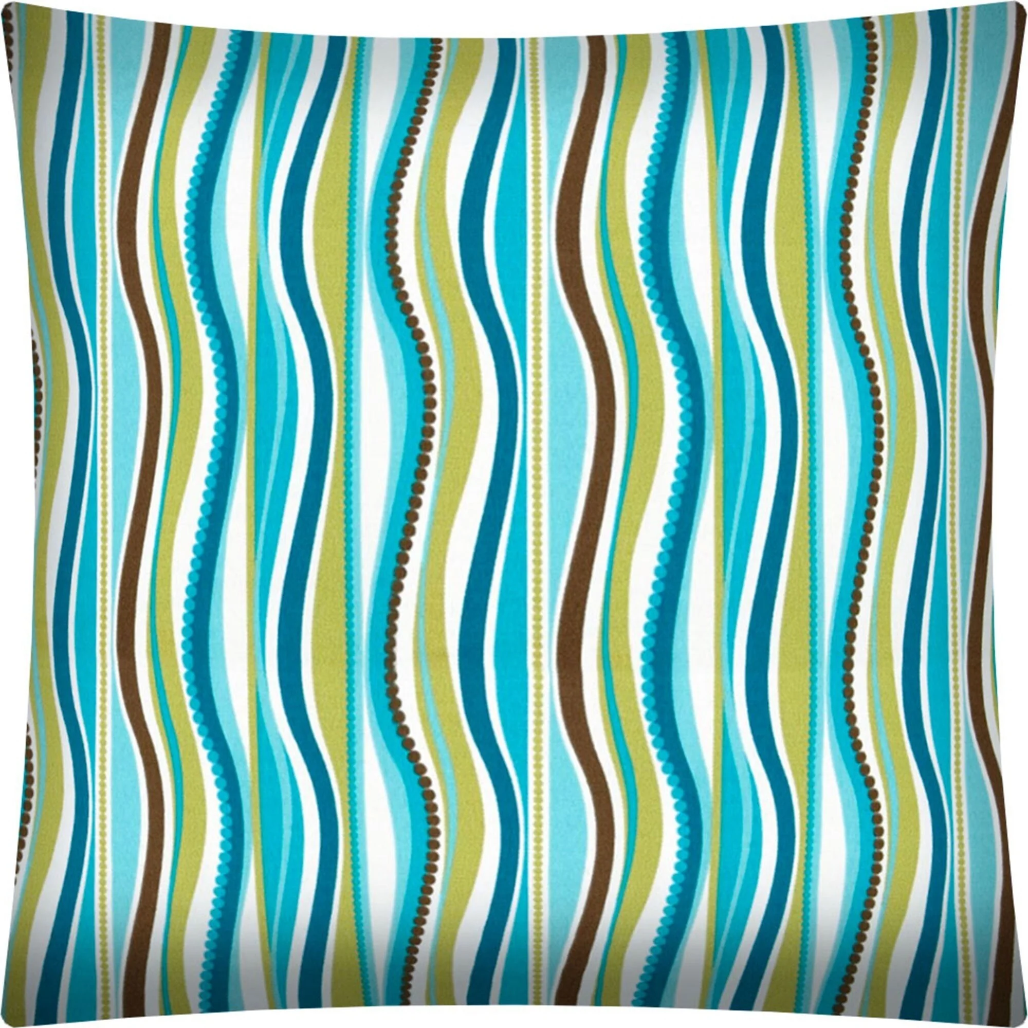 17" X 17" Aqua Brown And Olive Zippered Polyester Striped Throw Pillow Cover - Blue