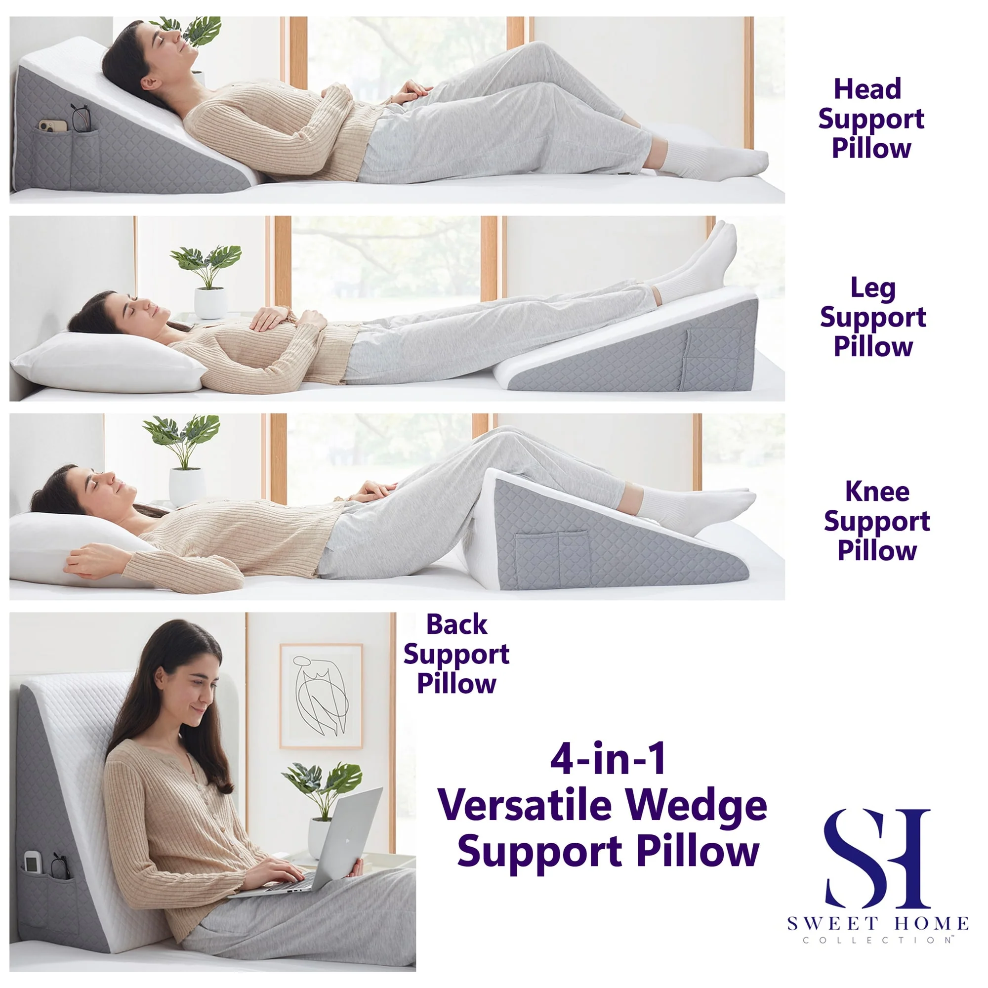 Bed Wedge Pillow Acid Reflux, Washable Cover, Memory Foam 24" x 24" x 12"