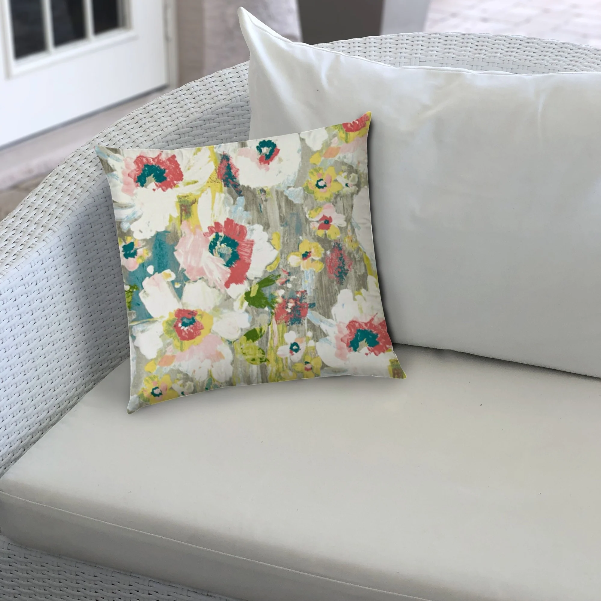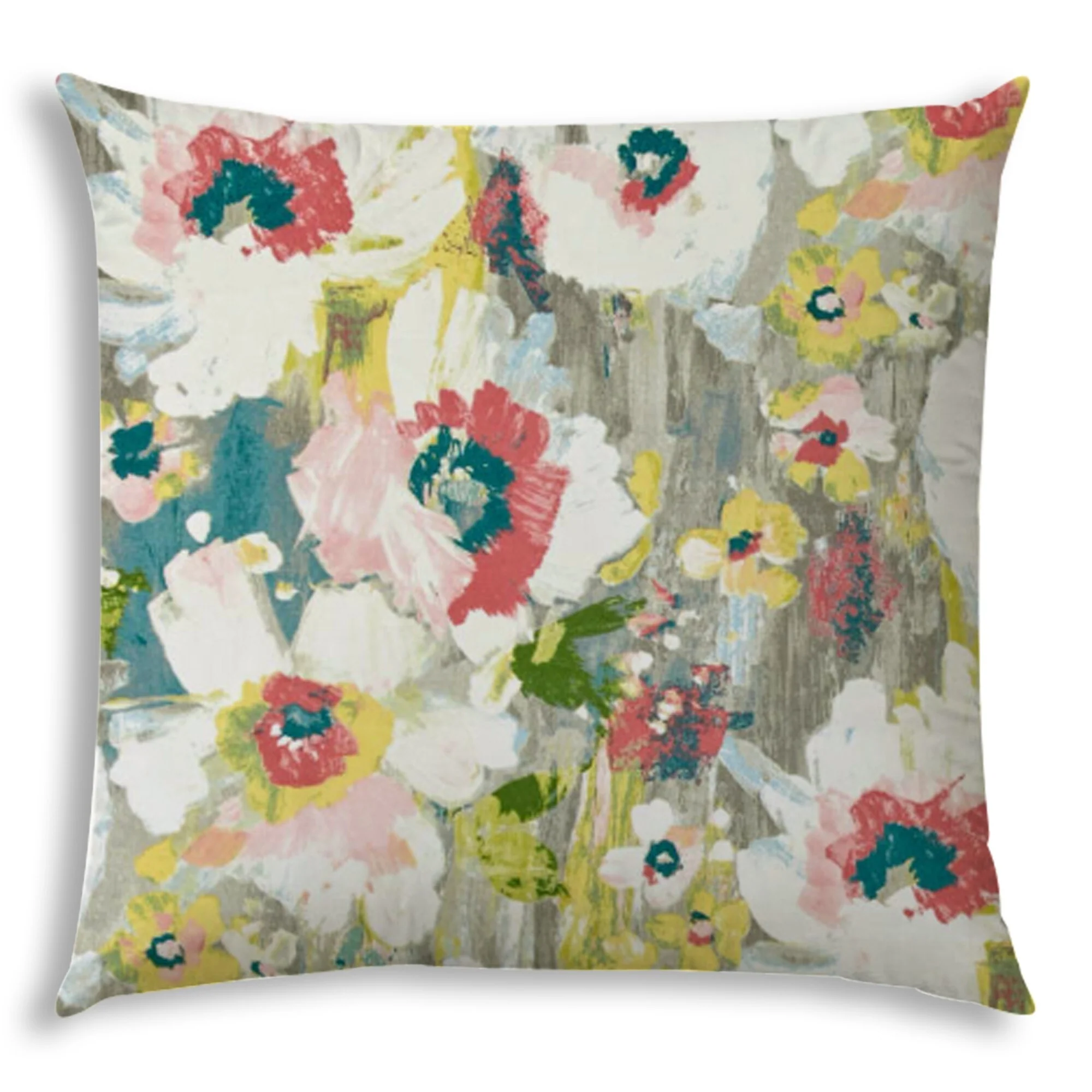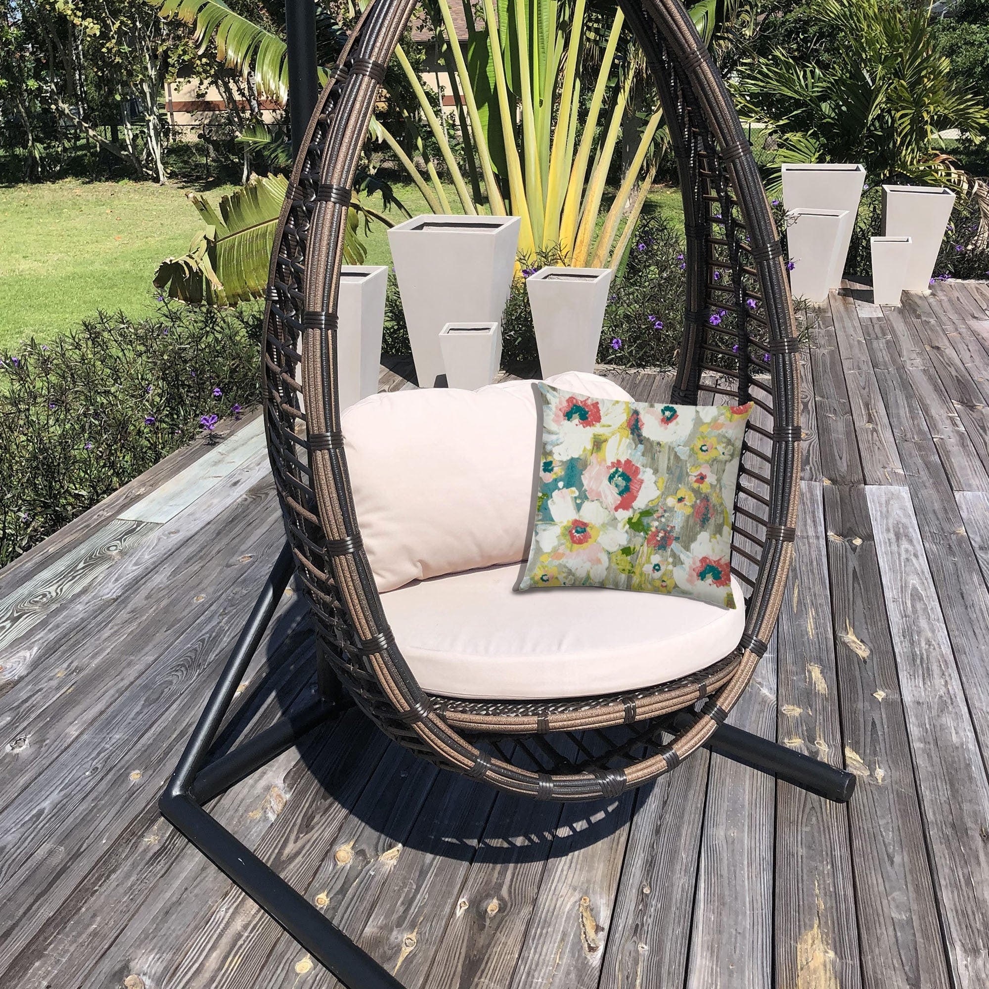 Gray Floral Painted Indoor Outdoor Zippered Pillow Cover - Green