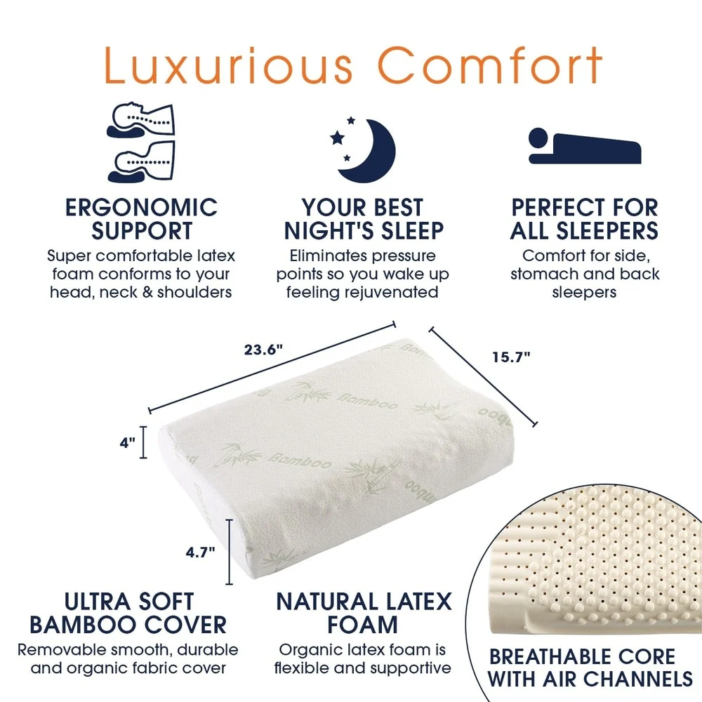 Cheer Collection Contoured Latex Foam Pillow with Washable Cover - White