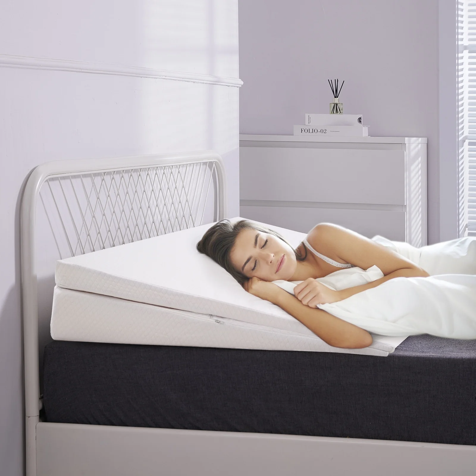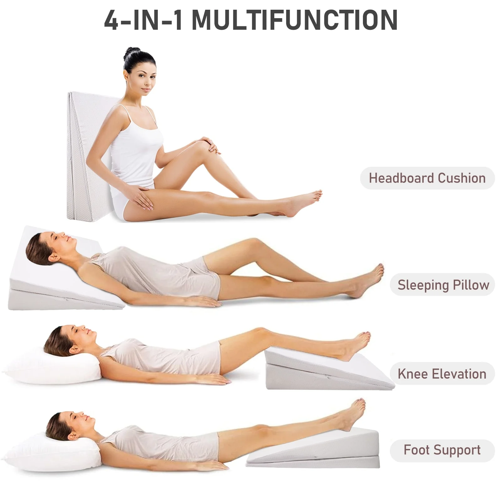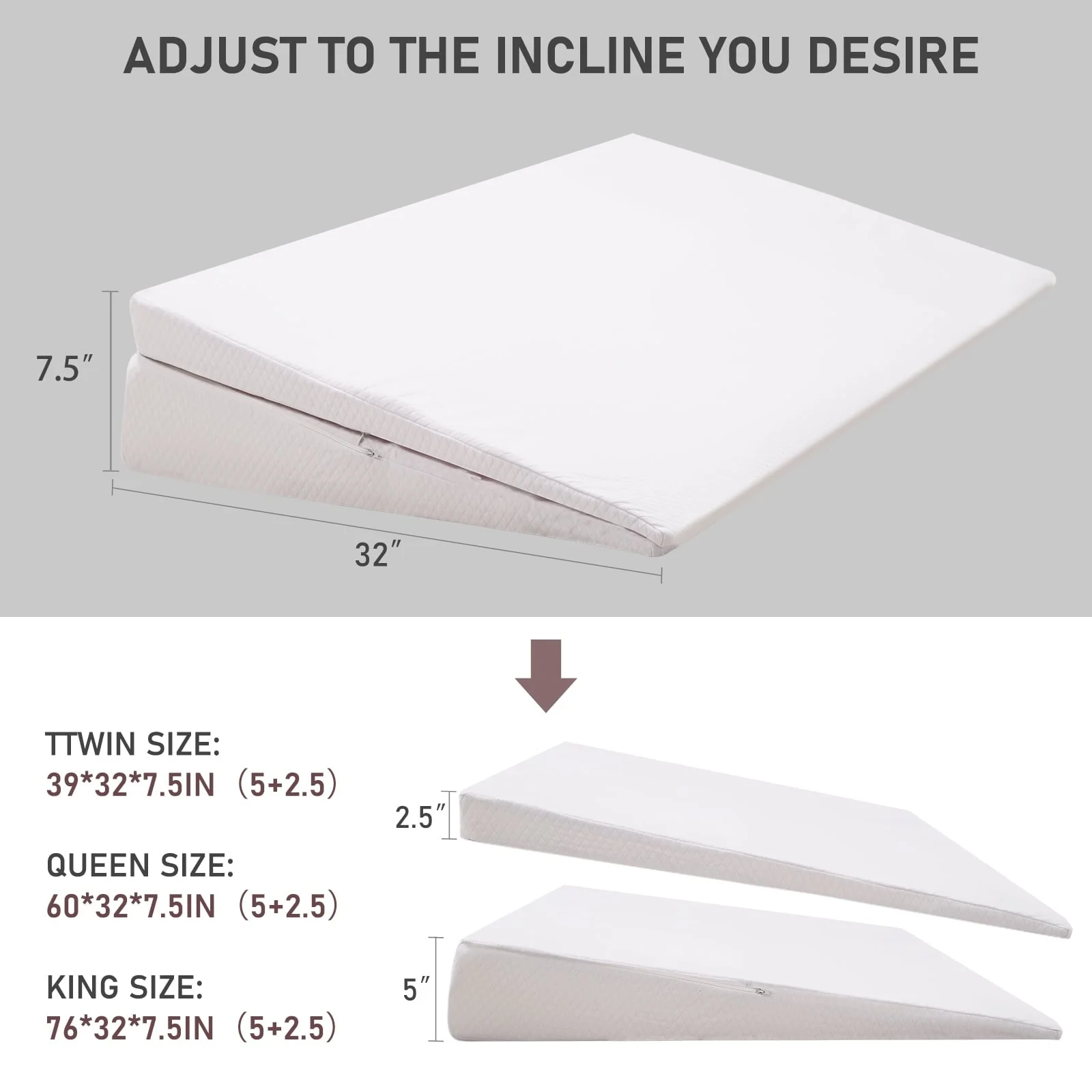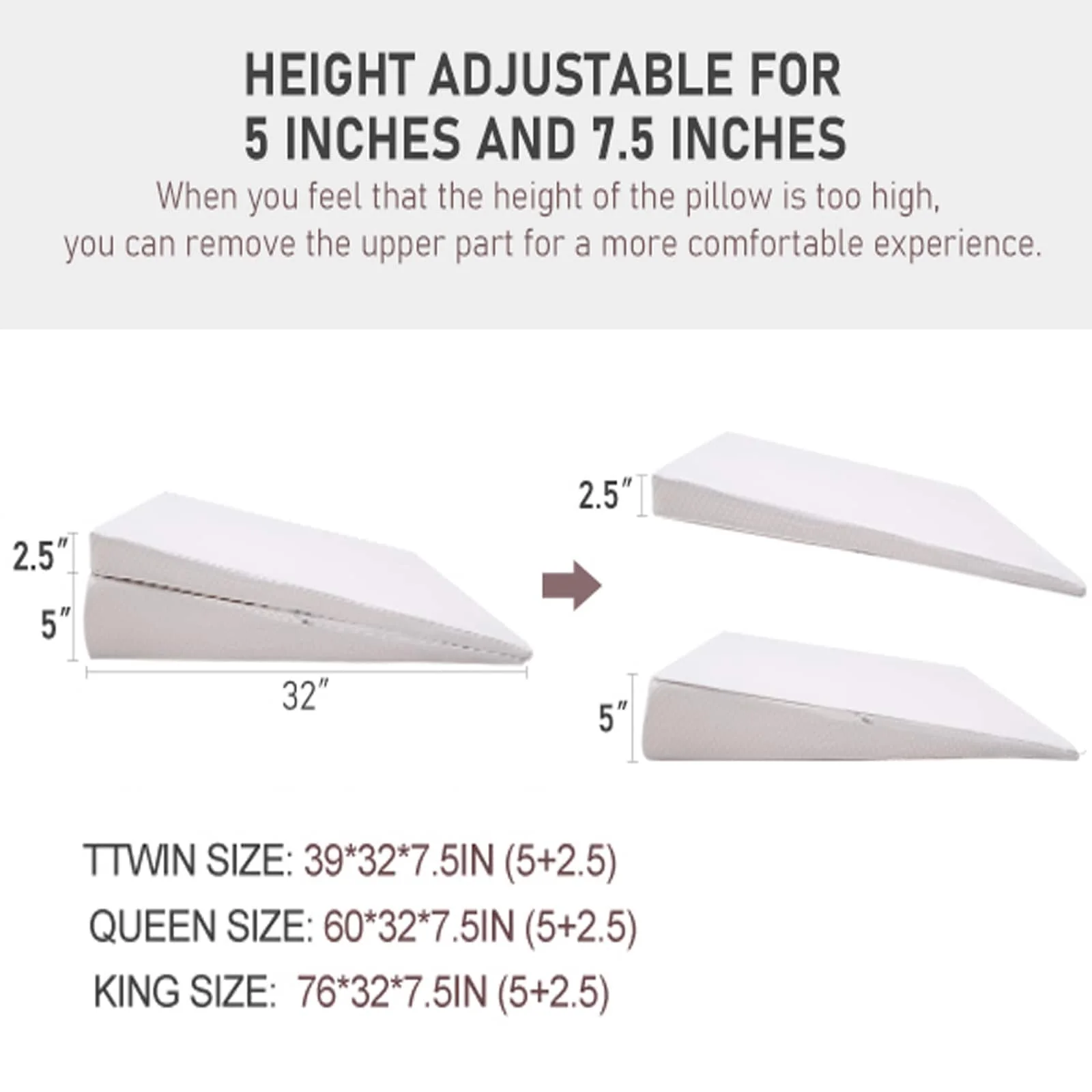 DoCred Adjustable Memory Foam Bed Wedge Pillow with Washable Cover - White