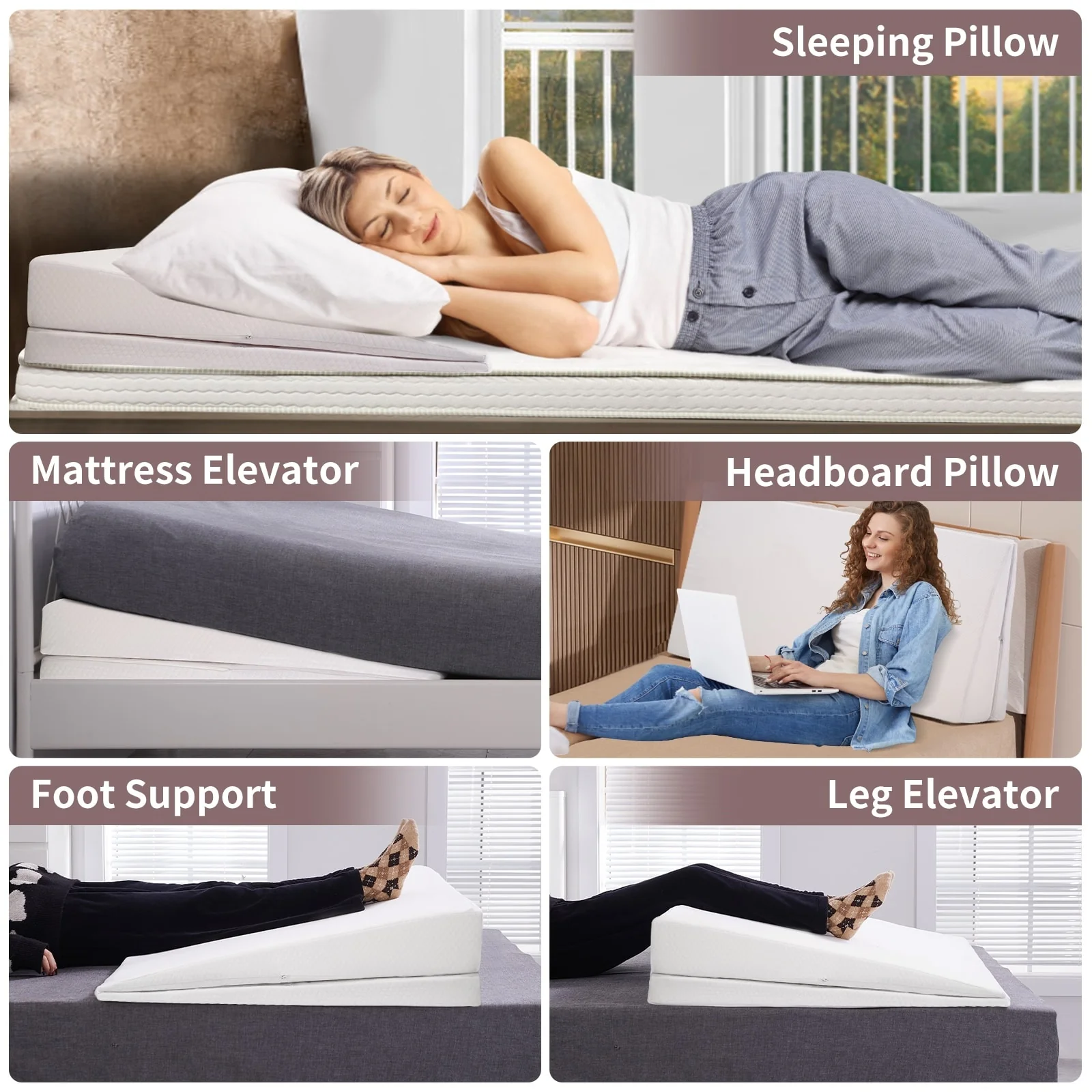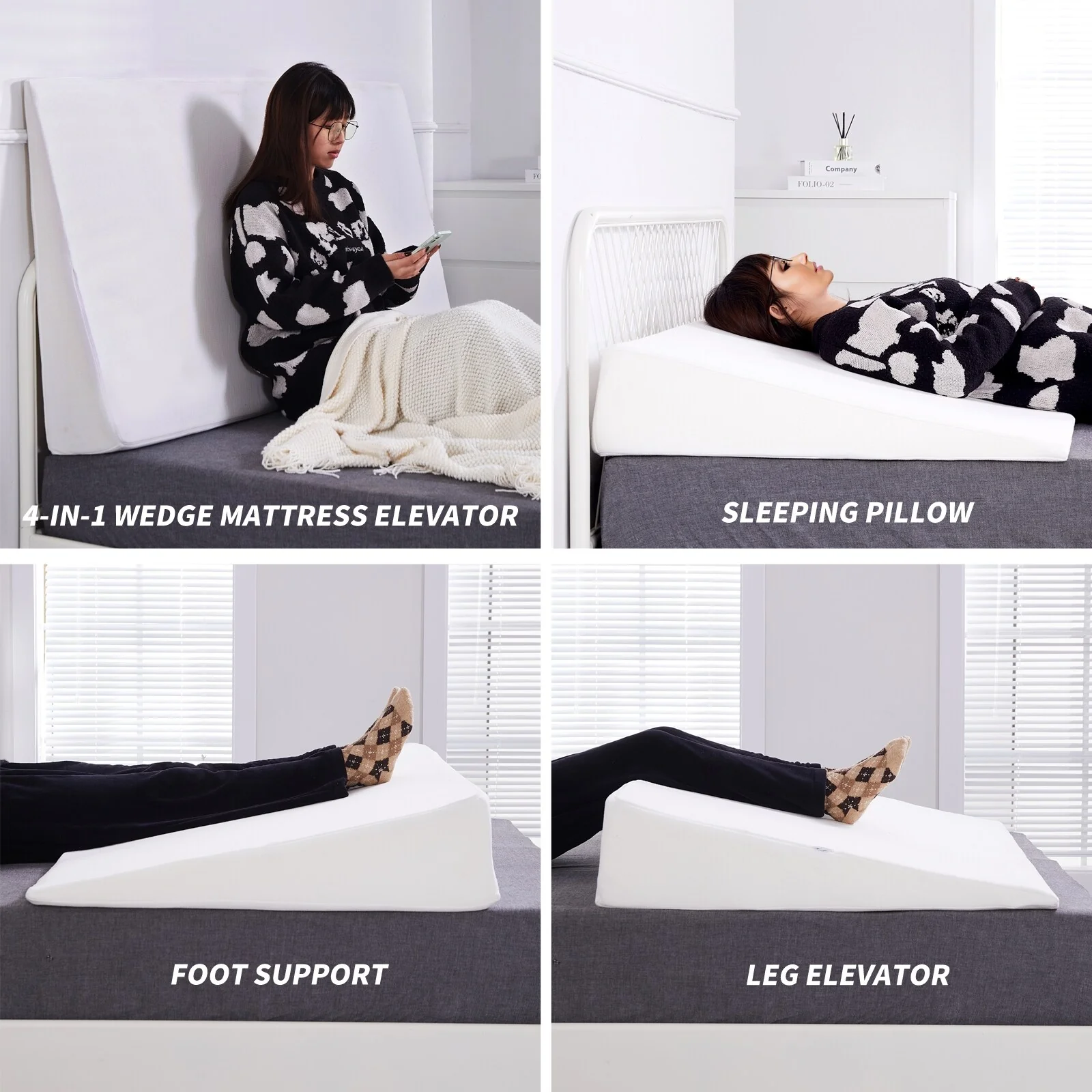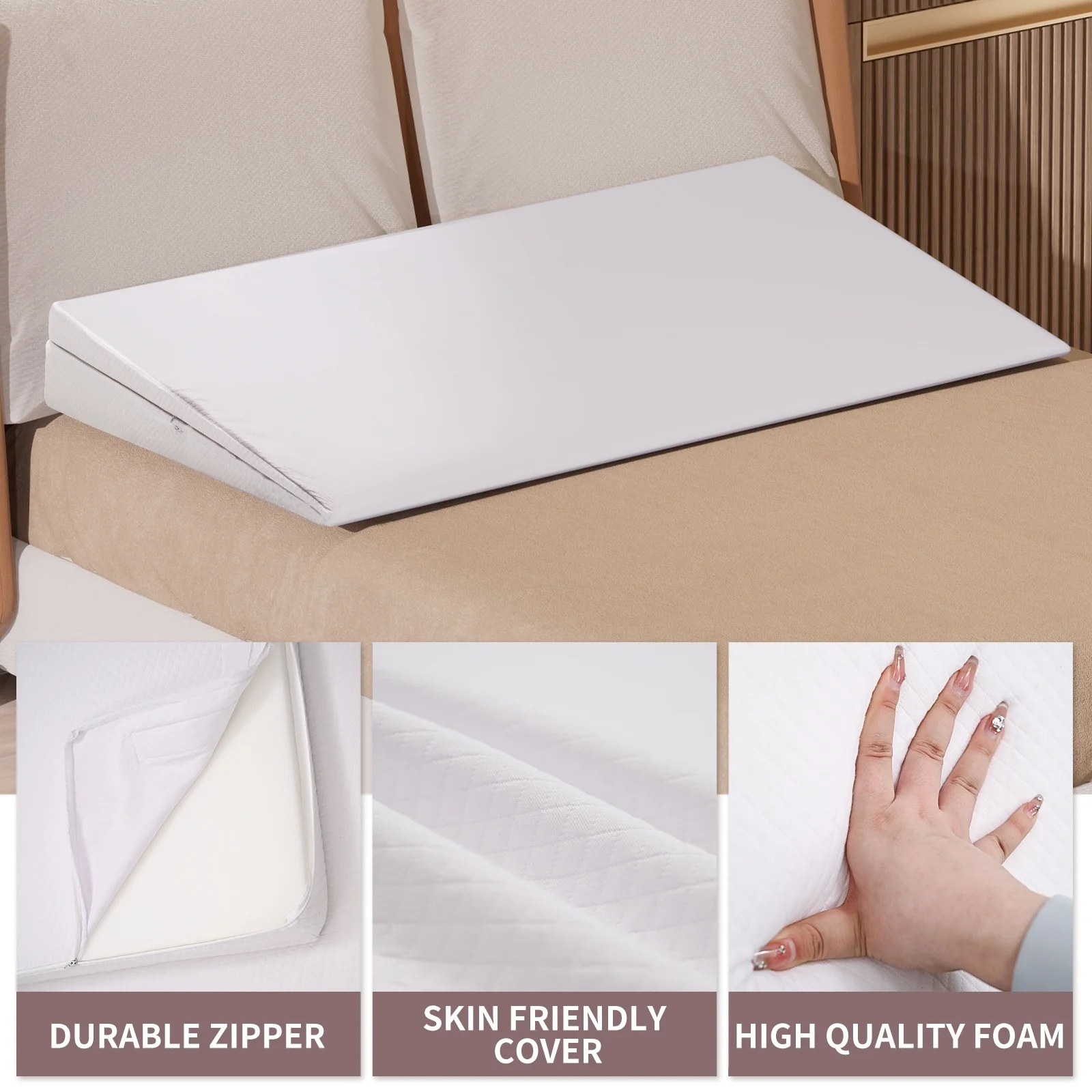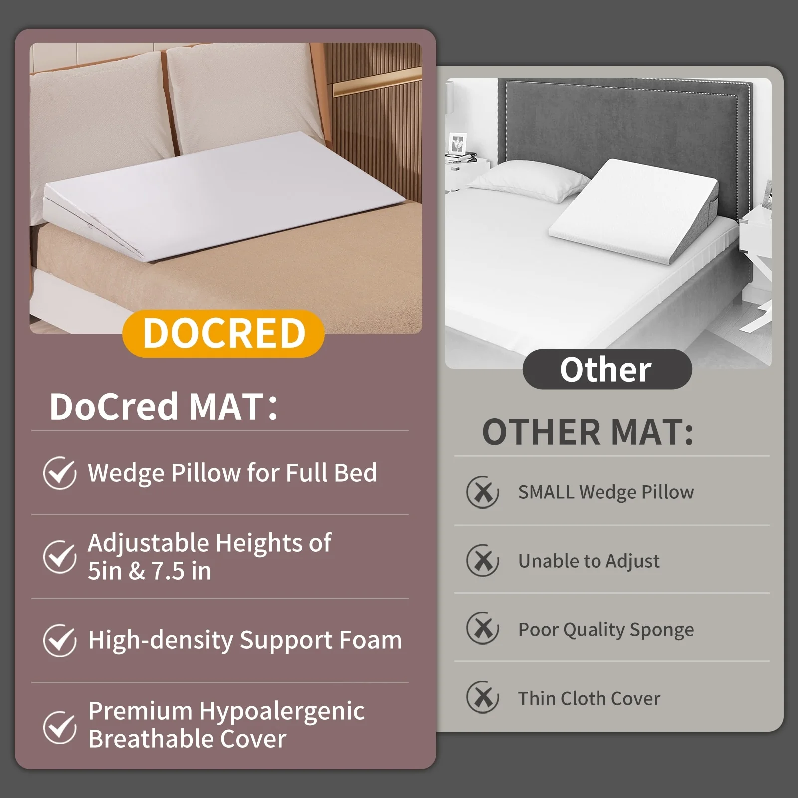 DoCred Adjustable Memory Foam Bed Wedge Pillow with Washable Cover - White