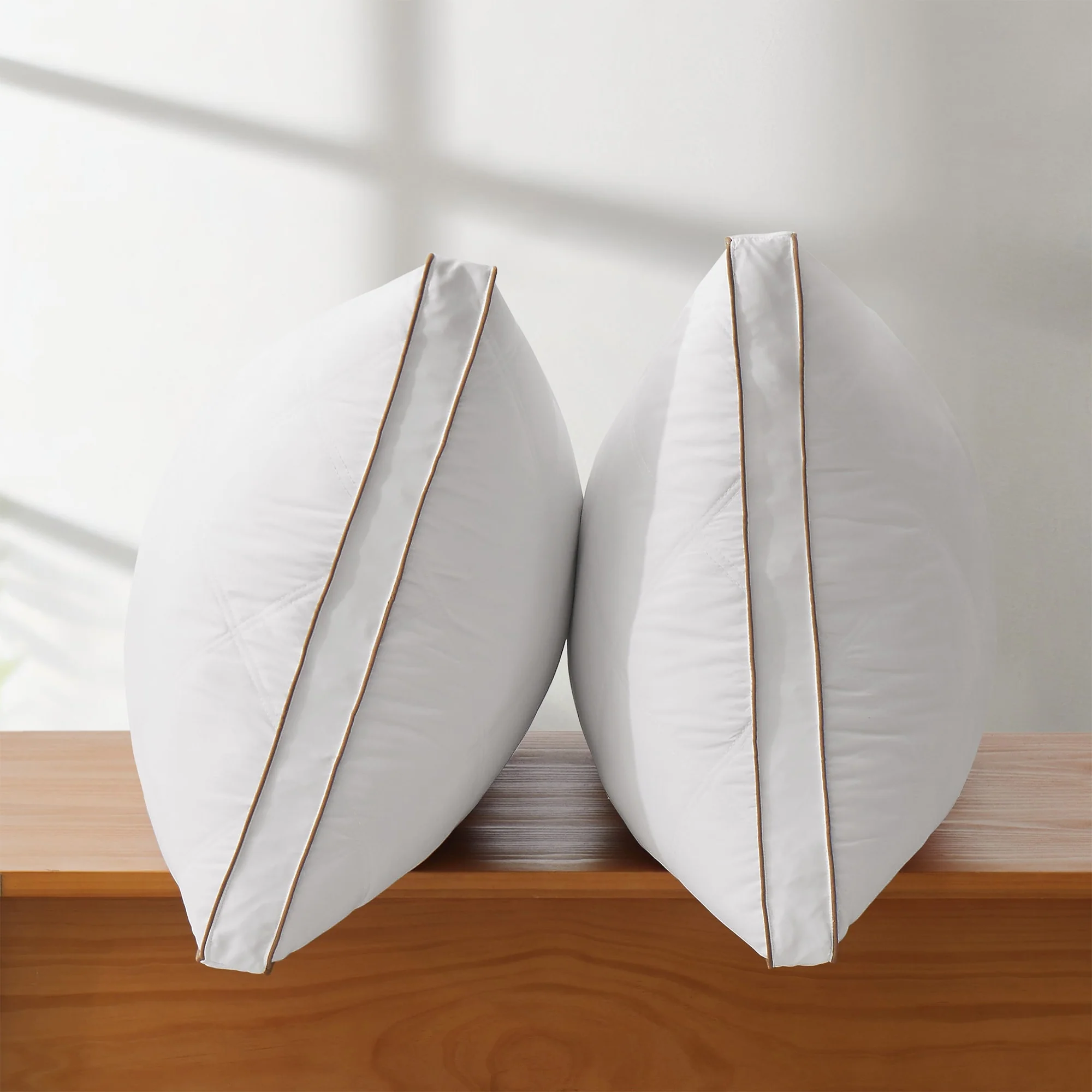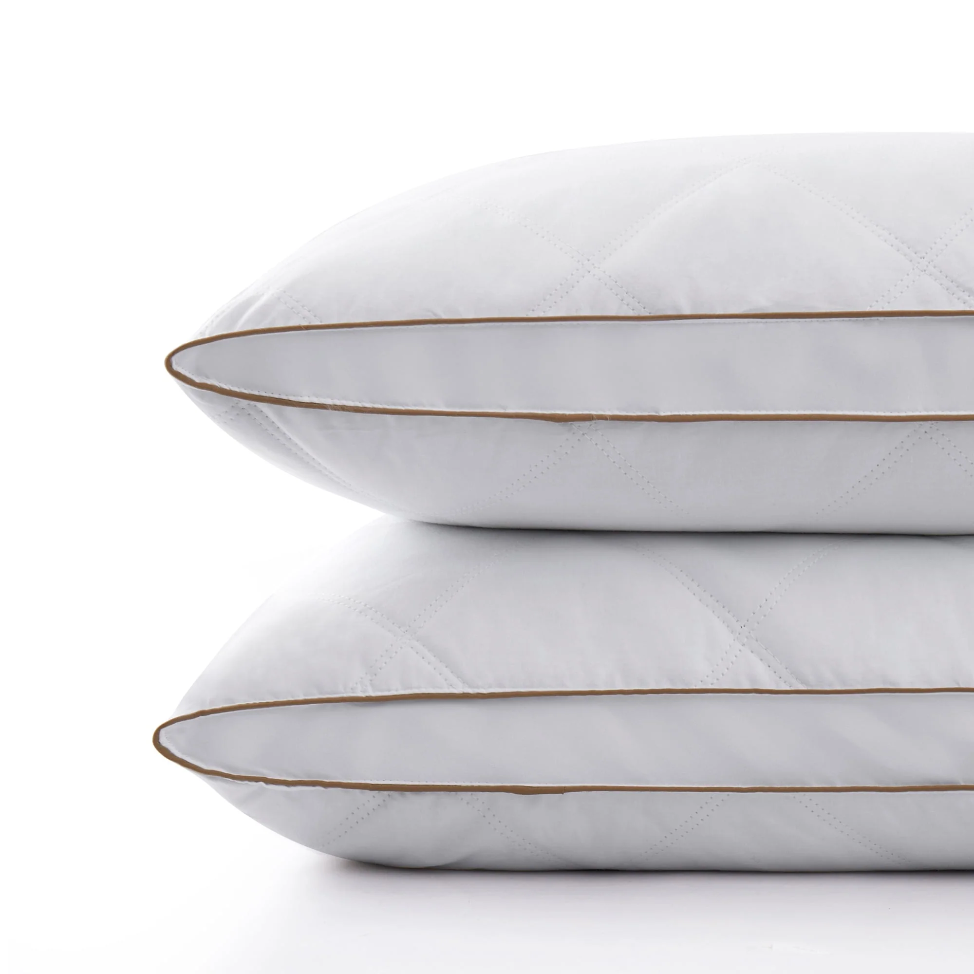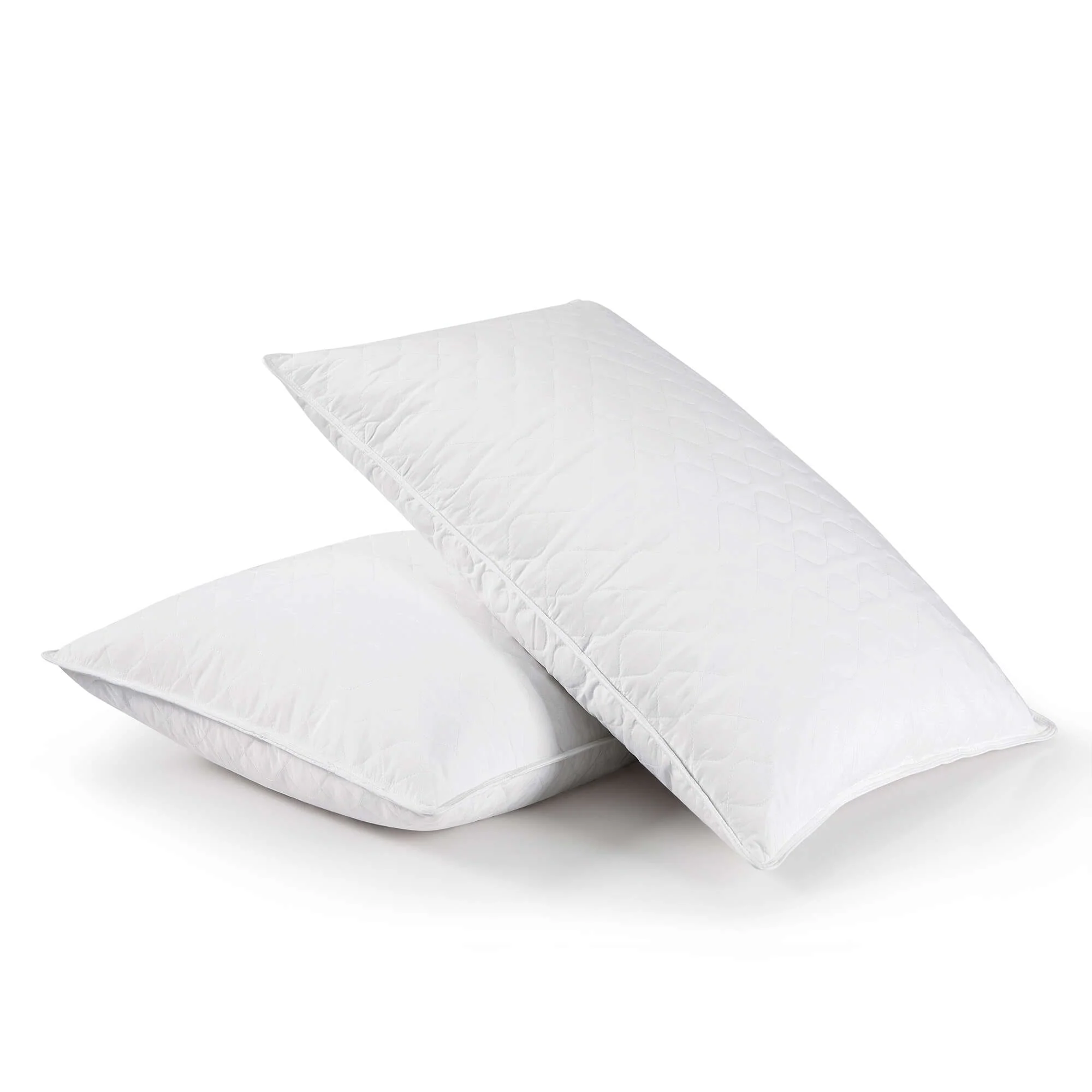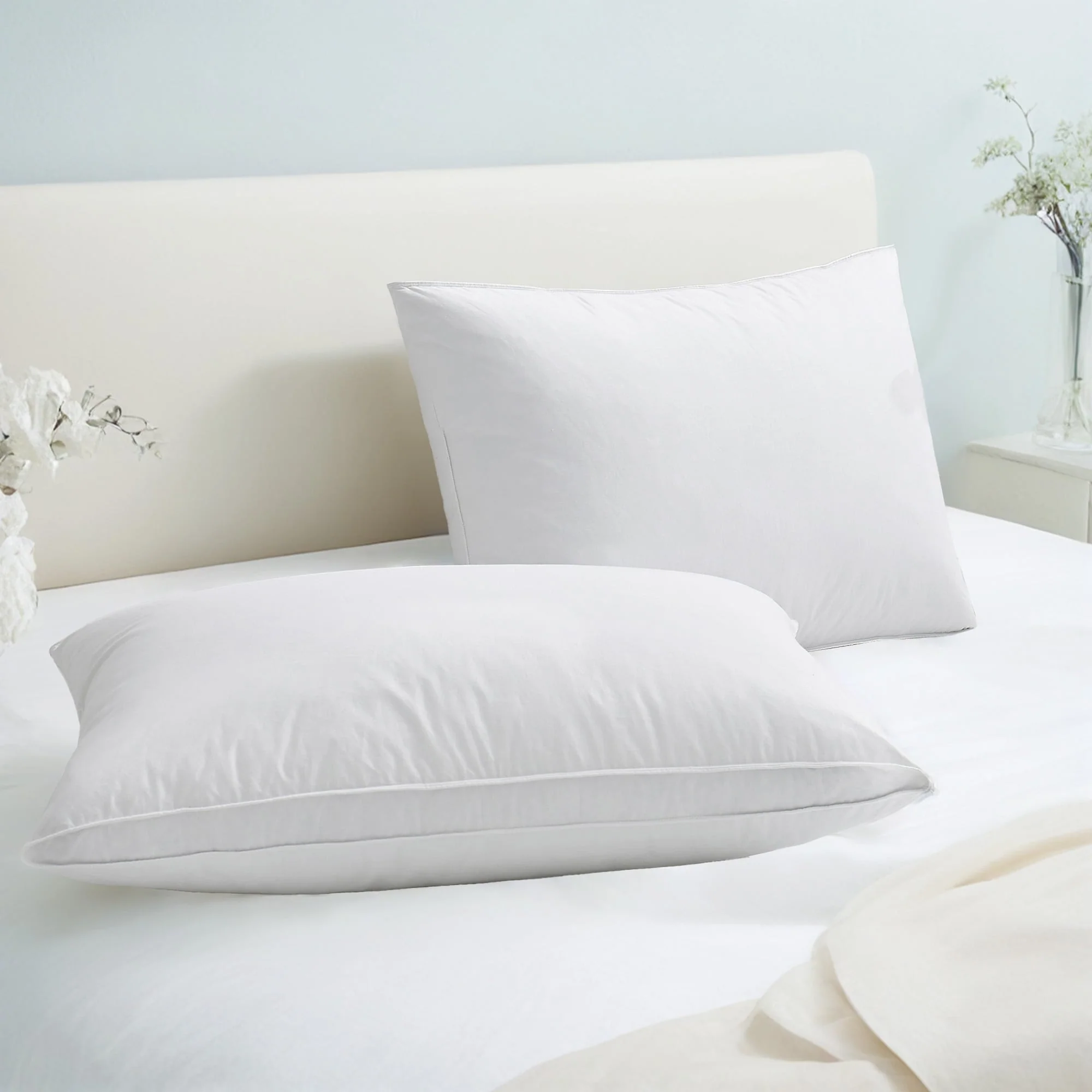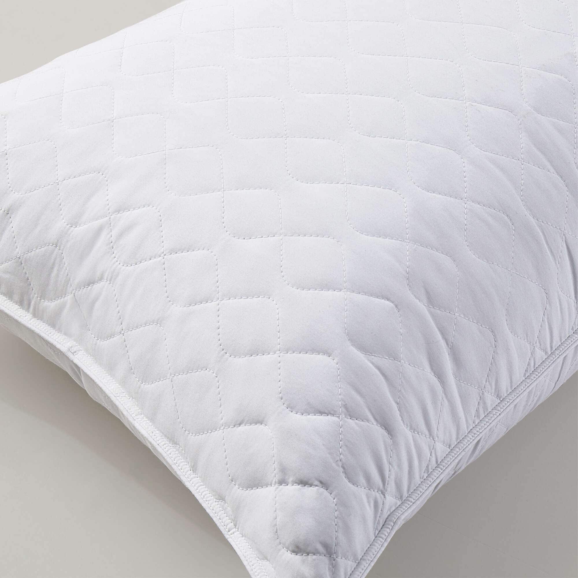 Goose Feather Down Medium Pillow White Quilted Cotton Cover Set of 2