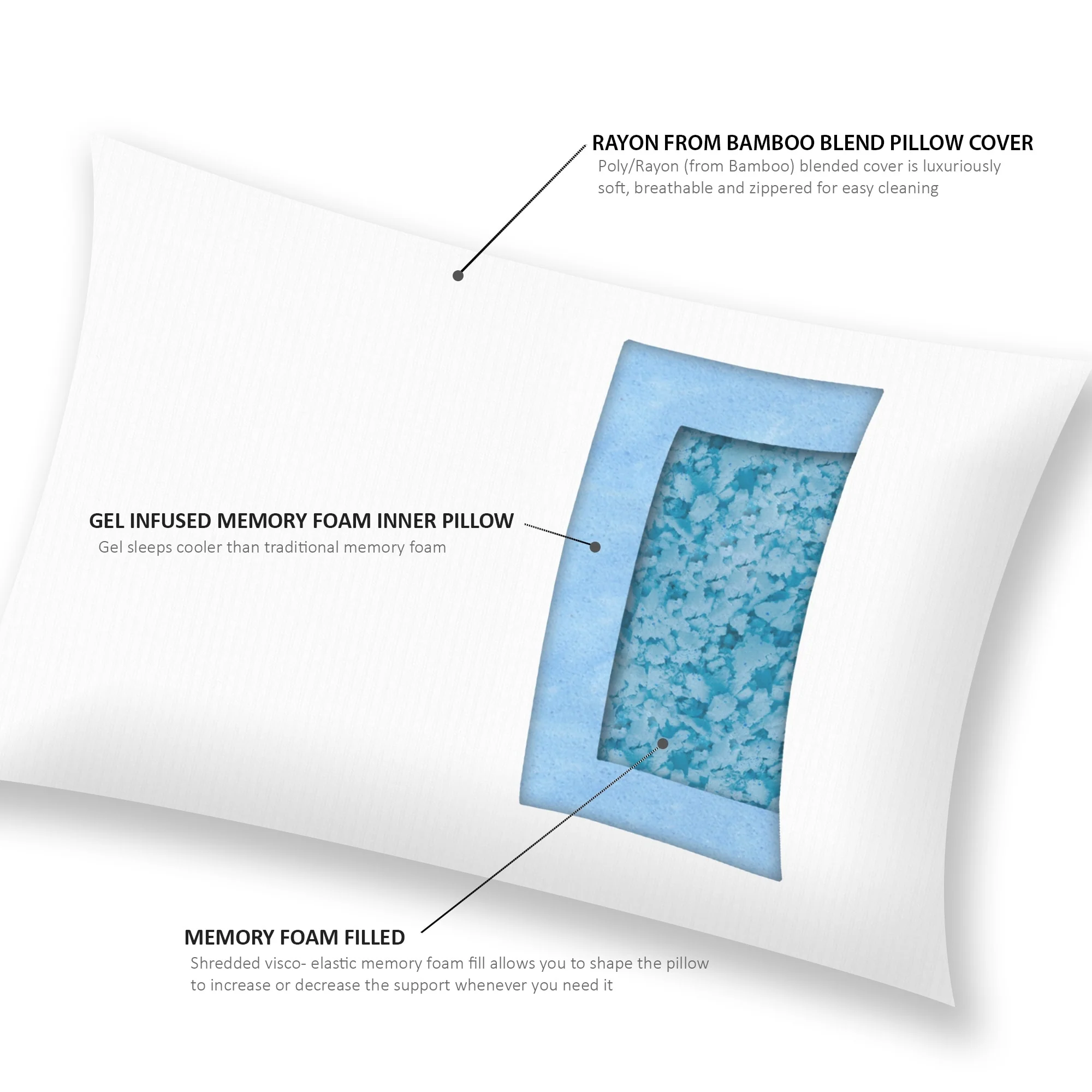 Linenspa Gel Infused Shredded Memory Foam Pillow