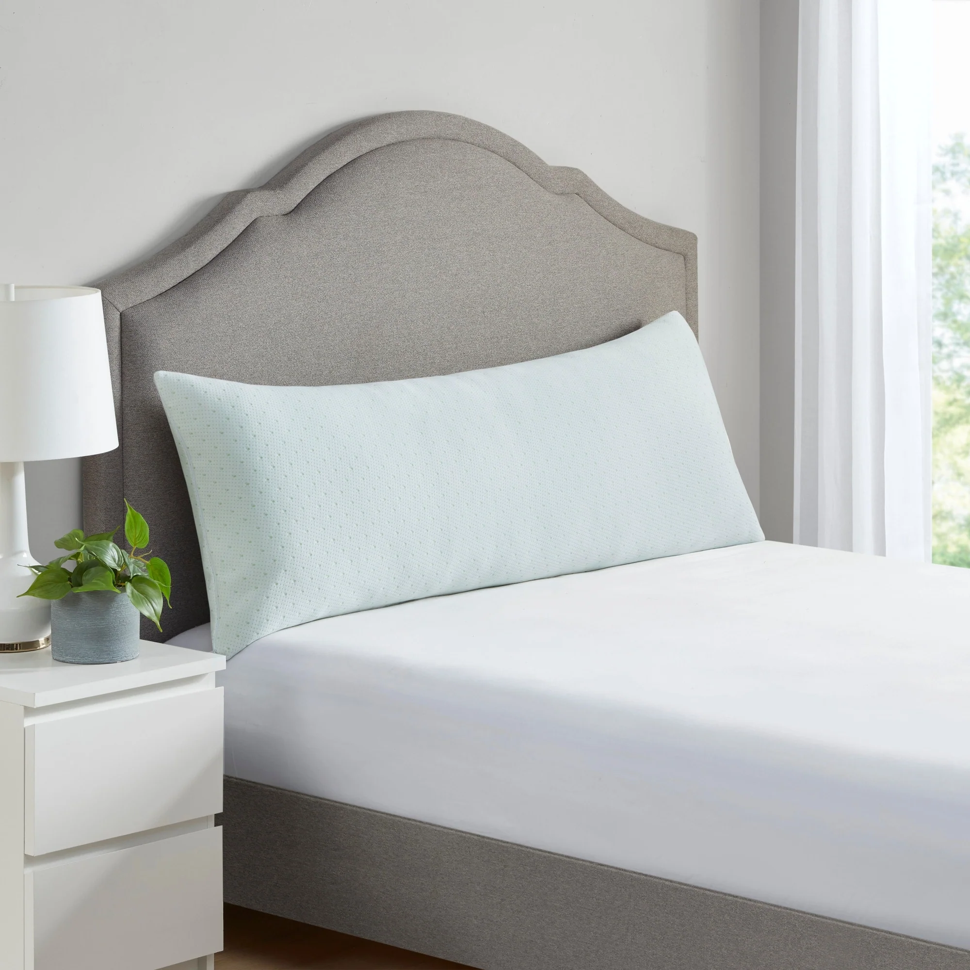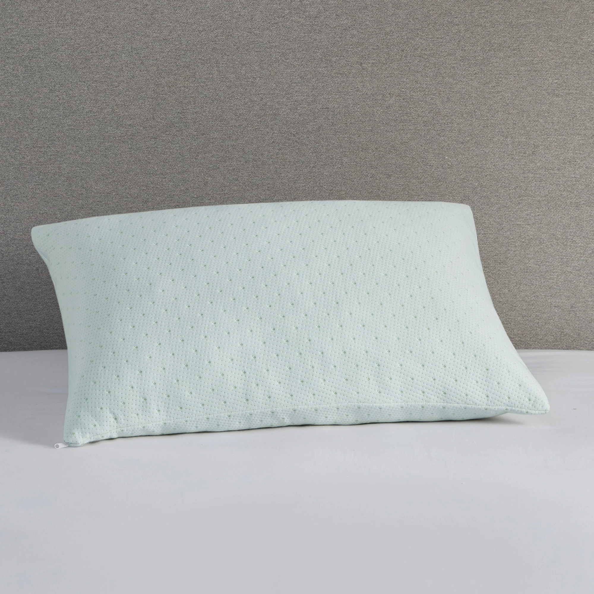 Bamboo Memory Foam Pillow with Removable Cover - White/Green Accents