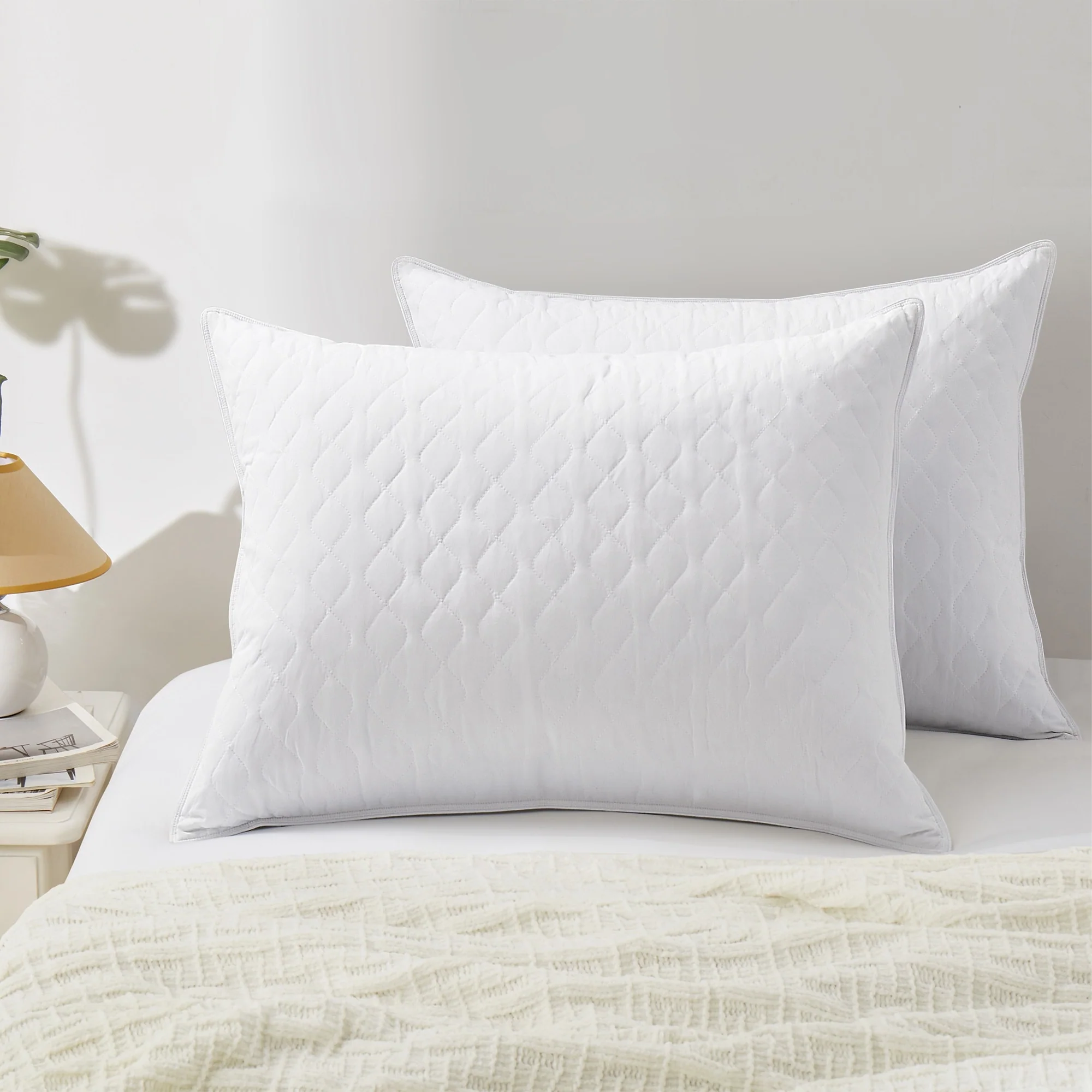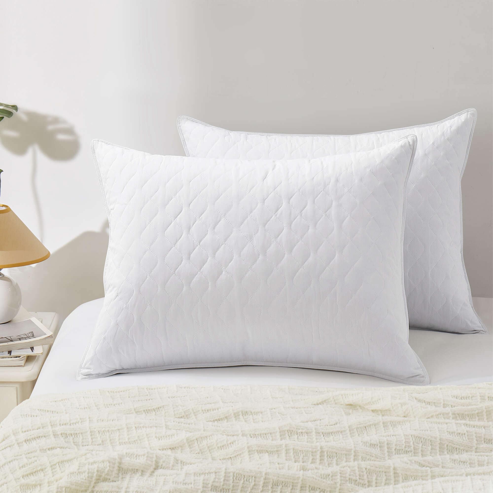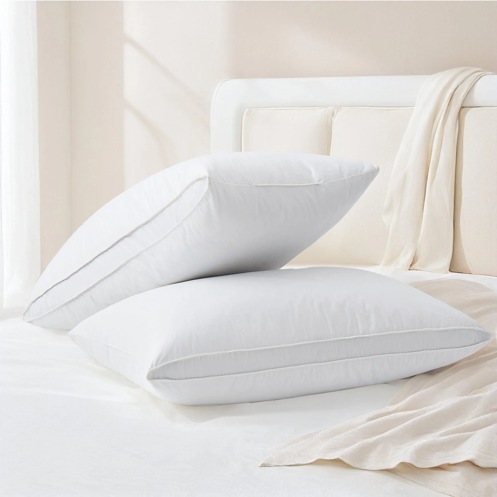 Medium-Firm Premium Soft Down Fiber Bed Pillows Set of 2 - White