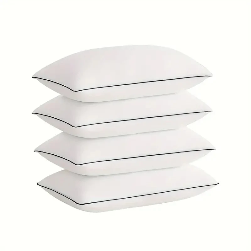 1pc Hypoallergenic Gray Edged 100% Cotton Standard Hotel Pillow, Easy Care