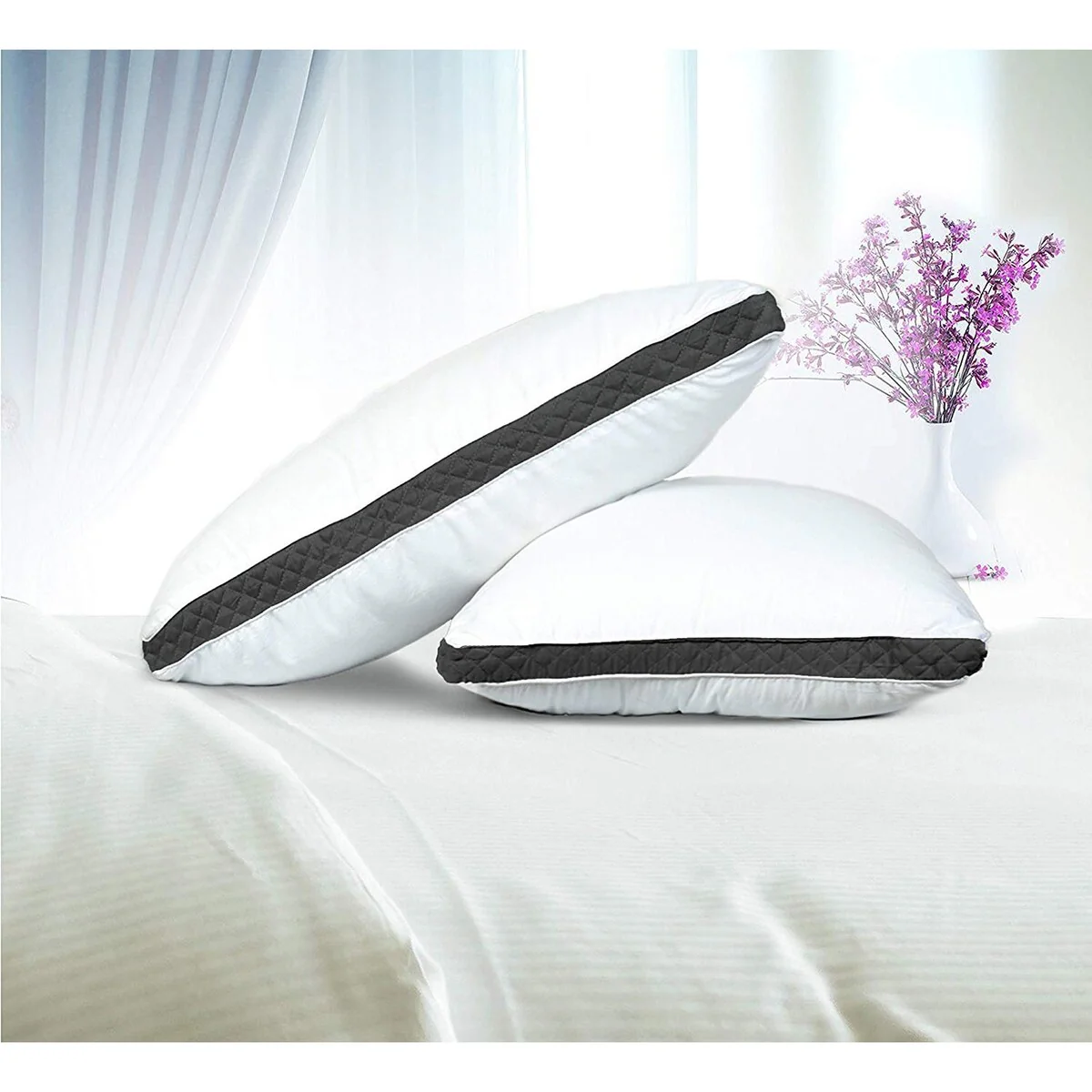 Quilted Pillows For Bed/ Cotton Pillow (Set Of 2 Pillows) Dark Grey Gusseted