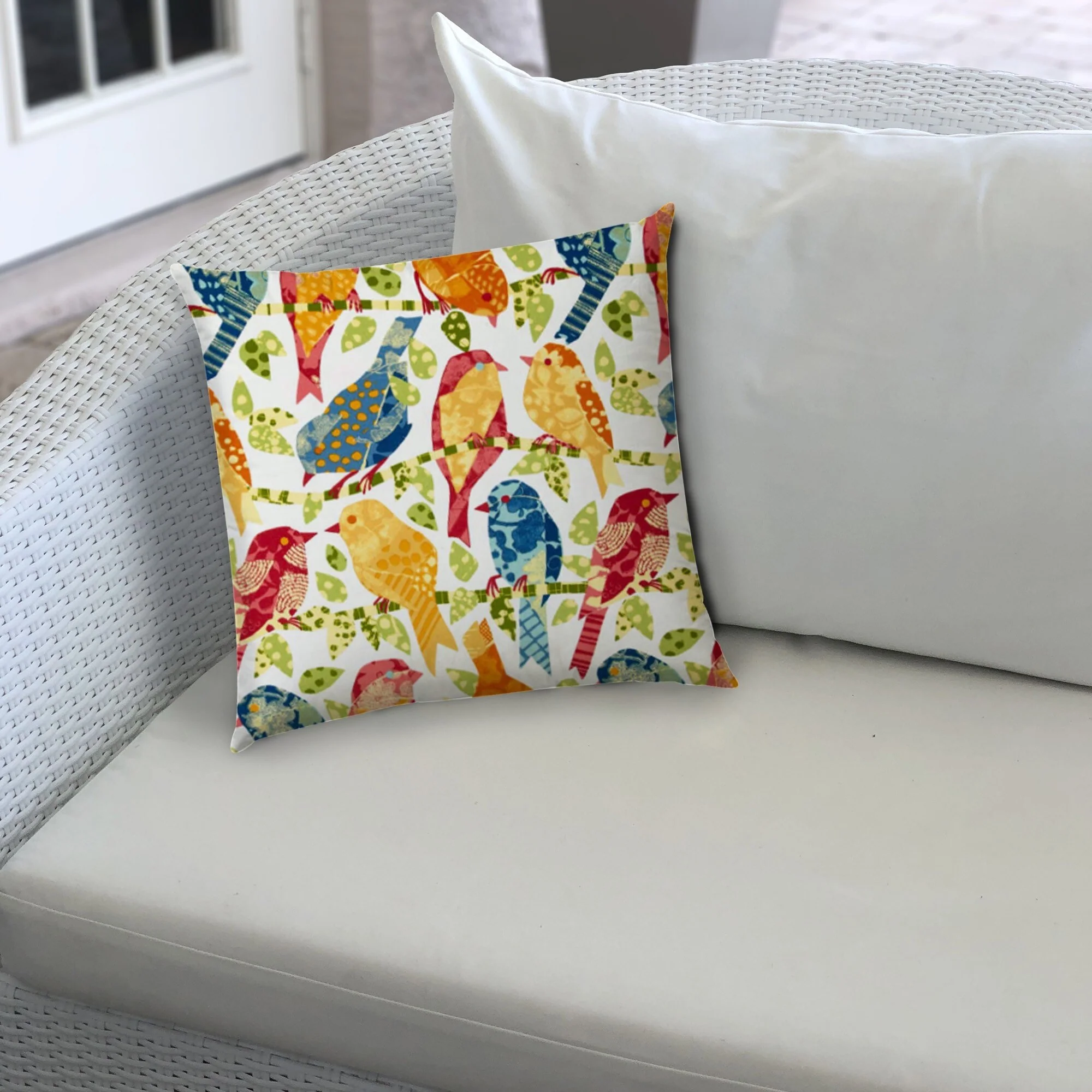 20" X 20" Red Yellow And White Bird Zippered Polyester Animal Print Throw Pillow Cover