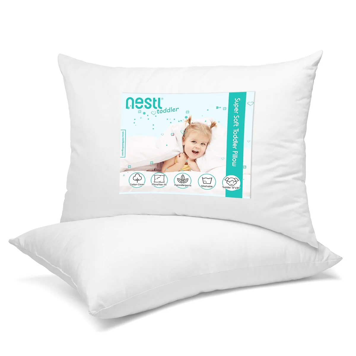 Nestl 100% Organic Cotton Cover Toddler Pillow - Soft Cool Travel Kids Pillow - 13 x 18 Inches - White