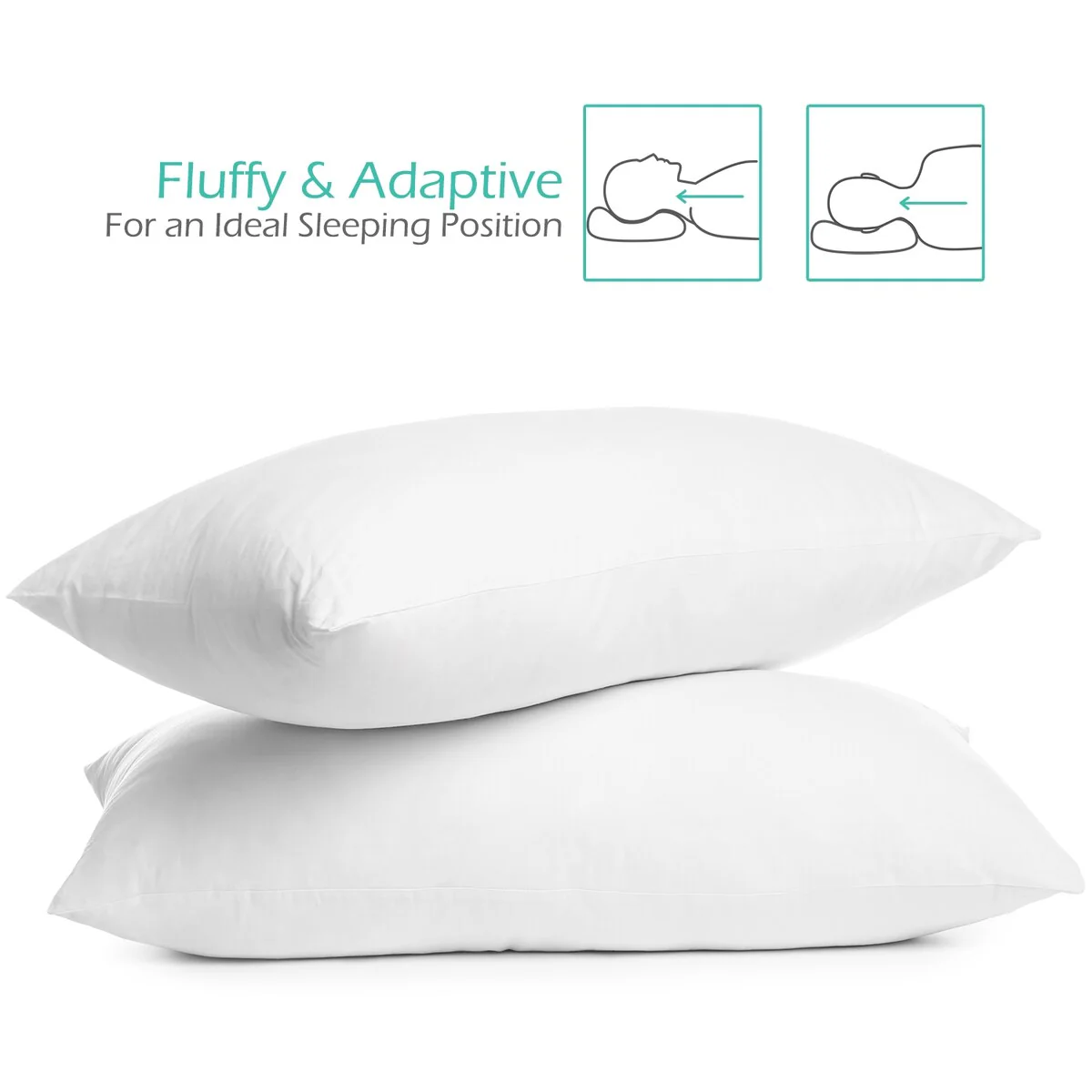 2 Pack Hotel Quality Goose Feather Bed Pillows for Side & Back Sleepers