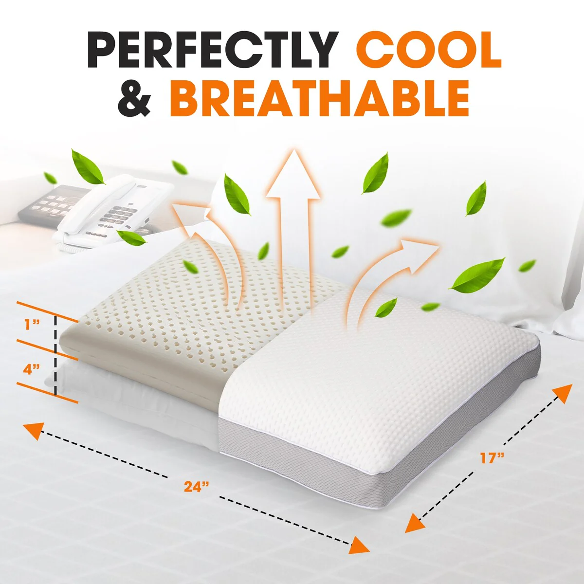 PCM Cooling Goose Feather Down Pillows Set of 2, Cool Touch Bed Pillow - White