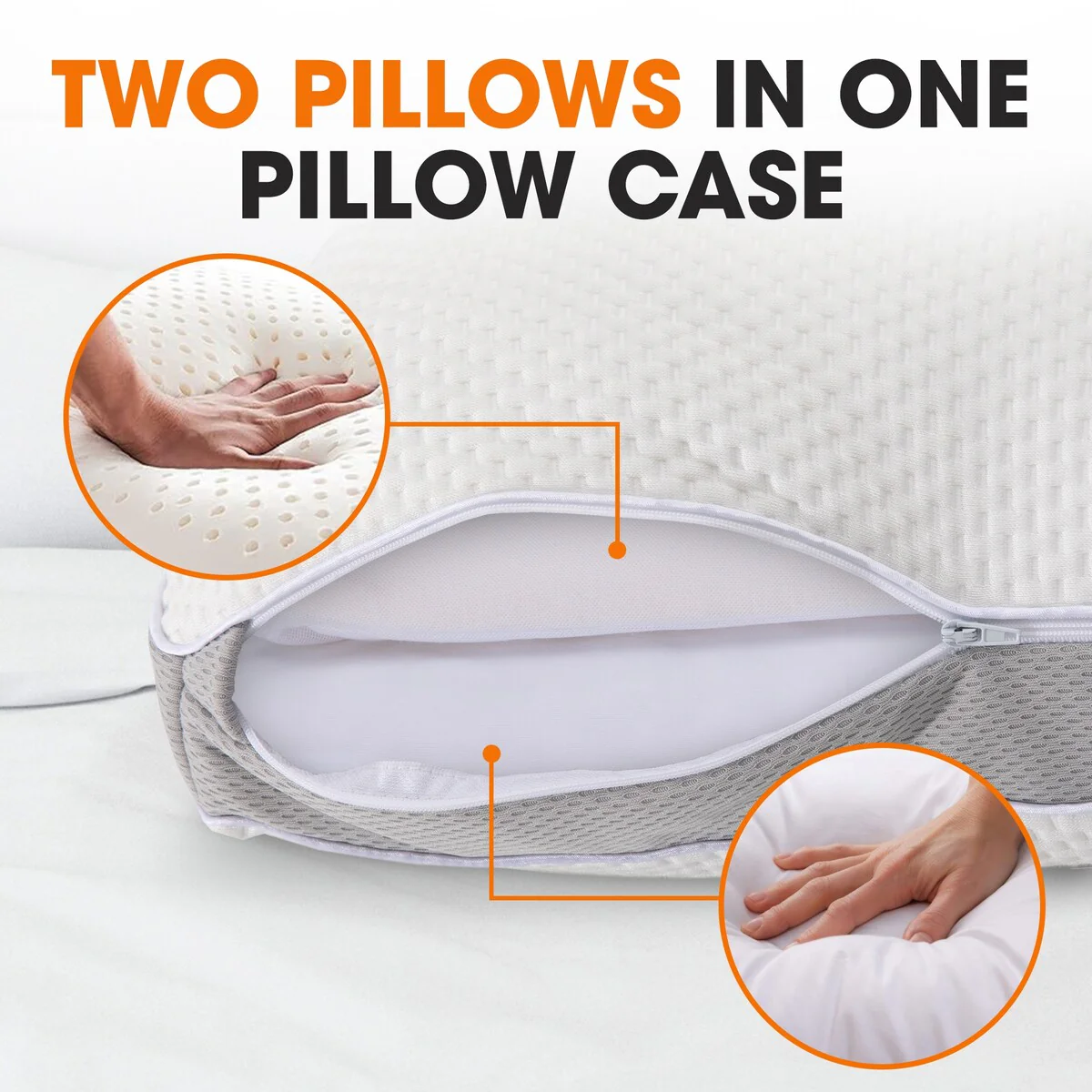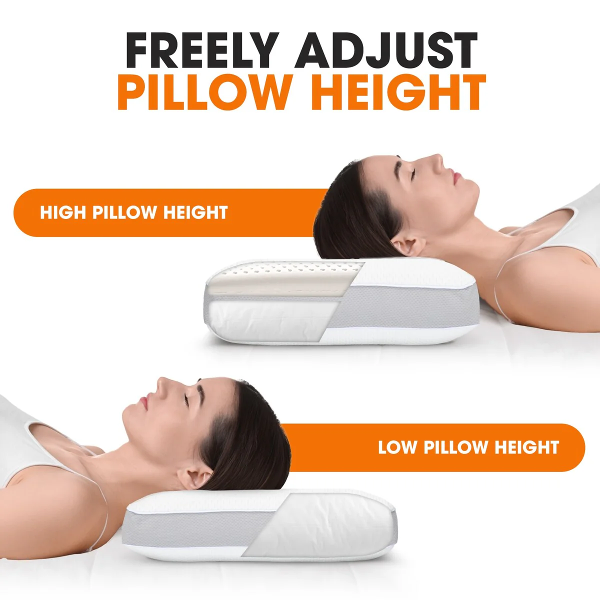 3-in-1 Adjustable White Goose Down Pillow By DOWNLITE? (Hypoallergenic)
