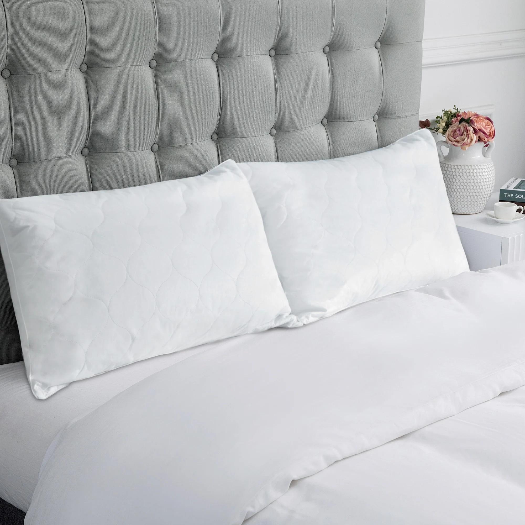 Quilted Cotton Cover Soft Goose Feather Down Pillows Set of 2 - White