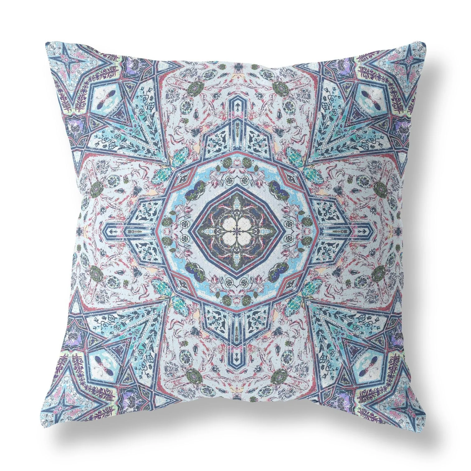 28" Blue Gray Floral Boho Indoor Outdoor Throw Pillow - Grey