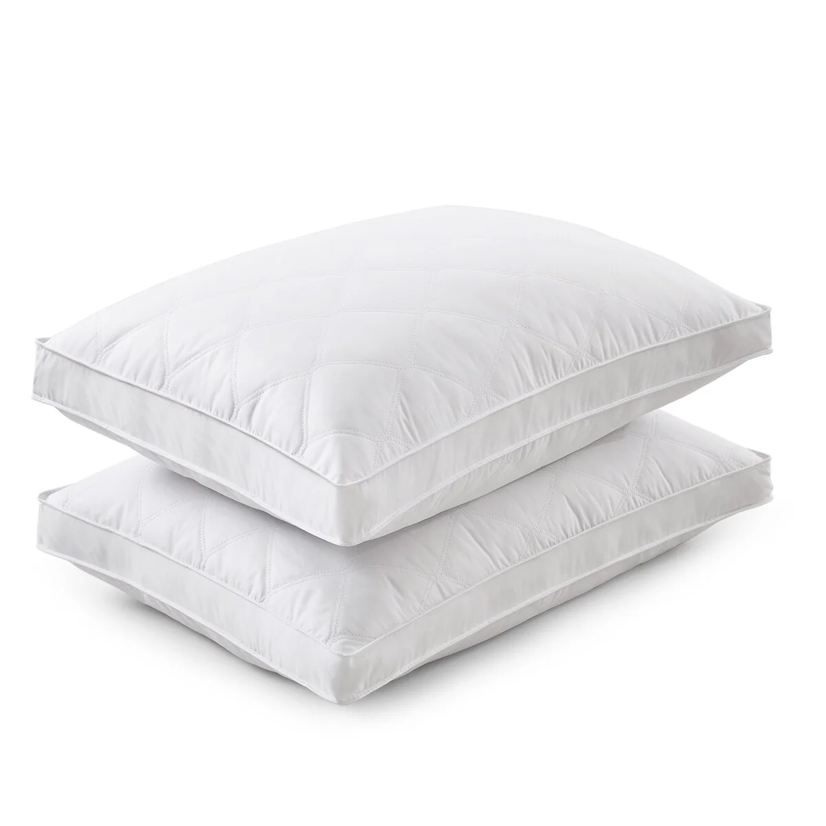 2 Pack Quilted Goose Feather Down Pillow, Medium Support White Edge