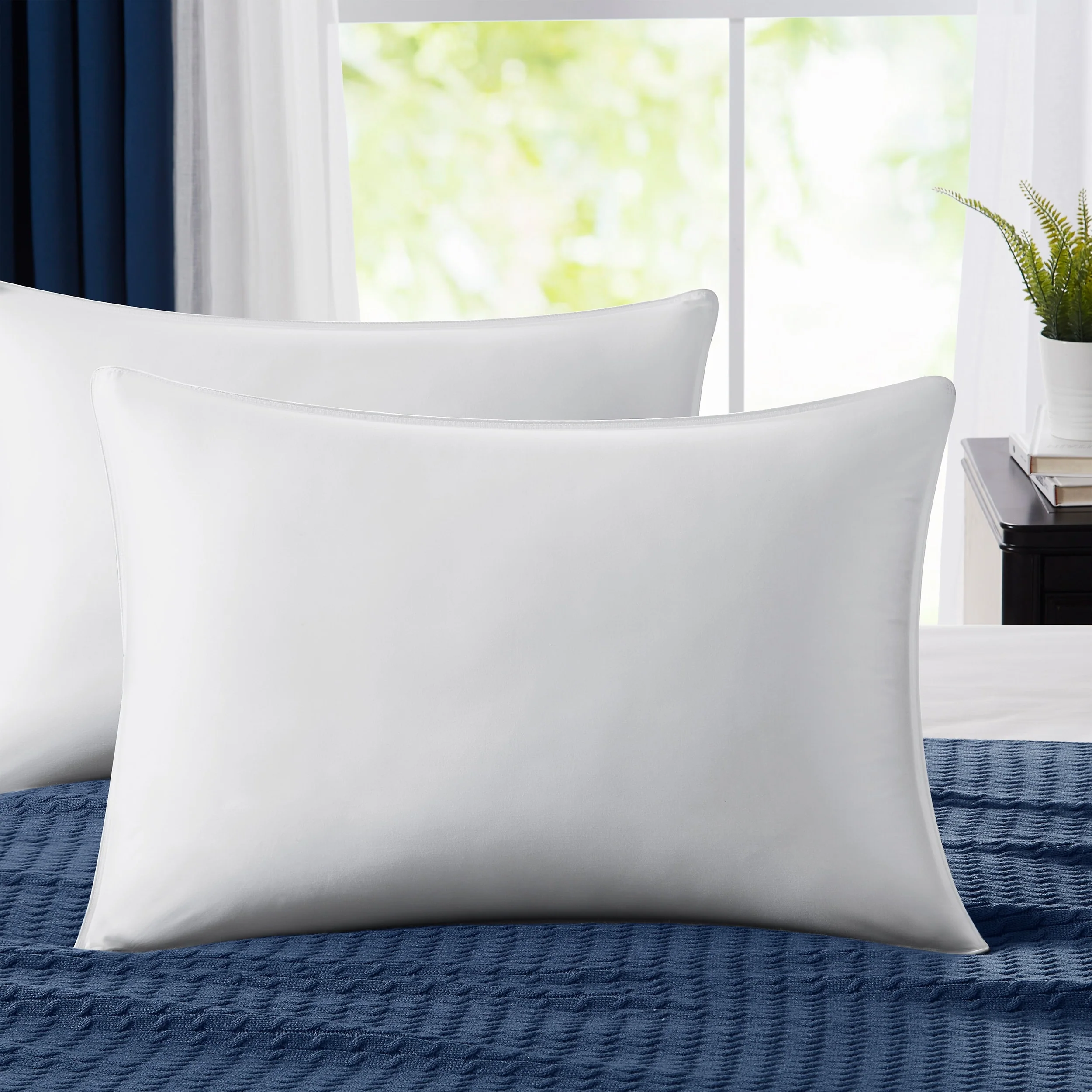 2 Pack 100% Cotton White Goose Feather Down Bed Pillows