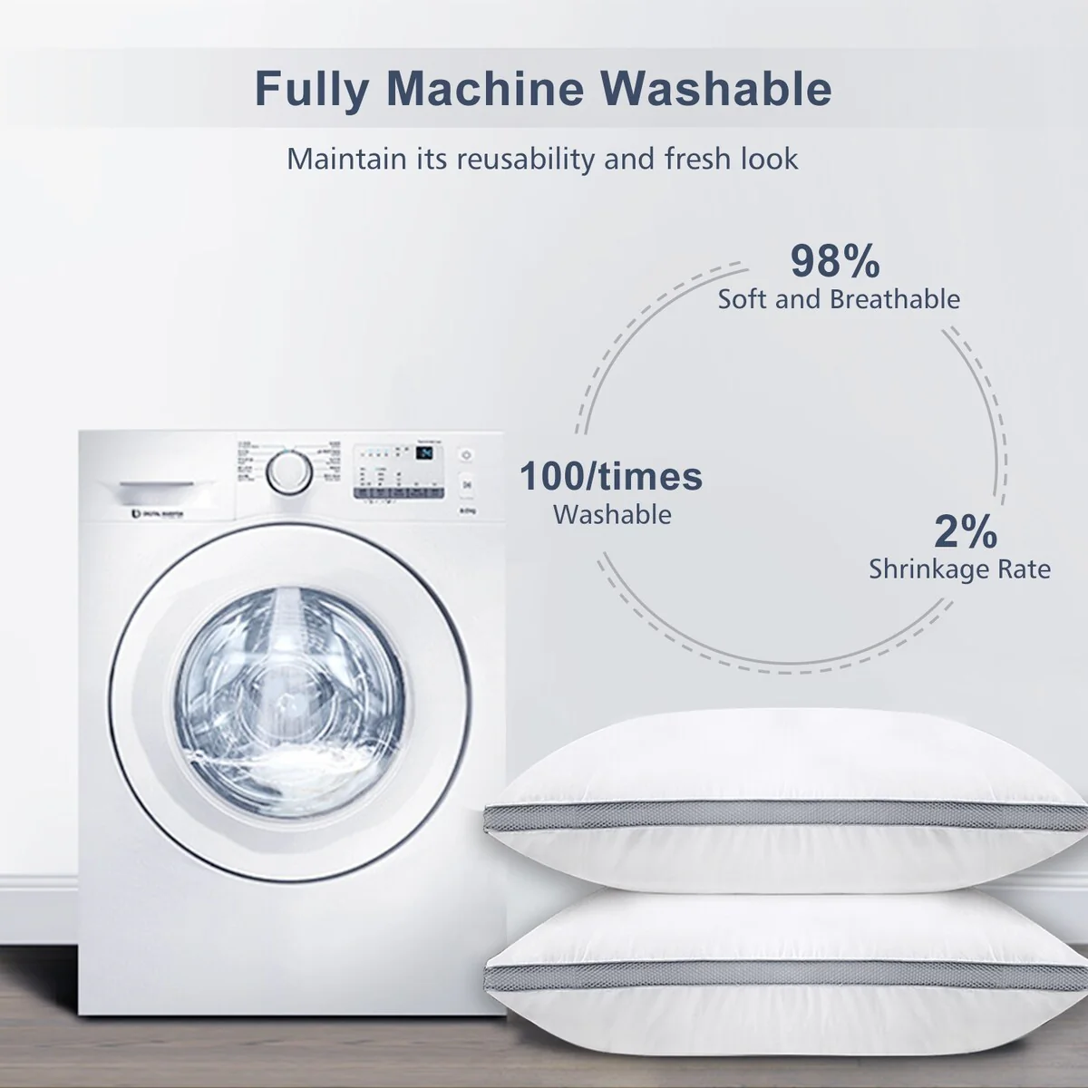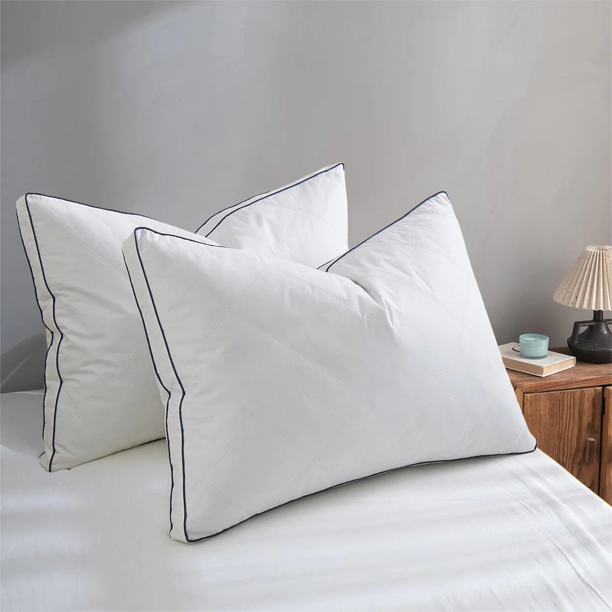 Cotton Gusseted Pillows, Down Bed Pillows for Side&Back Sleepers, Set of 2