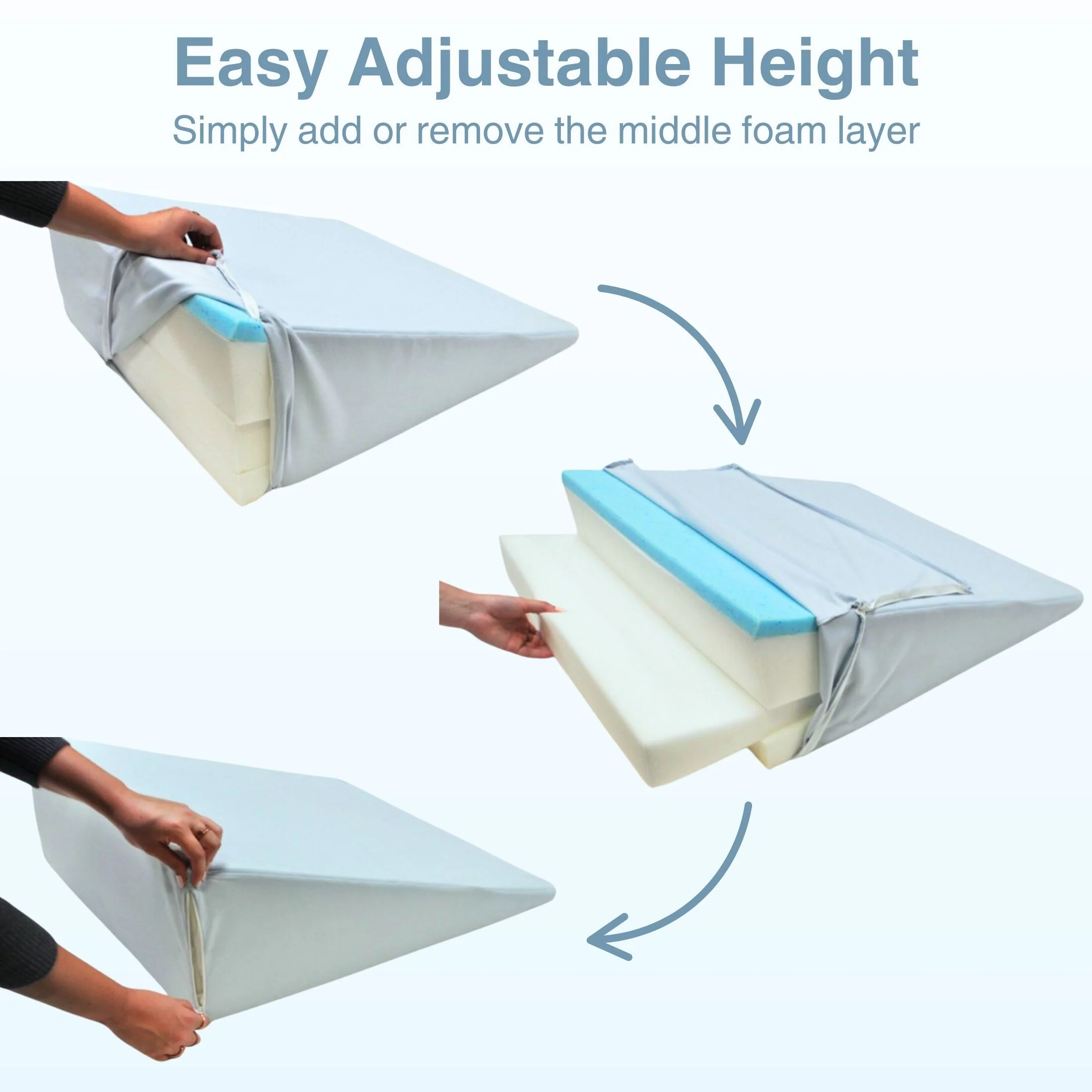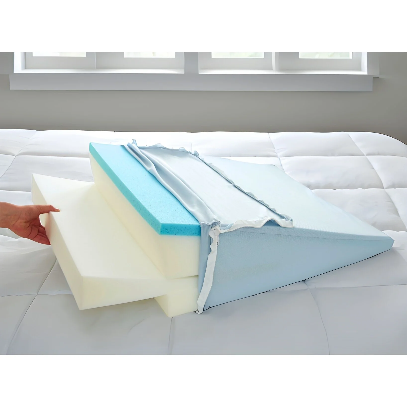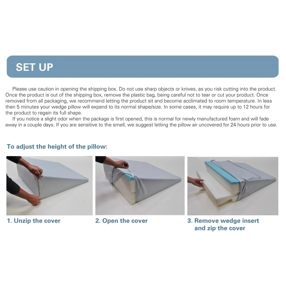 Body Sleep Adjustable Memory Foam Wedge Pillow with Zip-Off Washable Cover - Adjustable Elevation for Neck, Back, or Legs