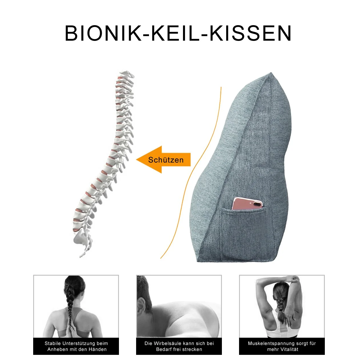 Bed Wedge Pillow, 24-Inch Wide Incline Support Cushion for Lower Back Pain, Anti Snoring, Heartburn, Multi Position, 24-Inch