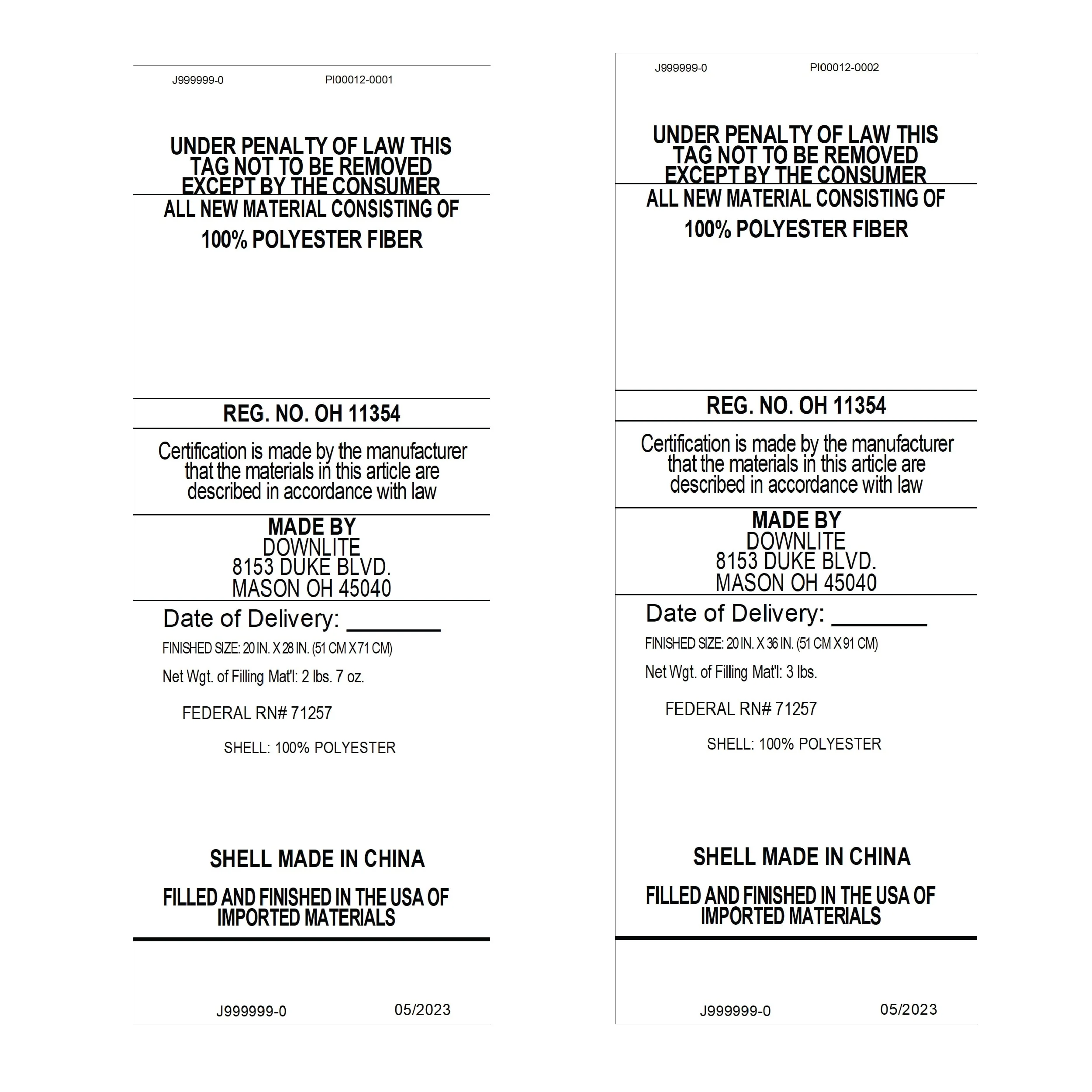 71" X 20" X 8"