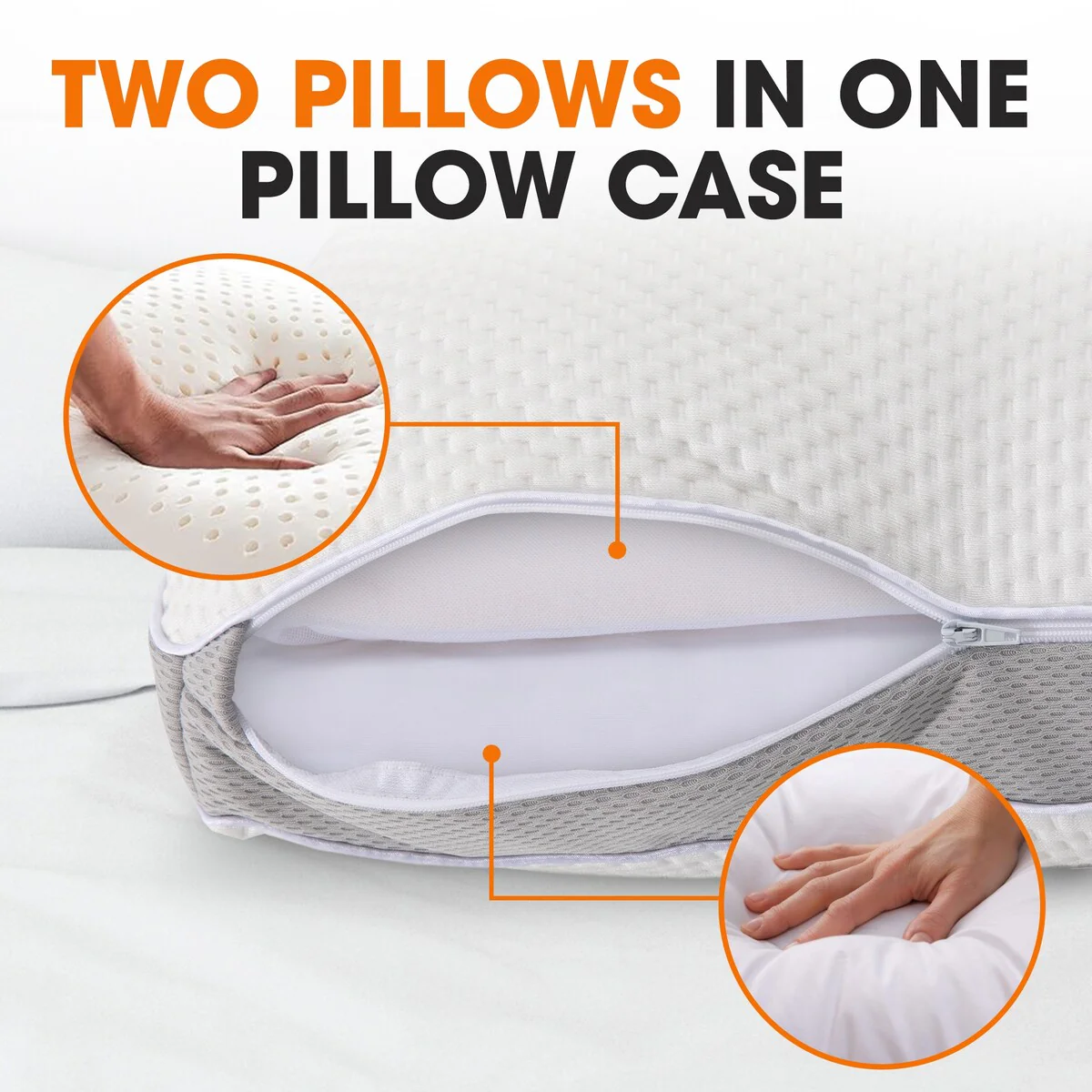 Set of 2 100% Organic Cotton 300 TC Down Feather Pillow-in-a-pillow Design Bed Pillow - White