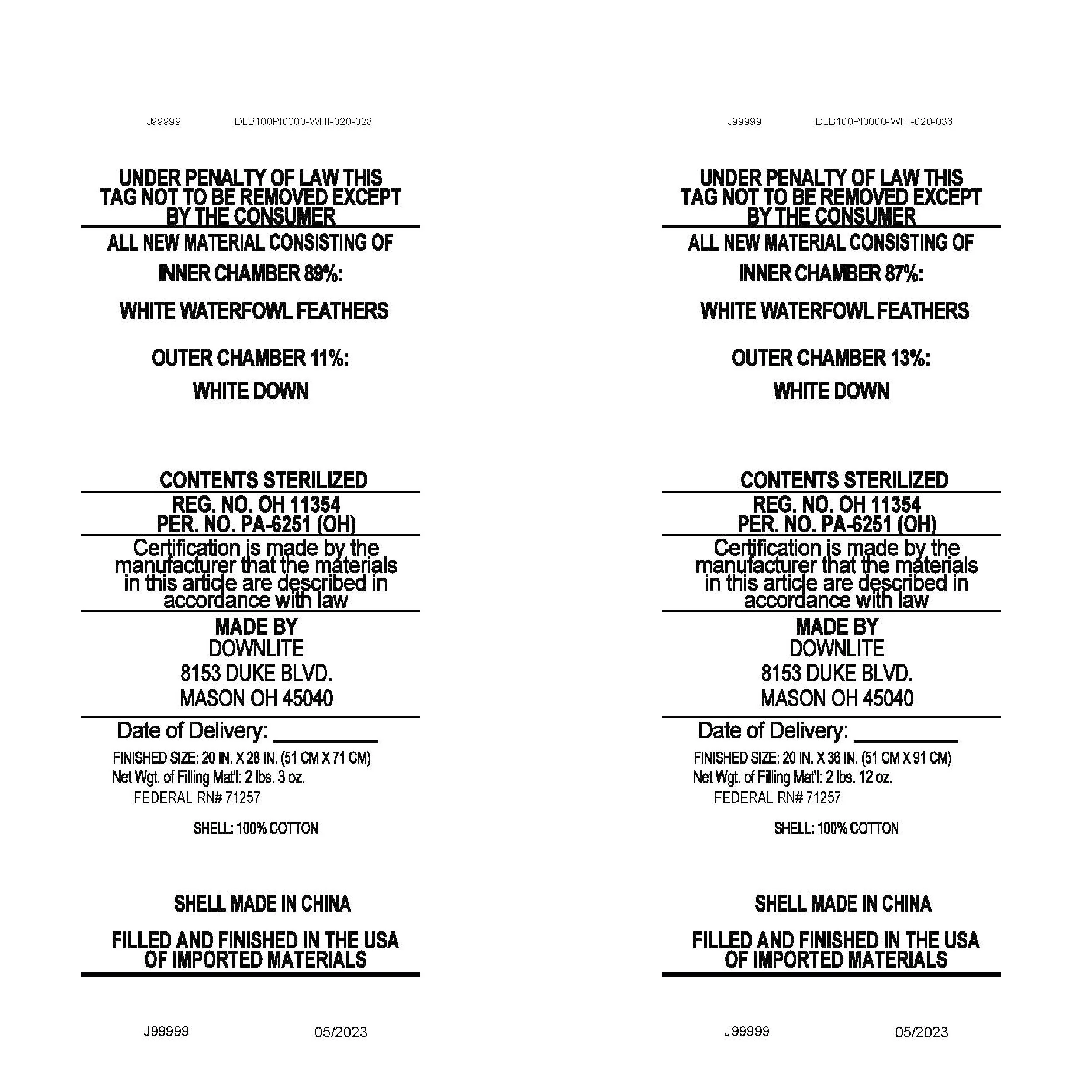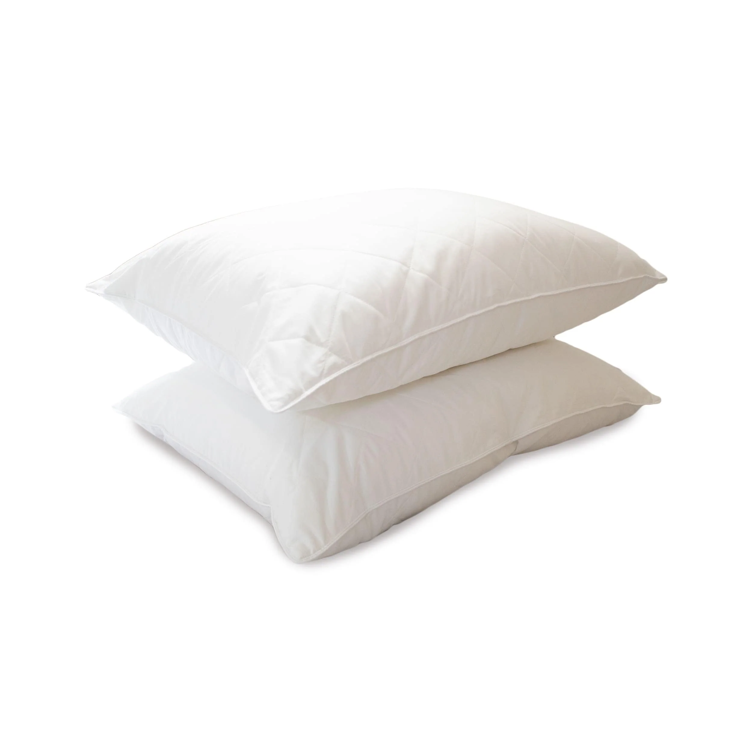 2 Pack Goose Feather Down Pillows with Quilted Cotton Cover - White