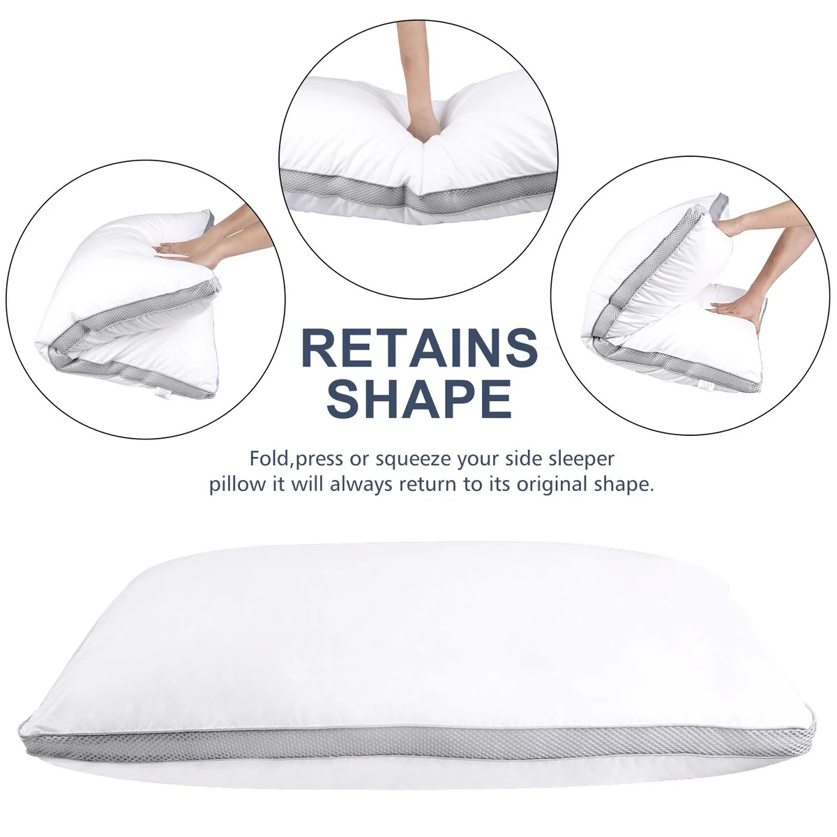 Shatex Firm Bed Pillow, Firm Pillow for Back and Side Sleepers, Standard, White