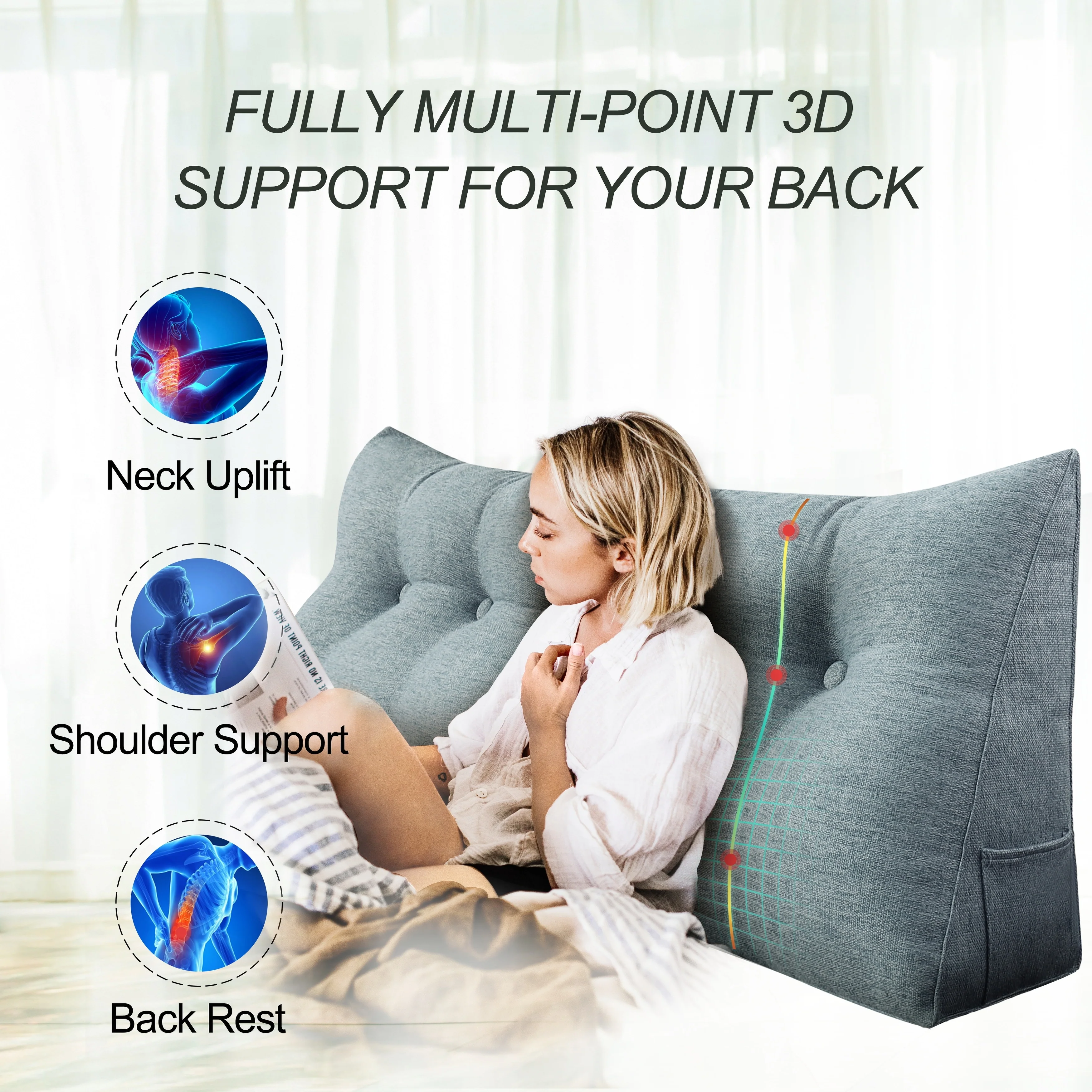 WOWMAX Bed Rest Wedge Pillow Bolster Reading TV Daybed Back Support