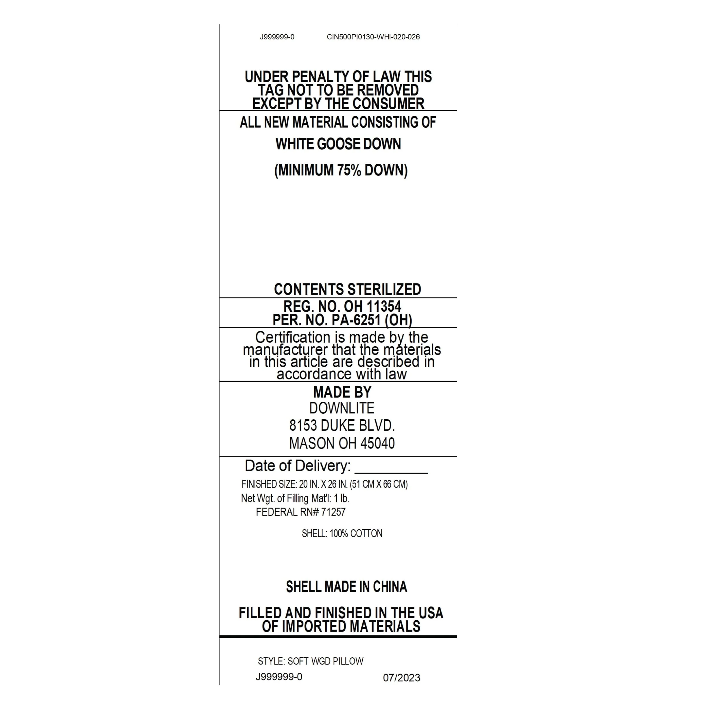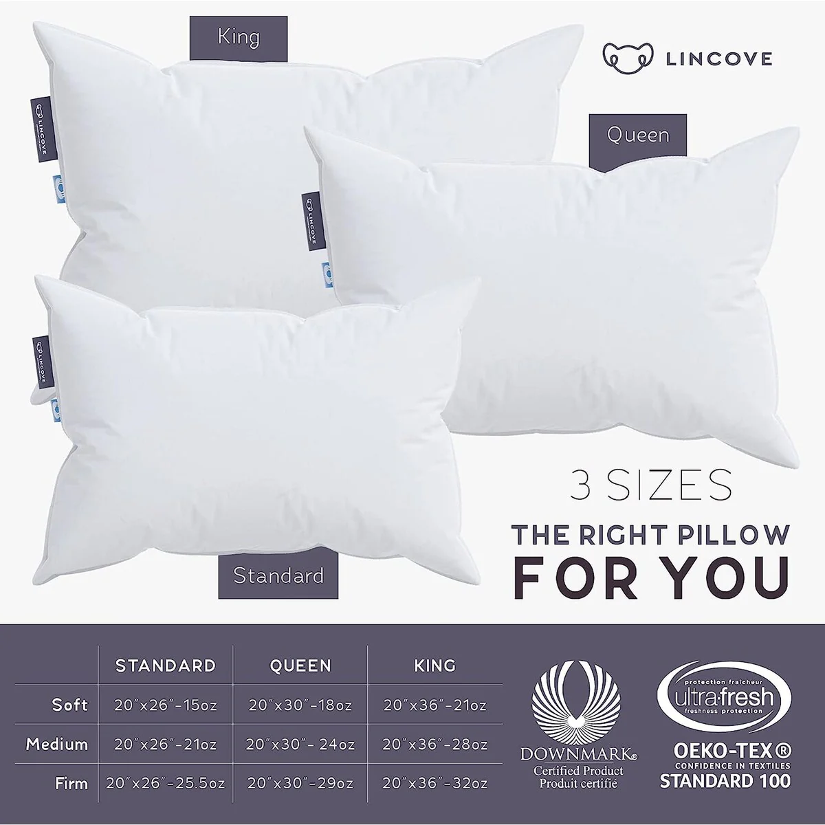 Lincove European Down Venus Pillow - 600 Fill Power - Count Shell