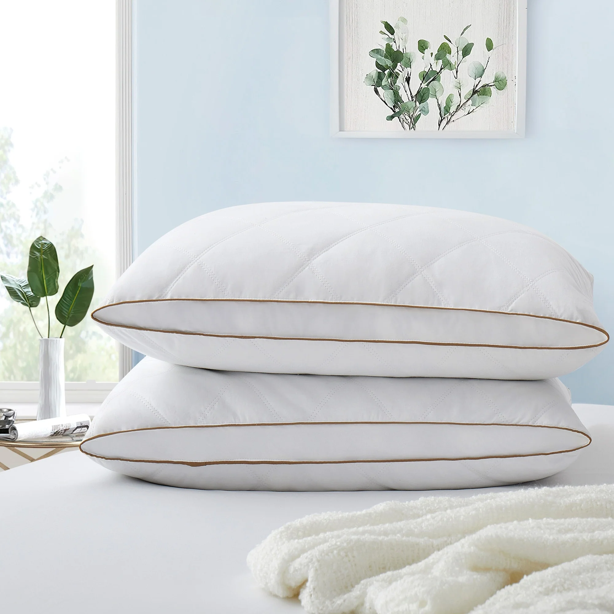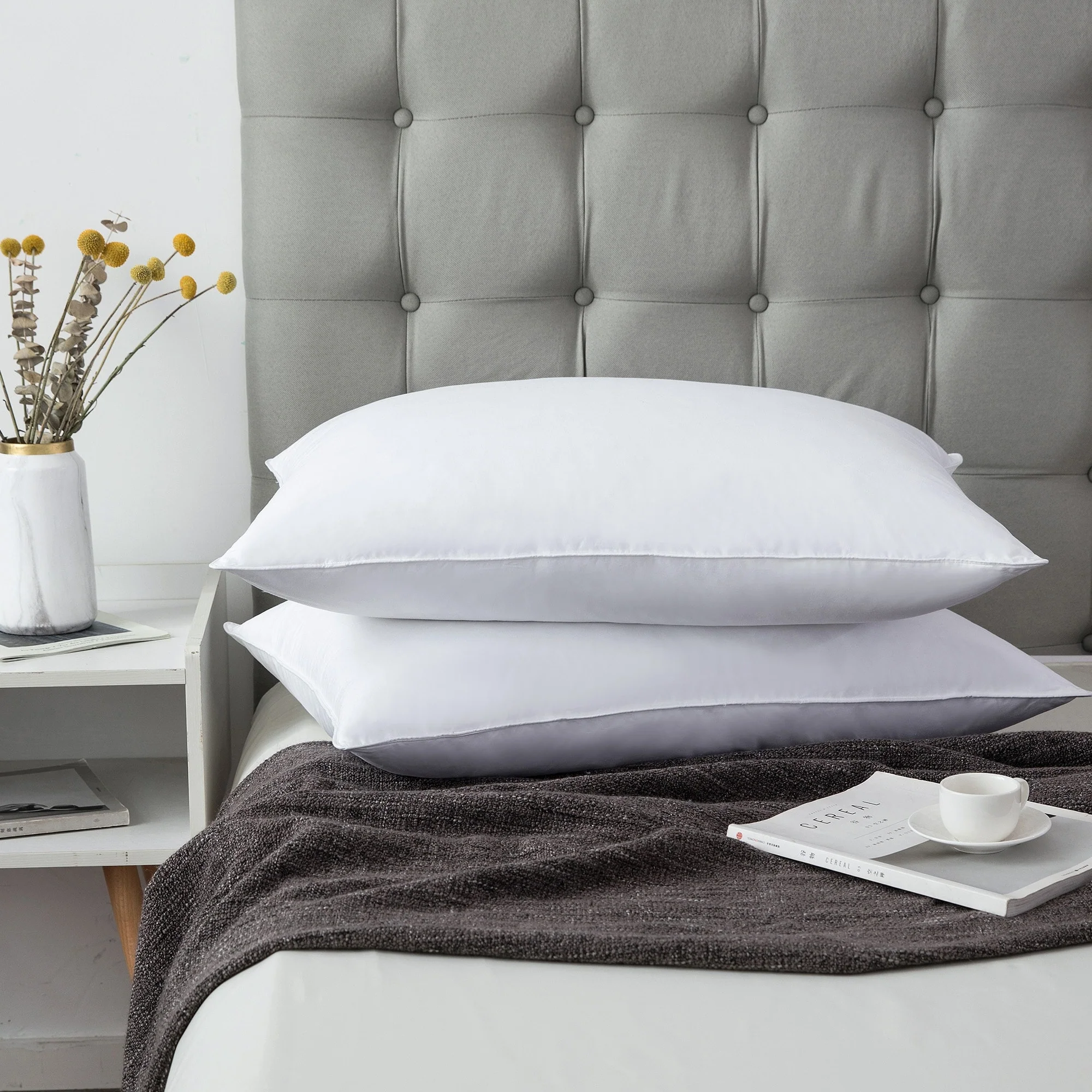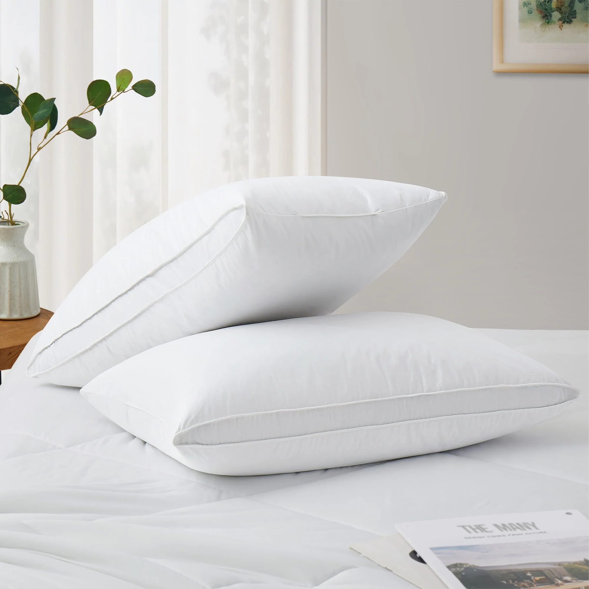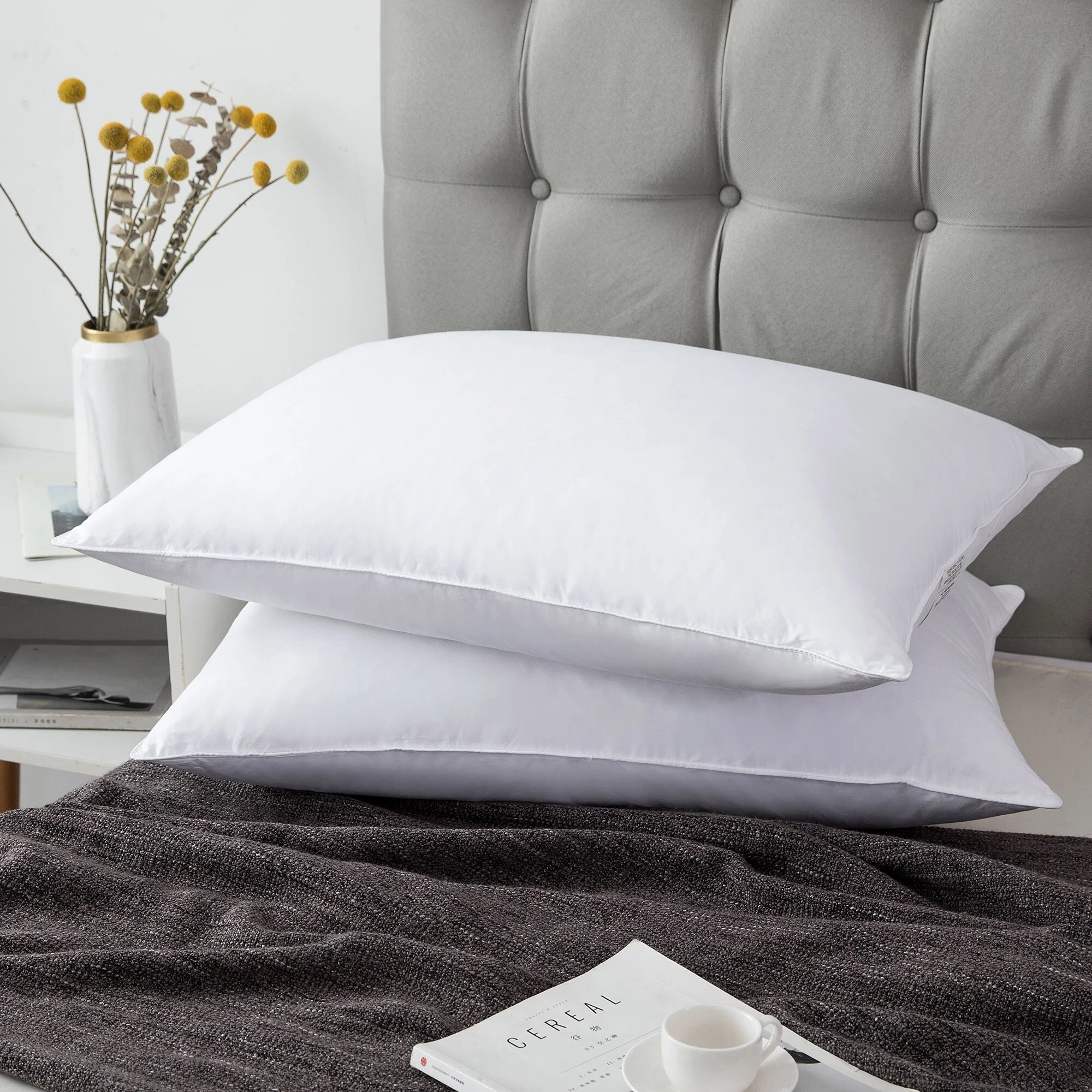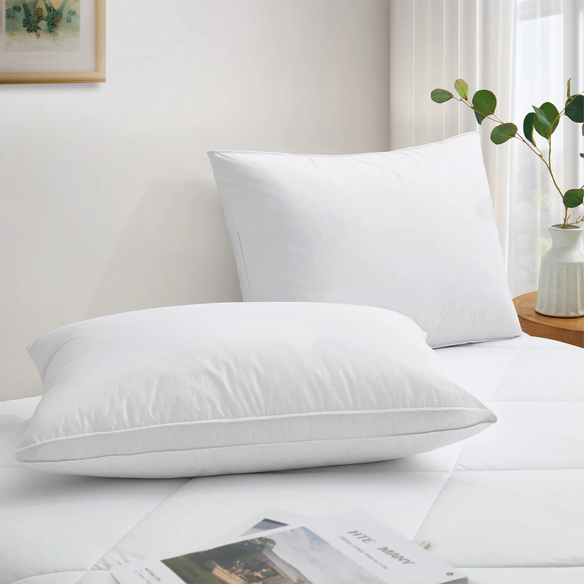 Subrtex Medium Density White Goose Feather and Down Pillows
