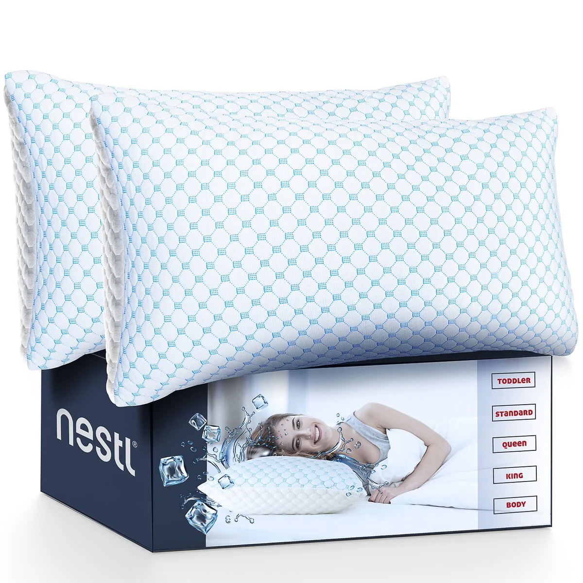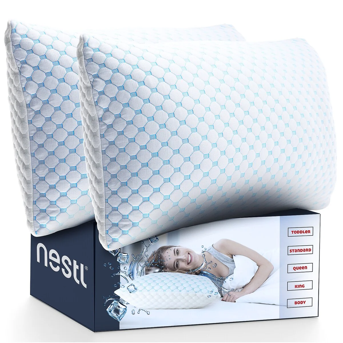 Nestl Coolest Heat and Moisture Reducing Ice Silk Pillow - Gel Infused Adjustable, Breathable, and Washable Memory Foam Pillow