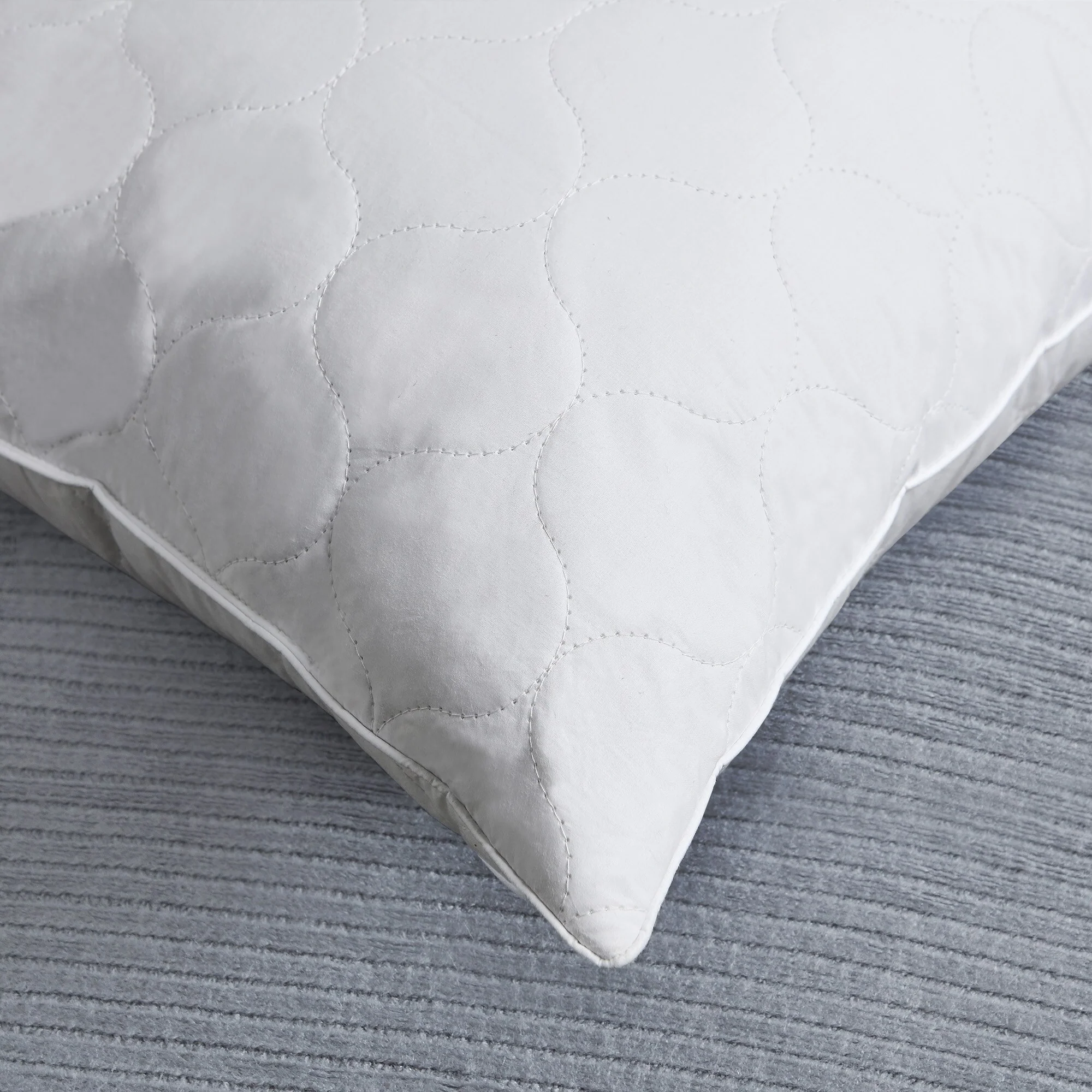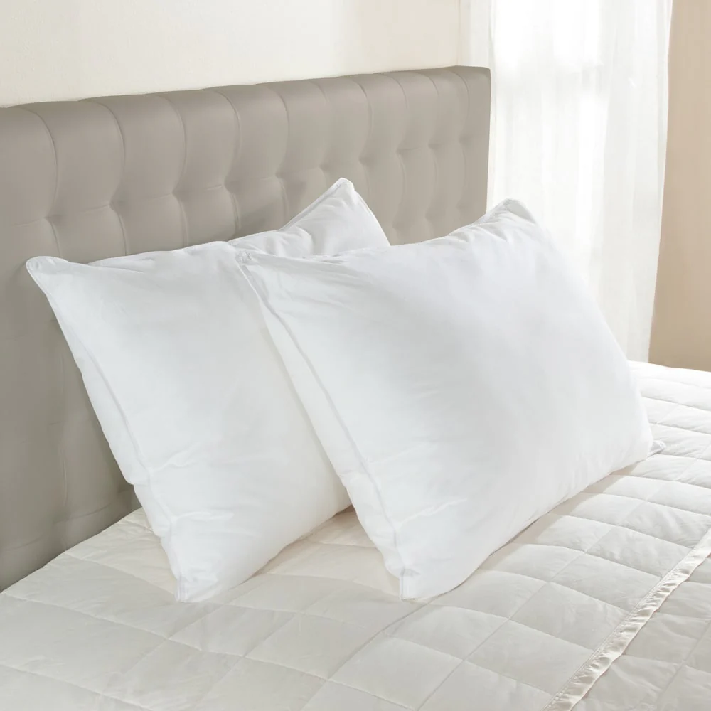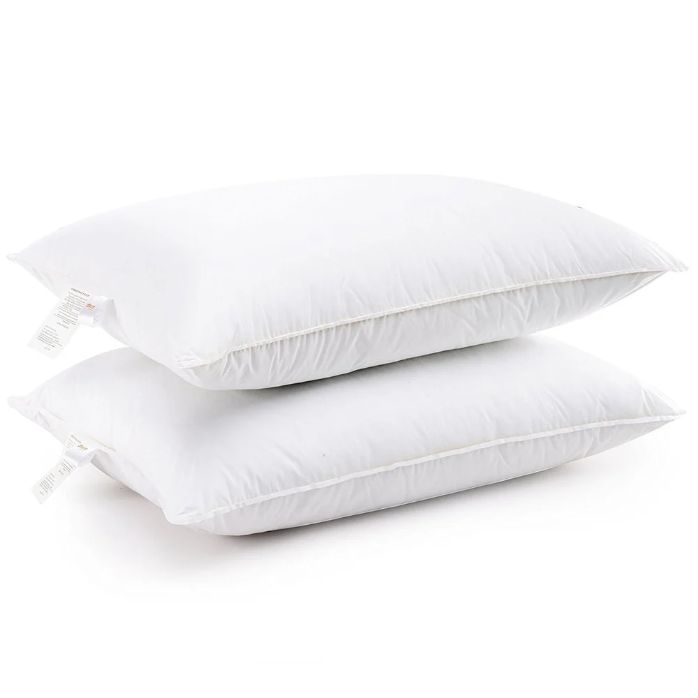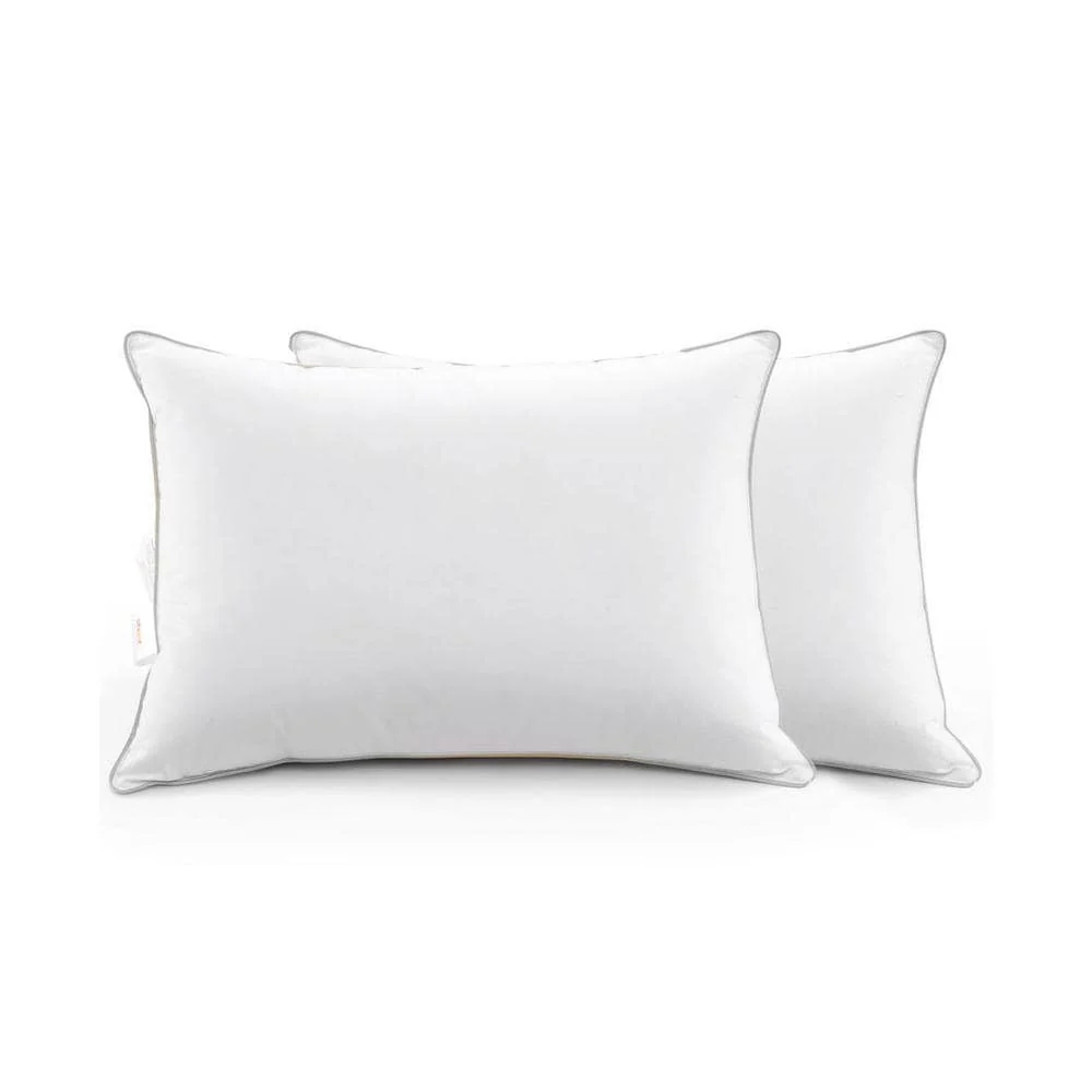 Goose Feather Down Medium Pillow White Quilted Cotton Cover Set of 2