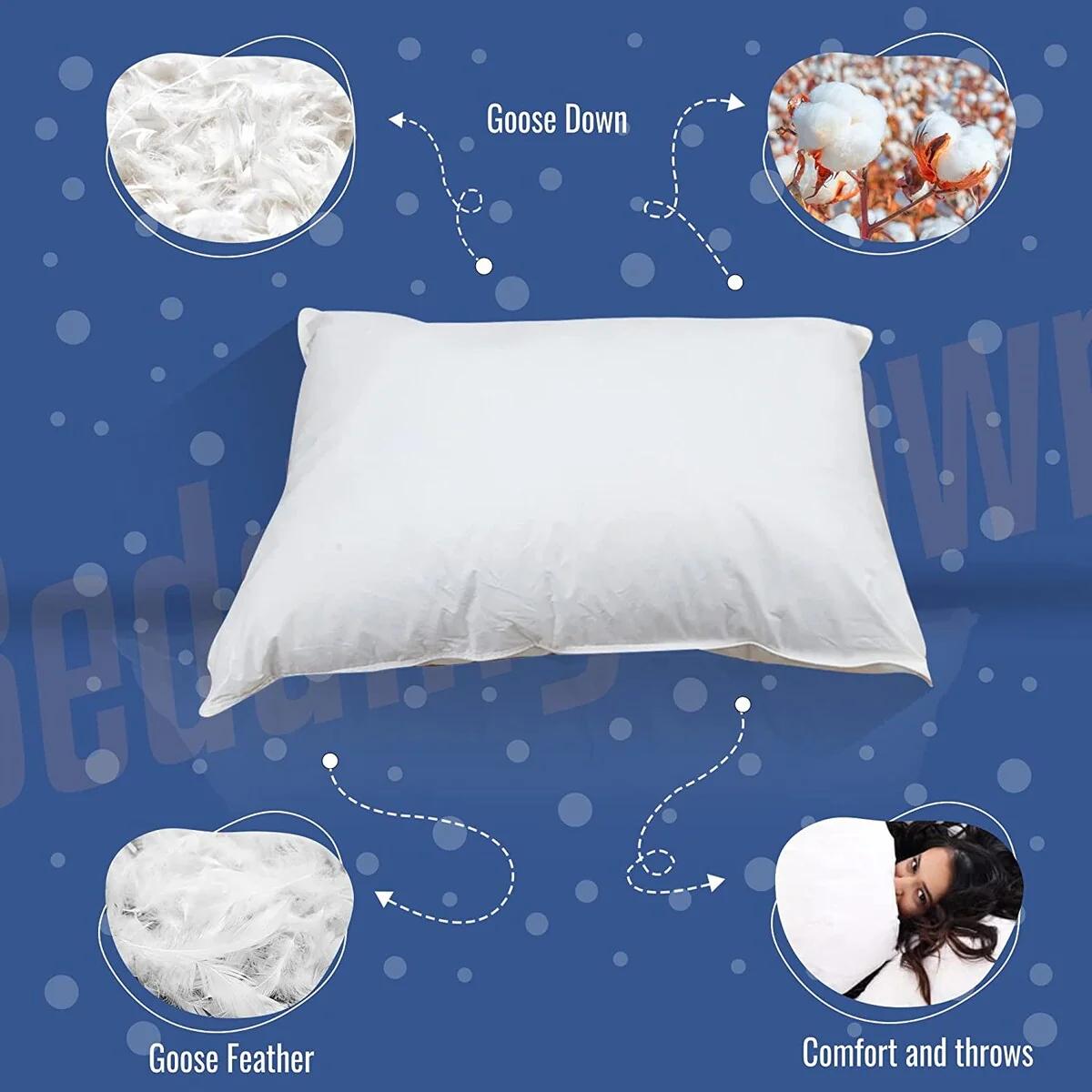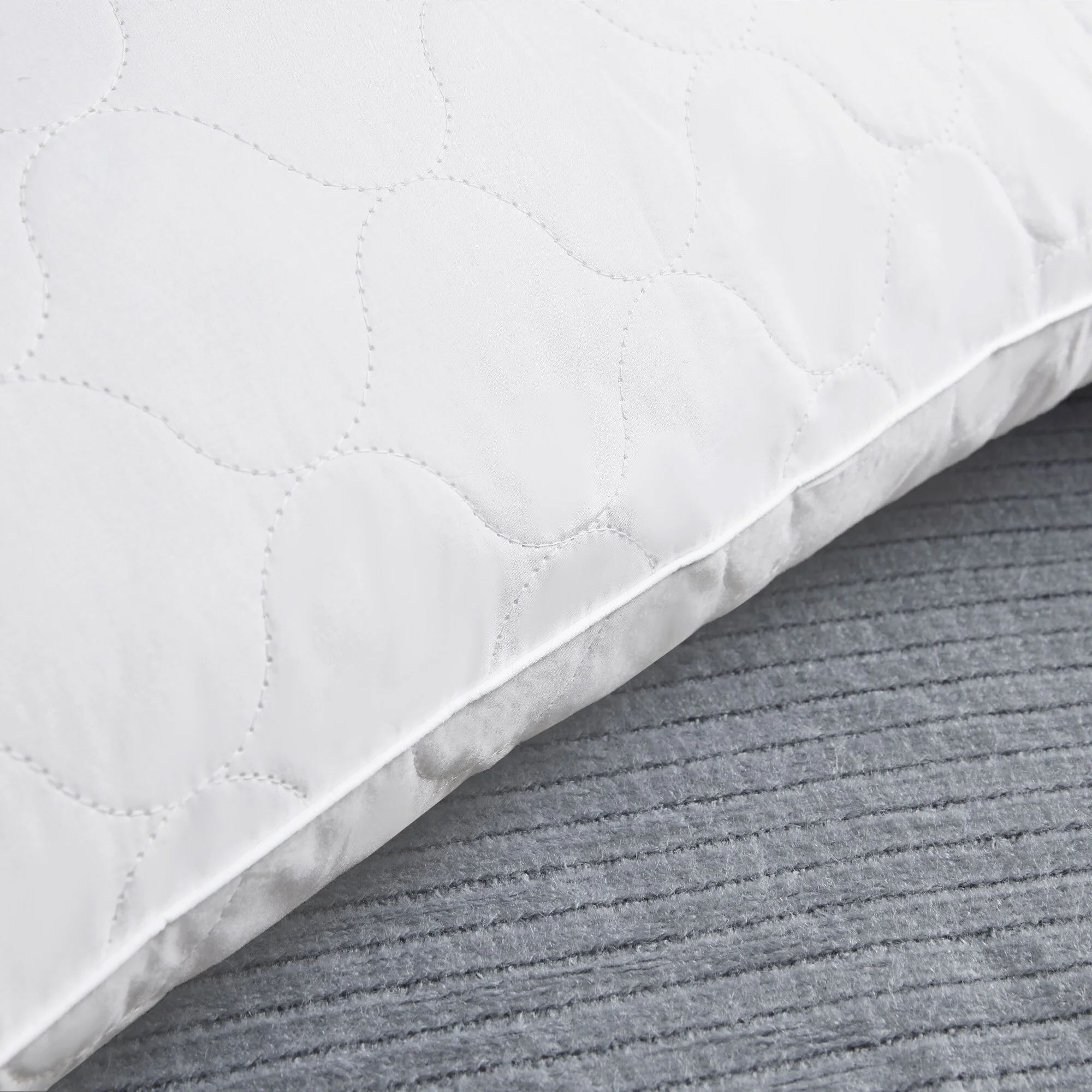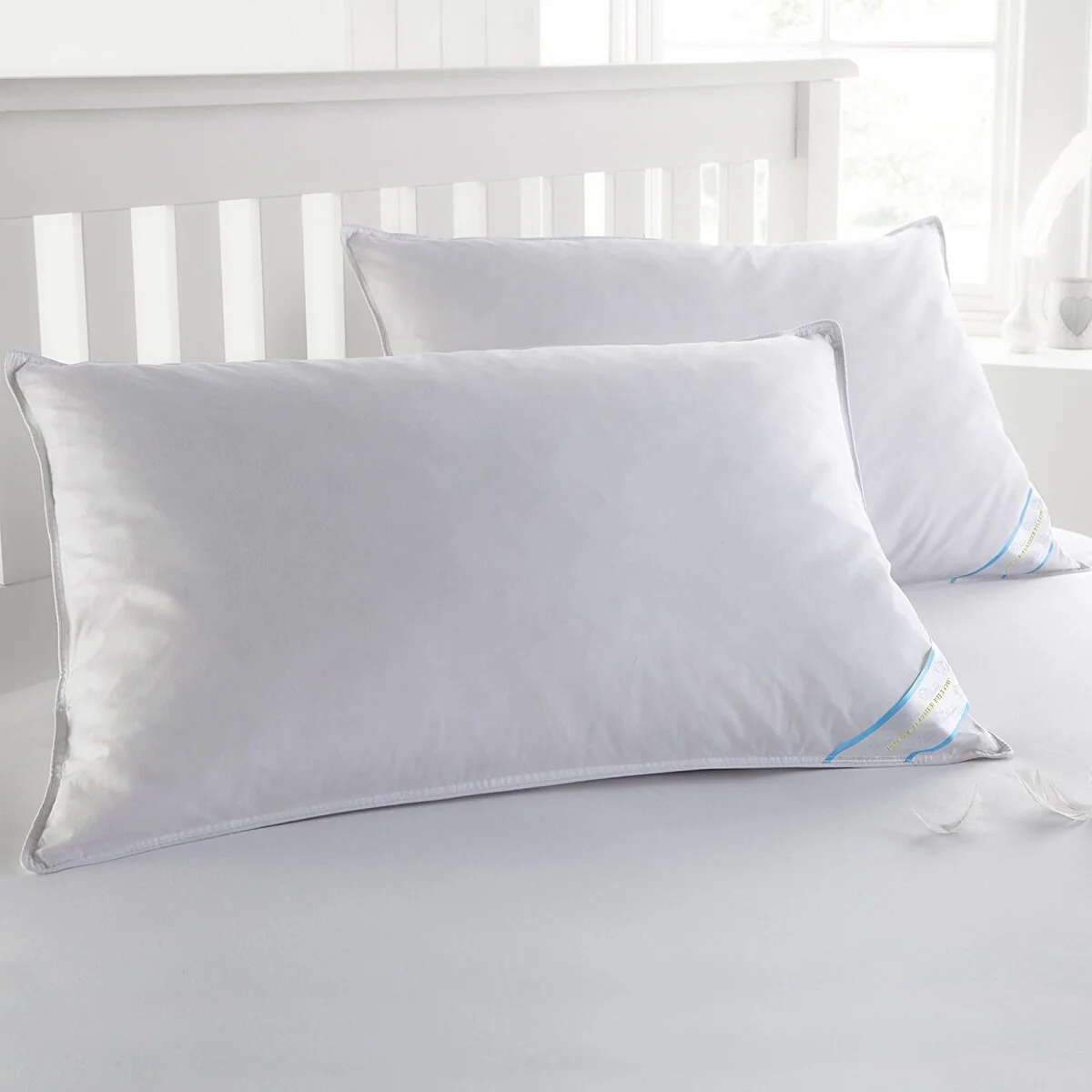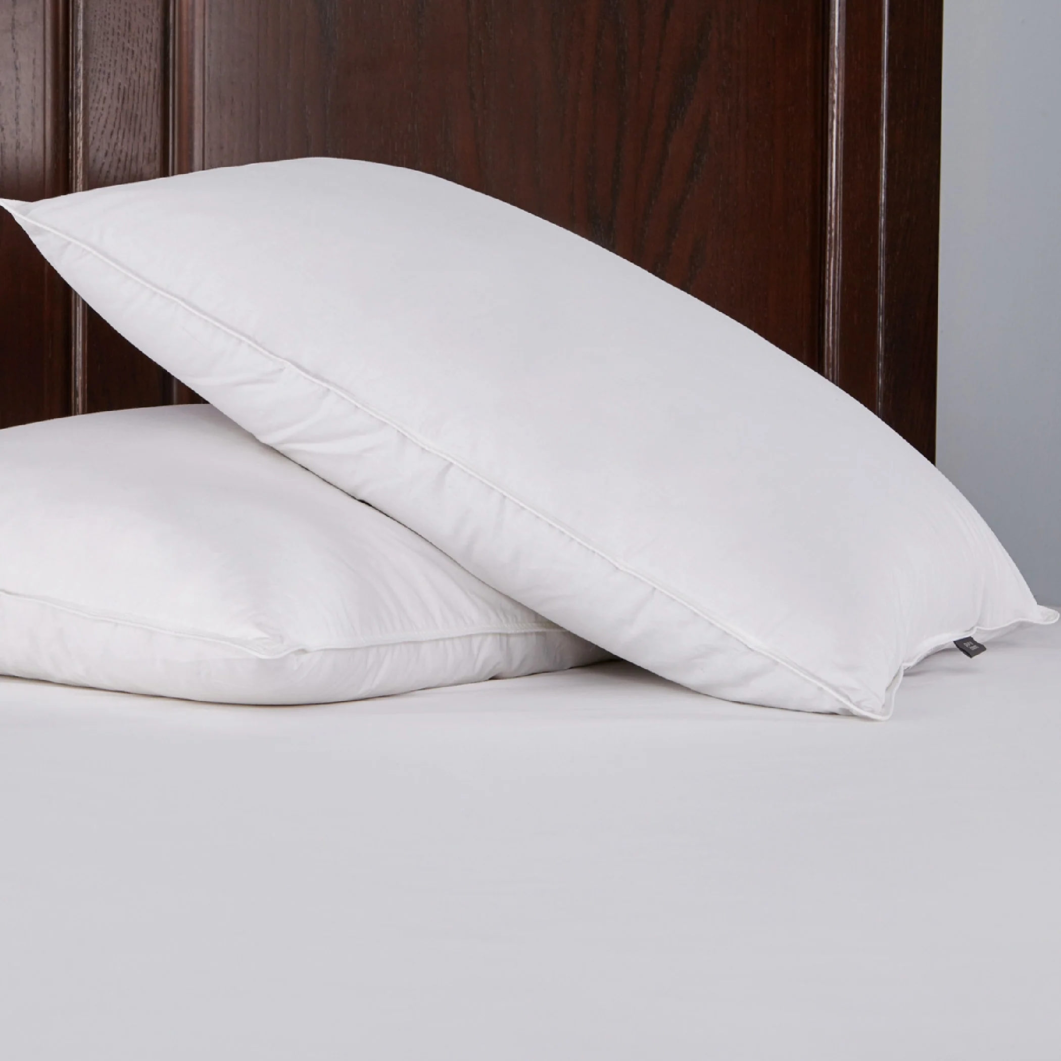 Goose Feather Down Medium Pillow White Quilted Cotton Cover Set of 2