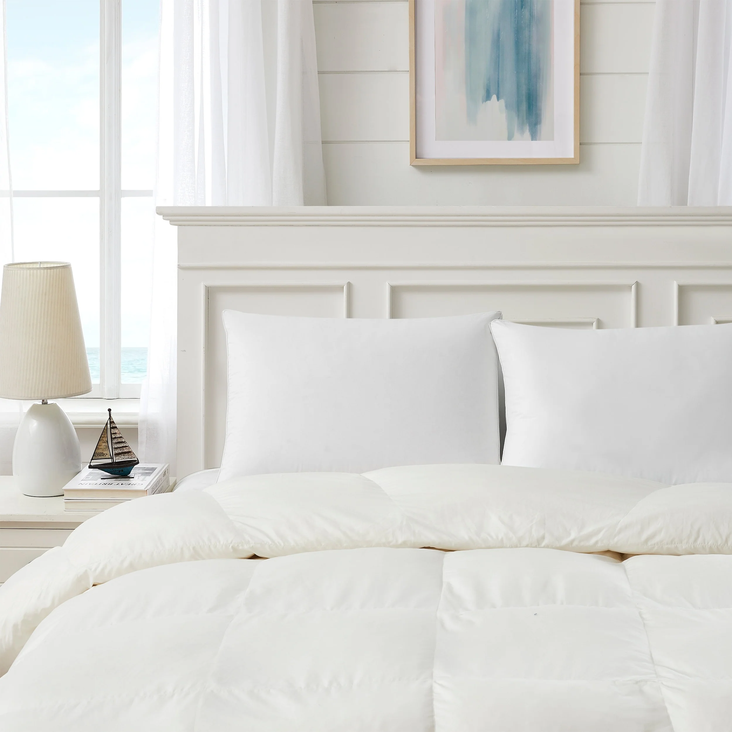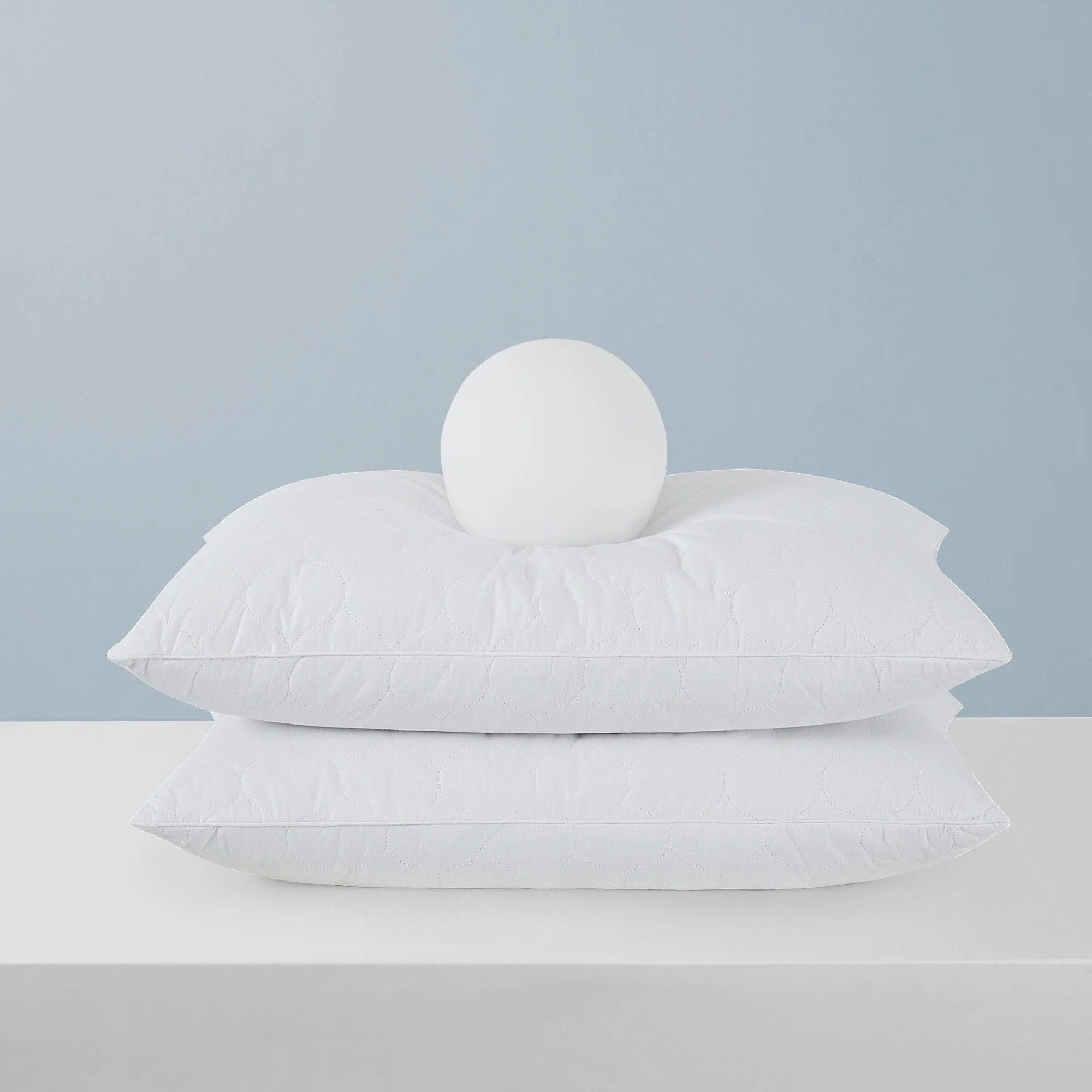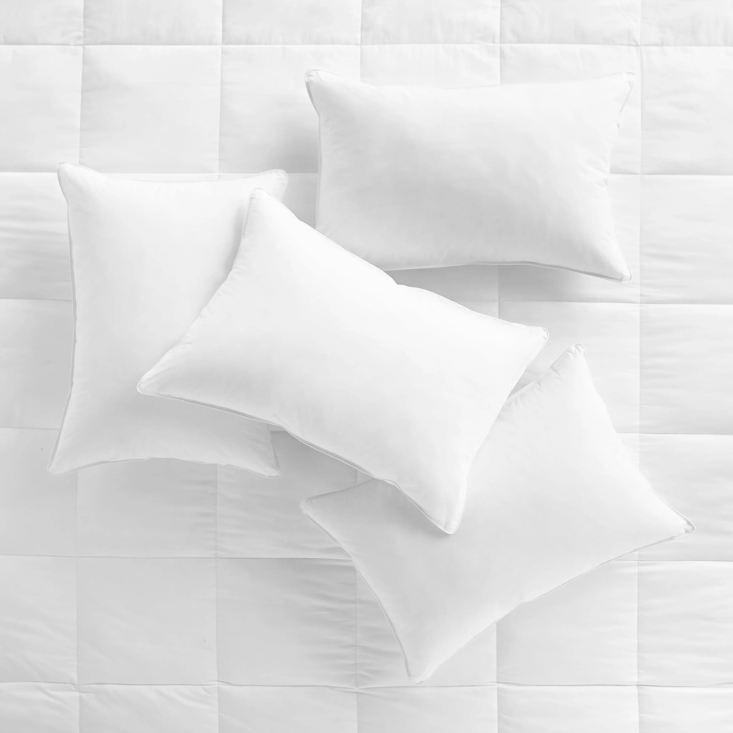 Goose Feather Down Medium Pillow White Quilted Cotton Cover Set of 2