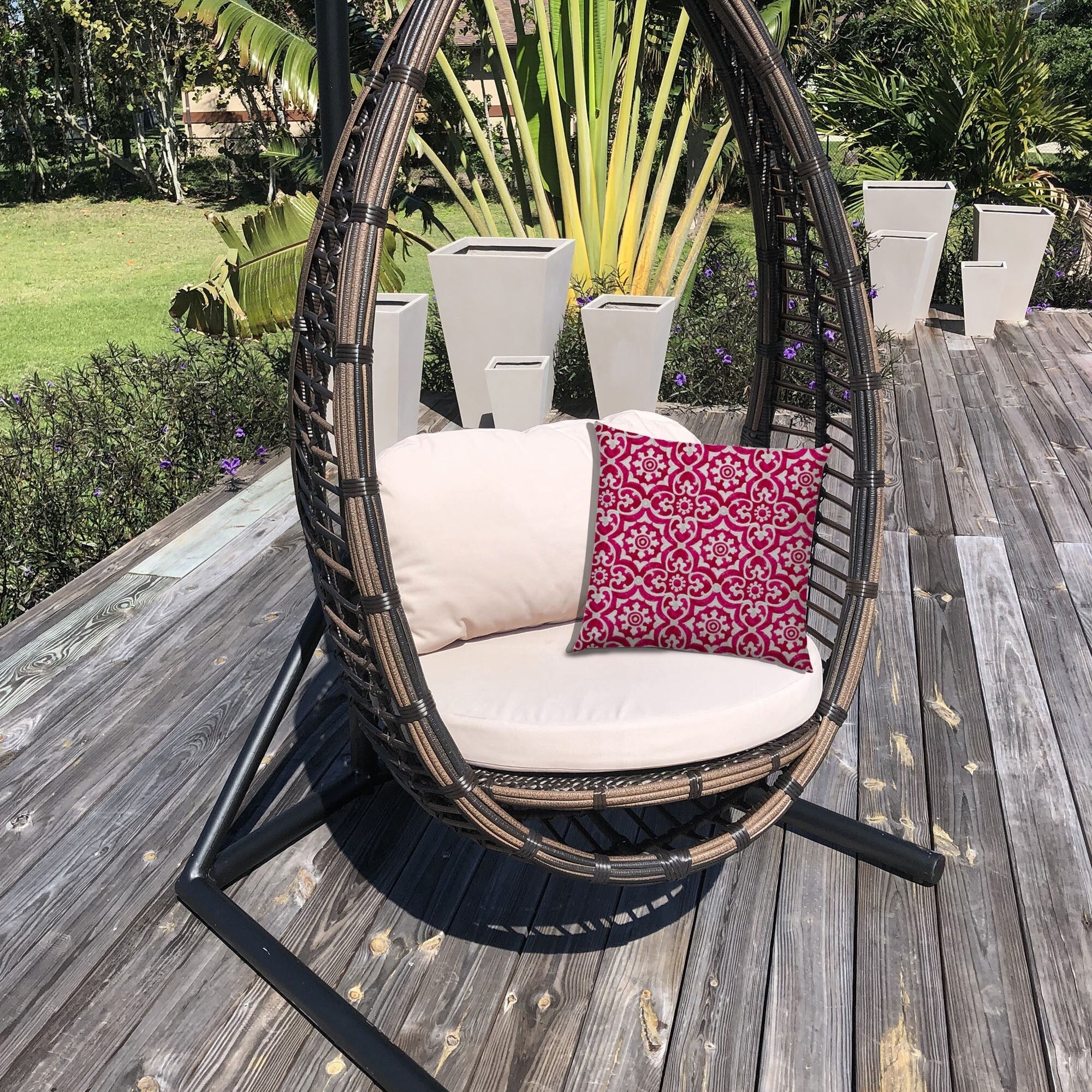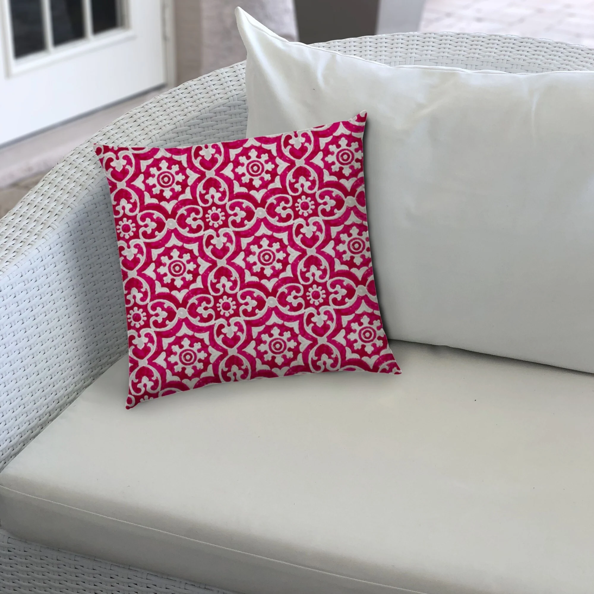 20" Pink Medallion Indoor Outdoor Zippered Pillow Cover - Grey