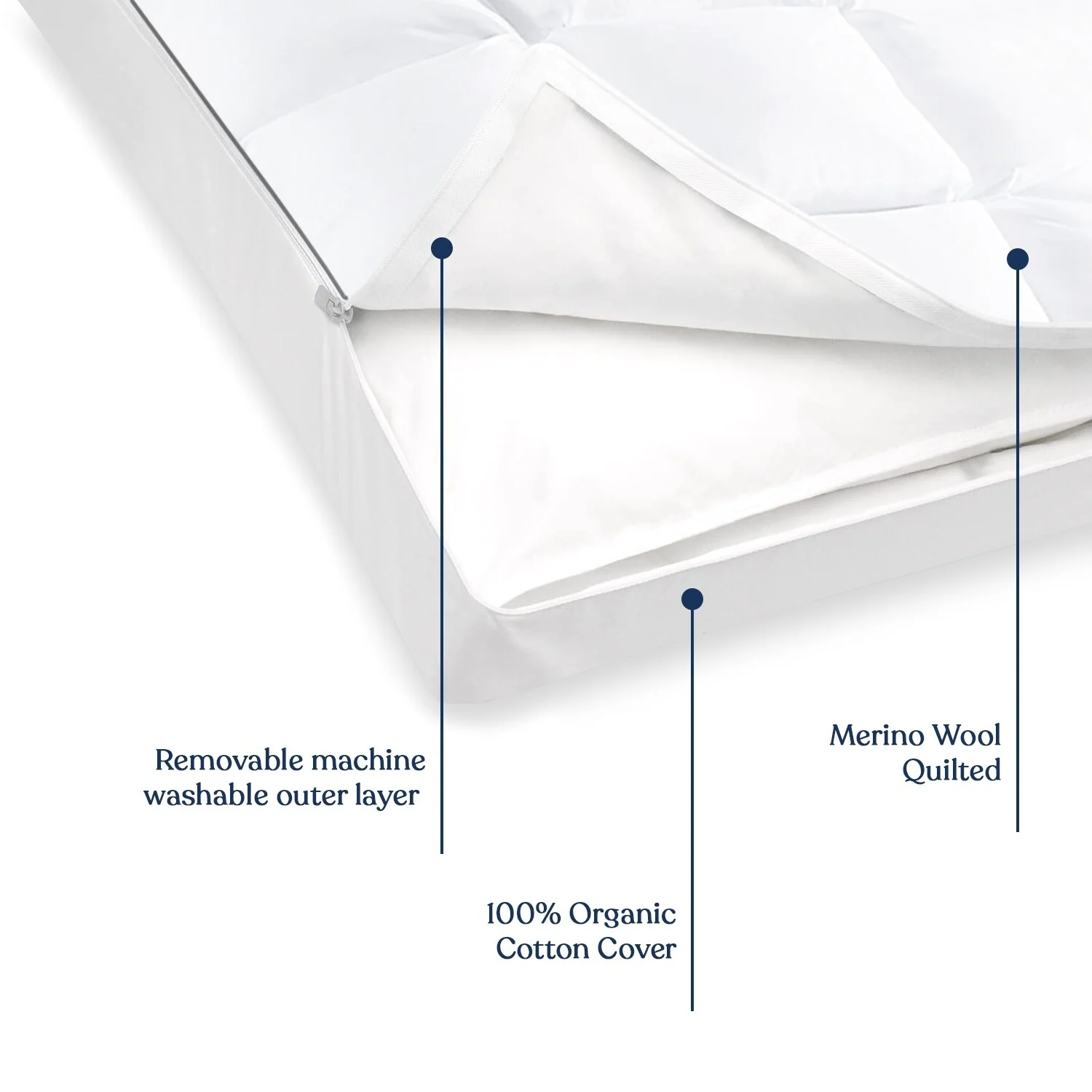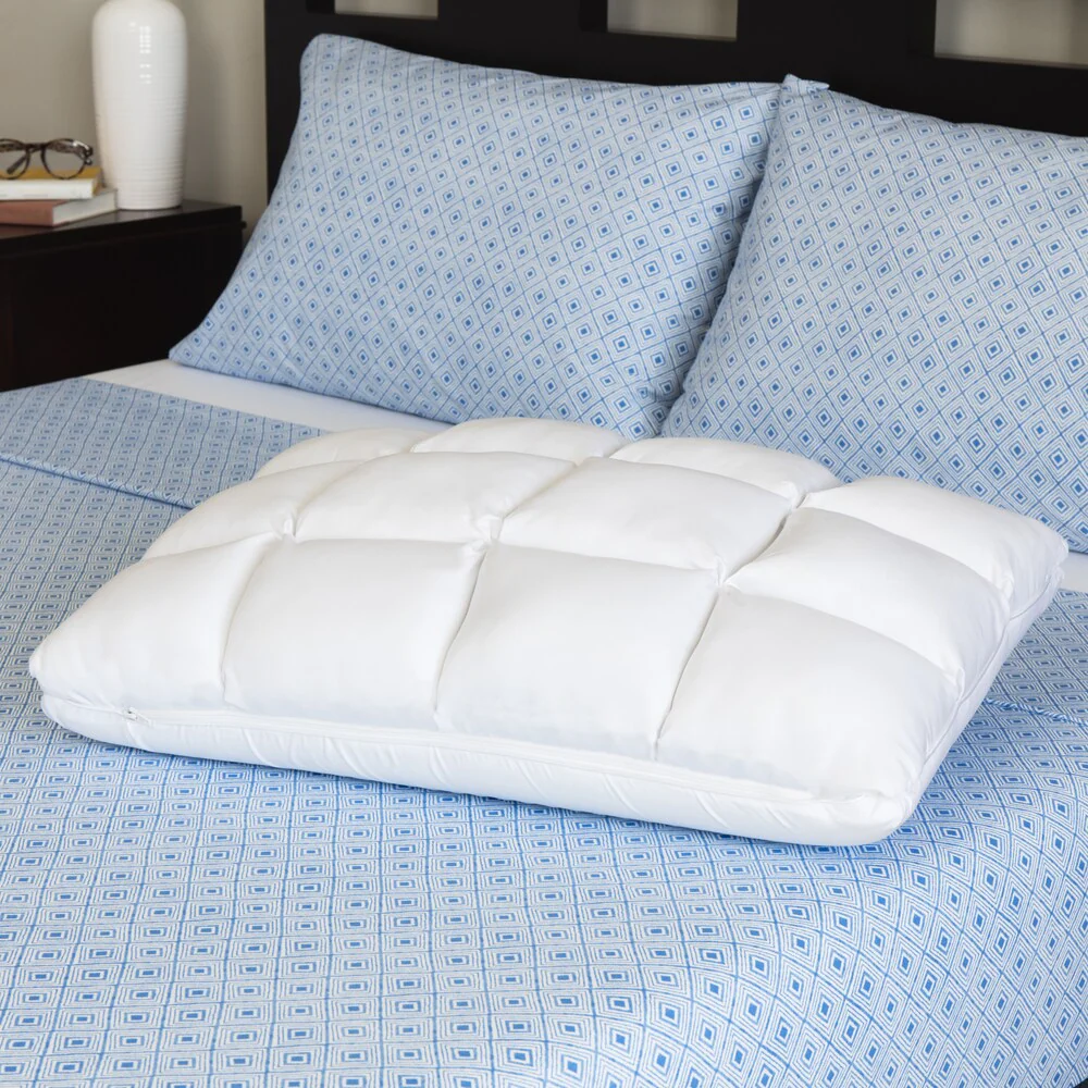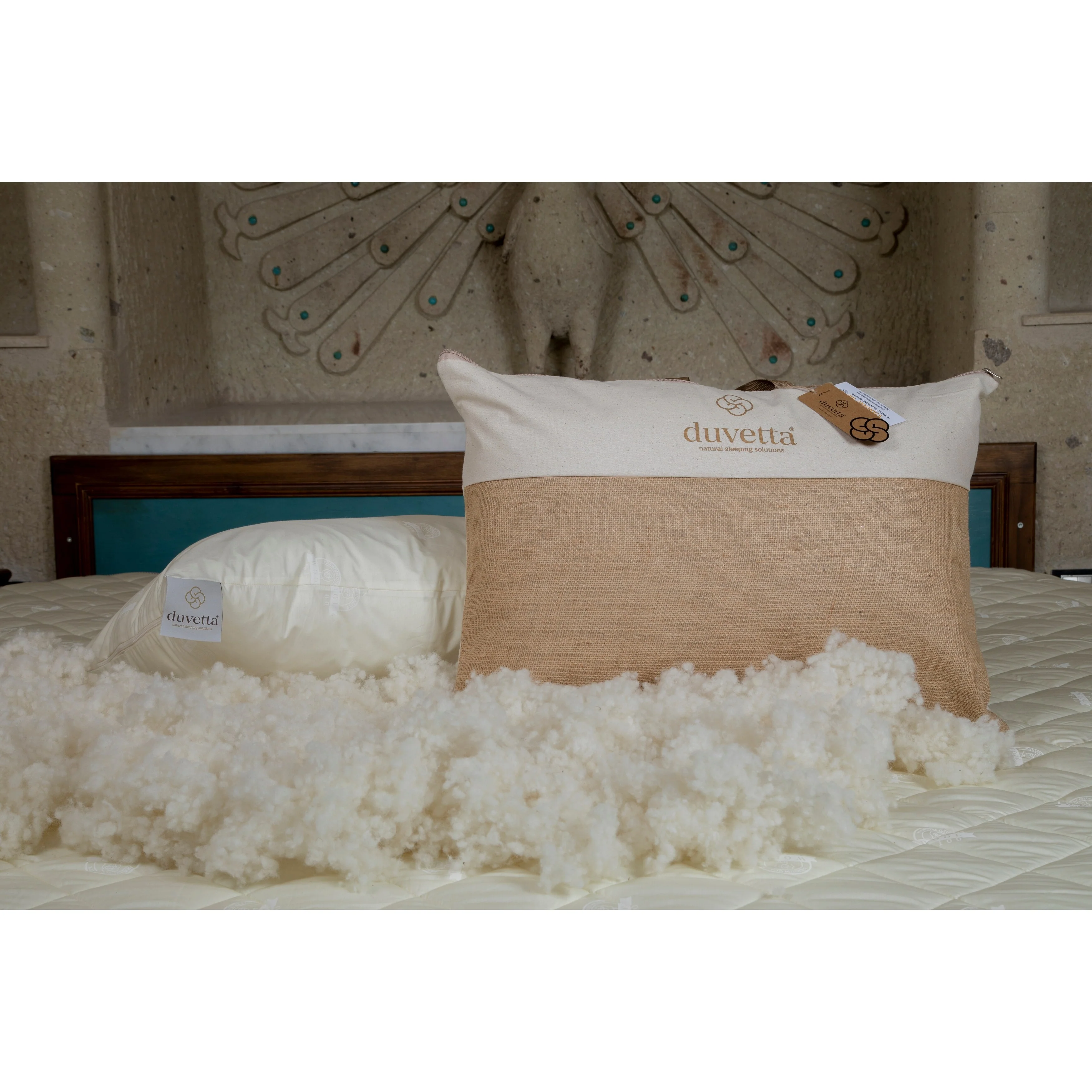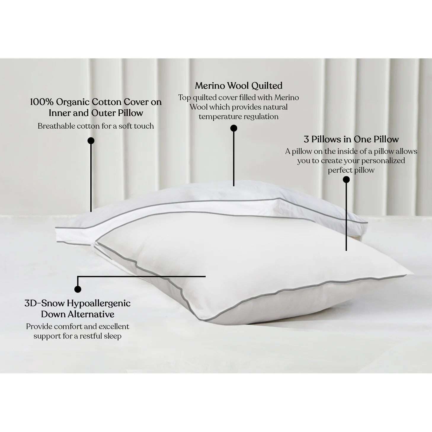 Delara Merino Wool Quilted 3in1 Adjustable Pillow Organic Cotton Cover Baffle Box Construction, Sleep Pillow