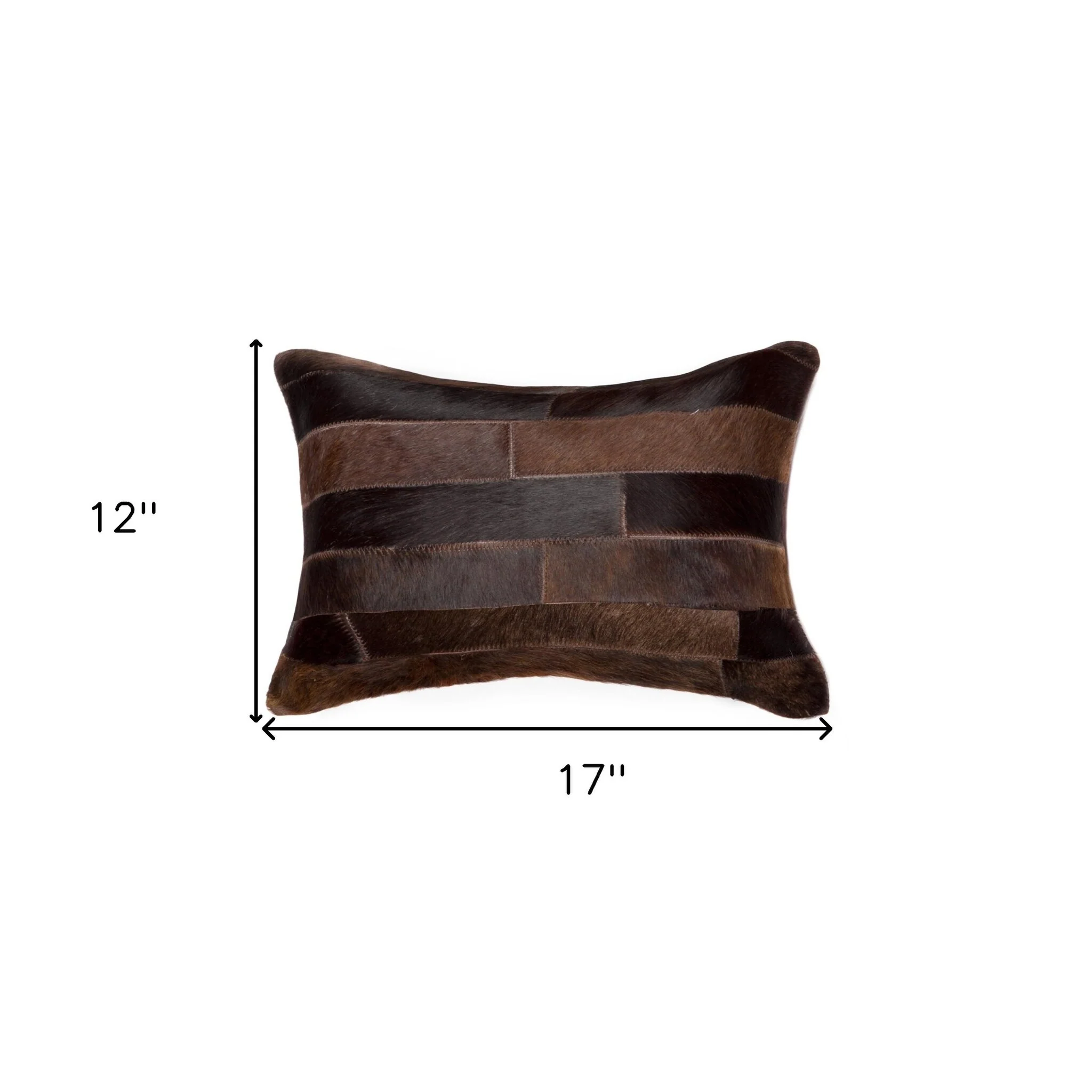 12" X 20" Chocolate Patchwork Cowhide Lumbar Throw Pillow