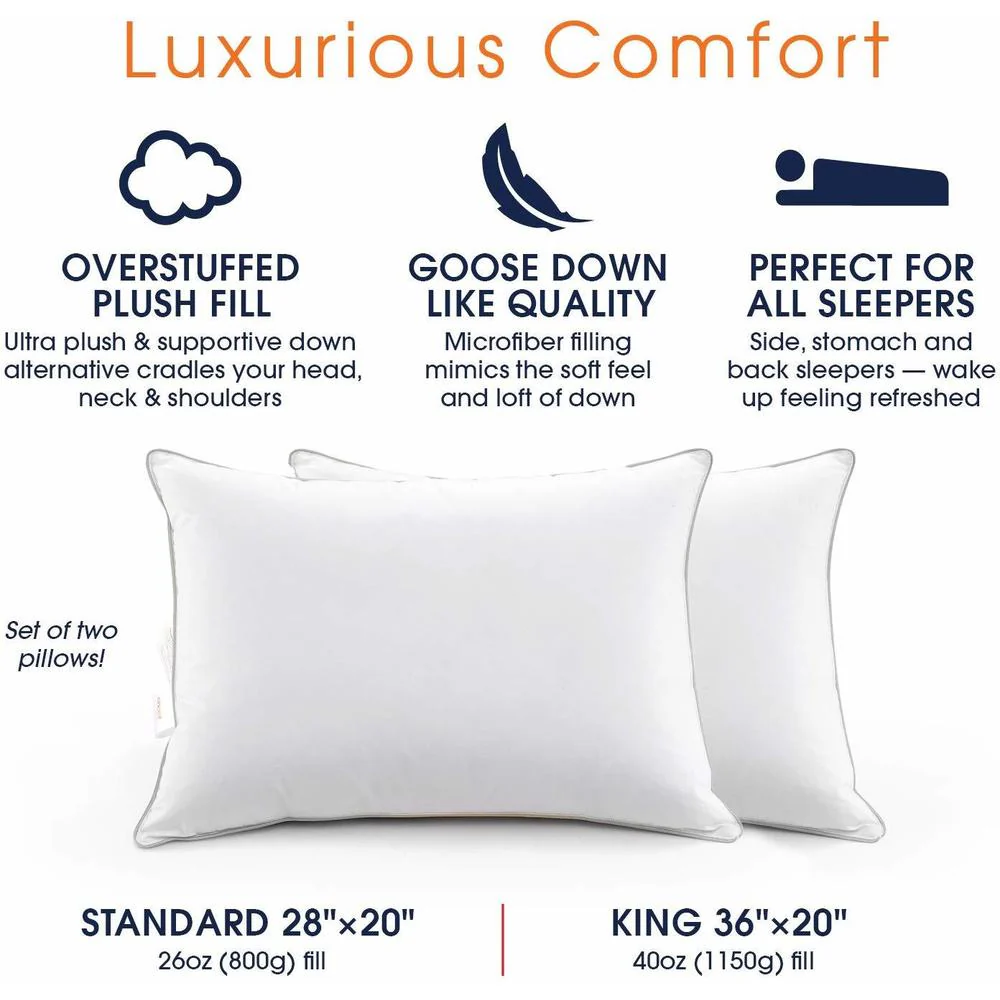 2-Pack Hypoallergenic Down-Alternative, Bed Pillows