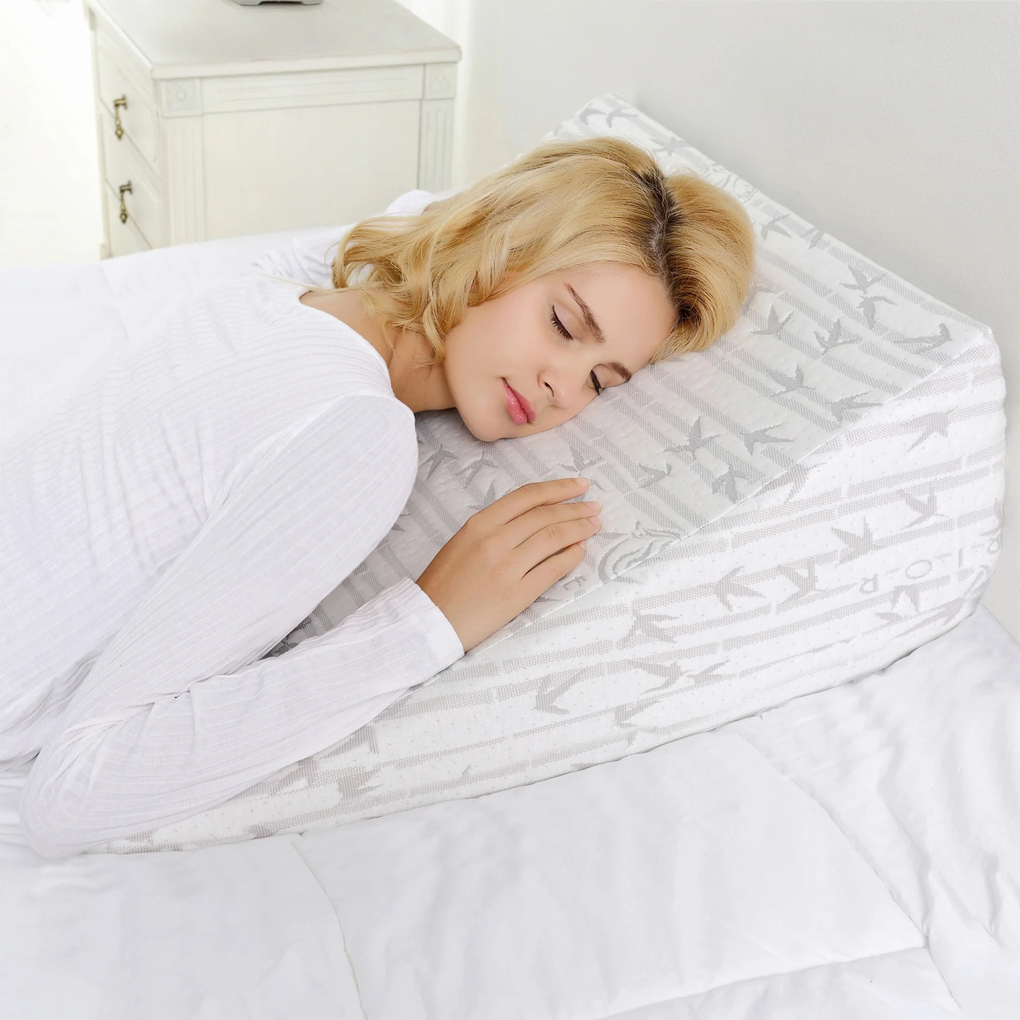 Superior Memory Foam Wedge Sleeping Support Pillow, Removable Cover, White