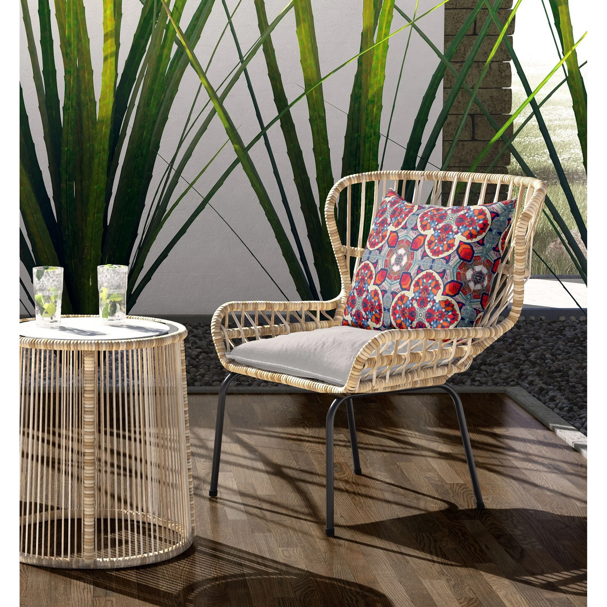 17" X 17" Blue Yellow And Ivory Zippered Polyester Tropical Throw Pillow Cover