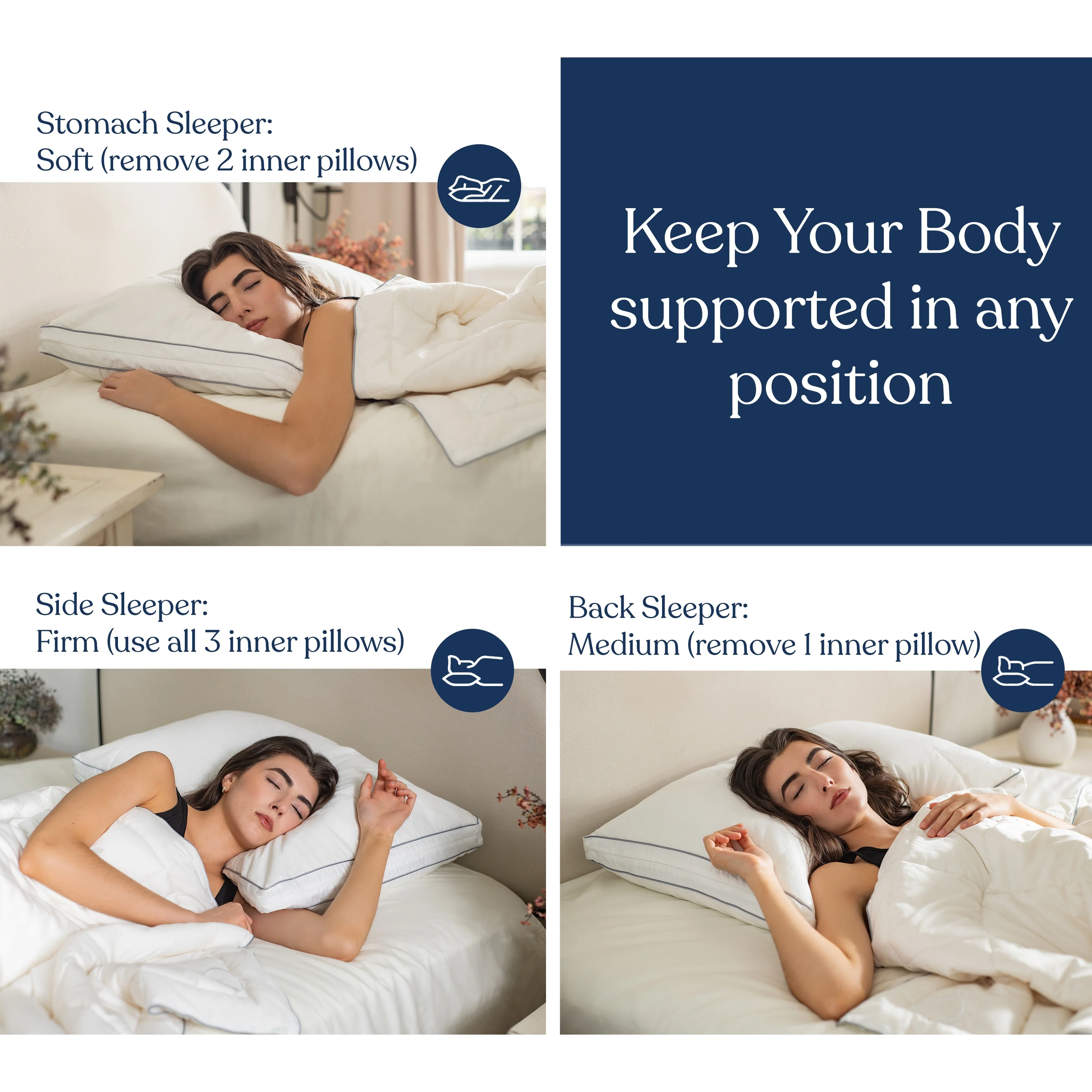 3-in-1 Adjustable White Goose Down Pillow By DOWNLITE? (Hypoallergenic)