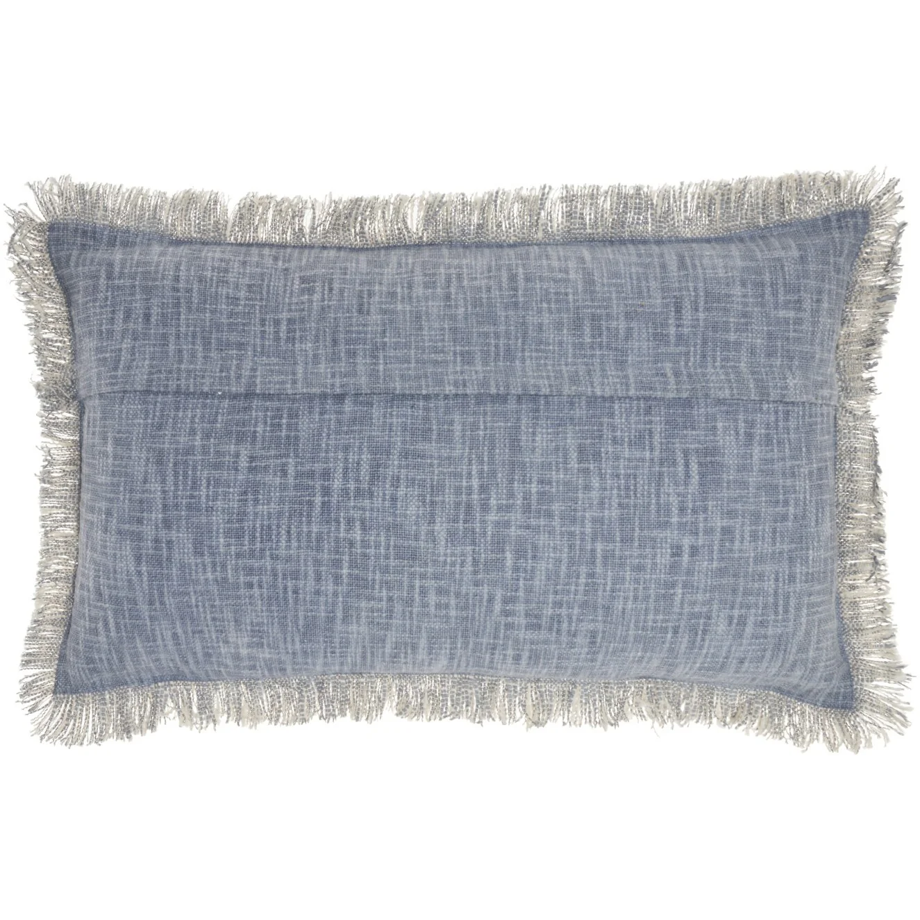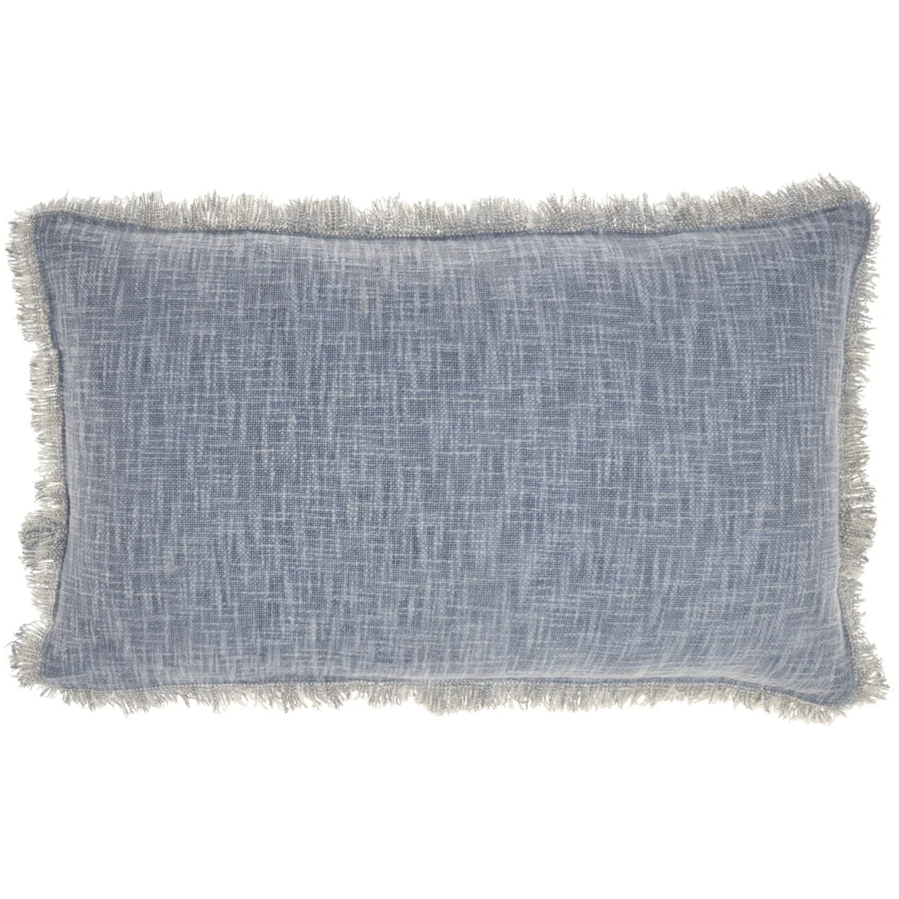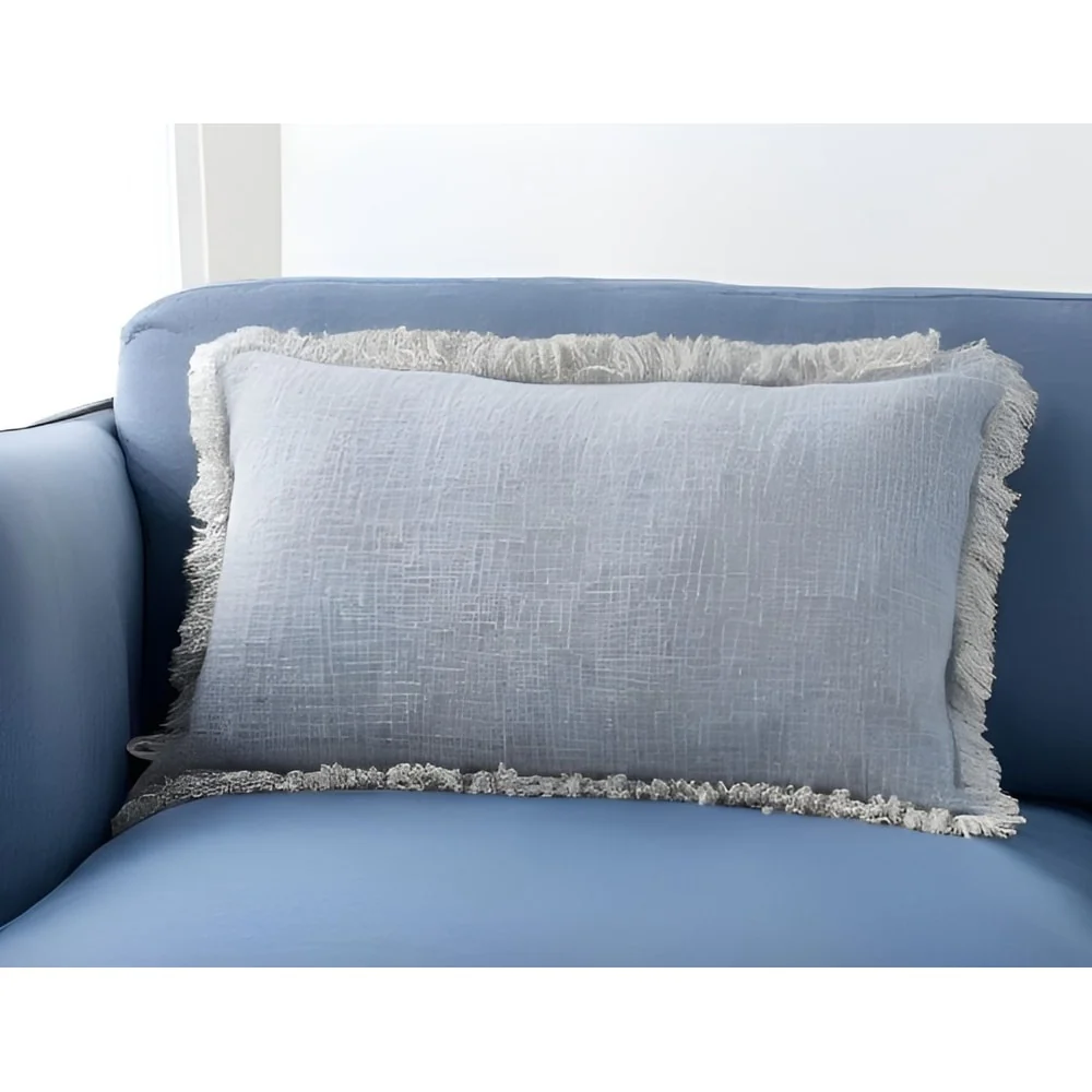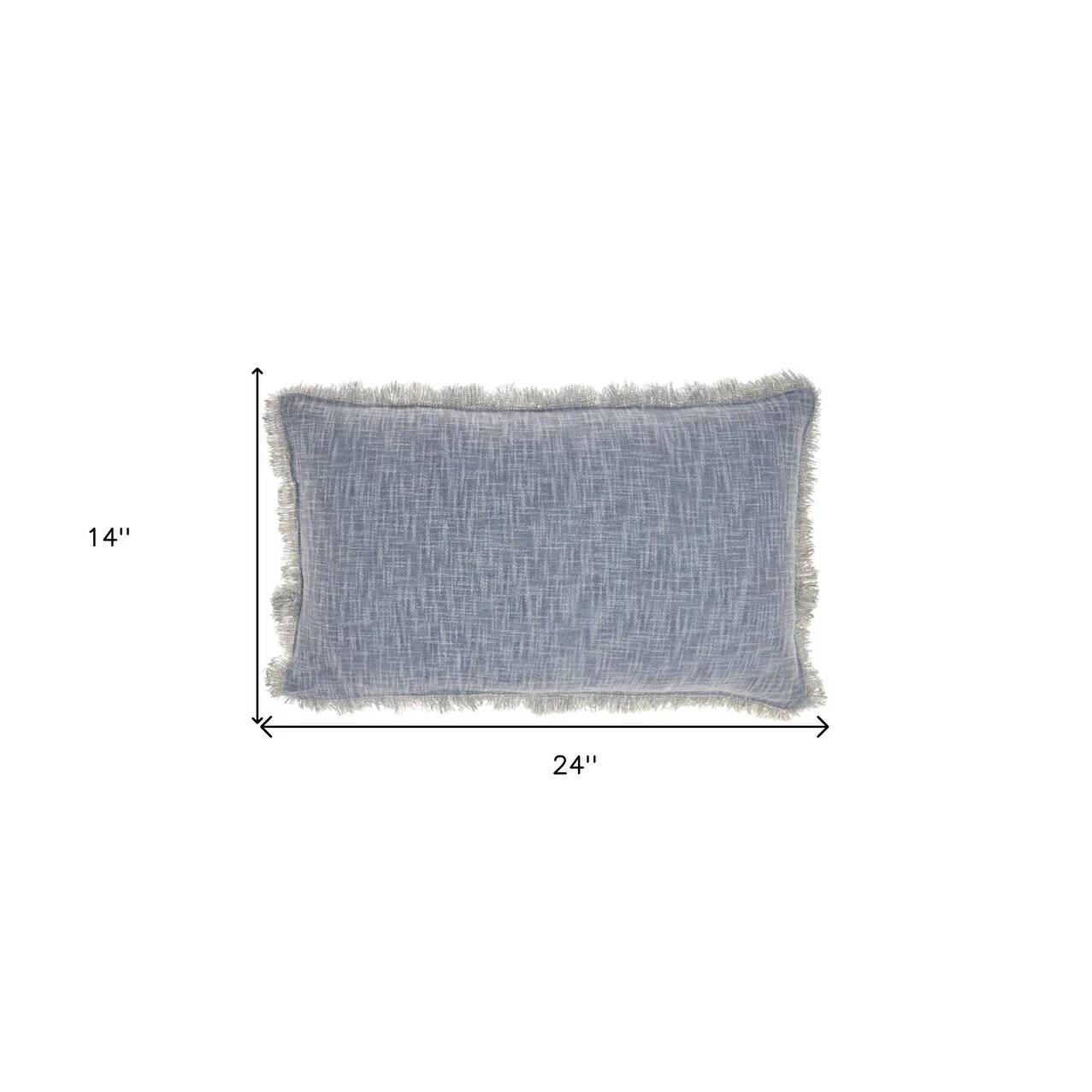 14" X 24" Blue Cotton Throw Pillow With Fringe