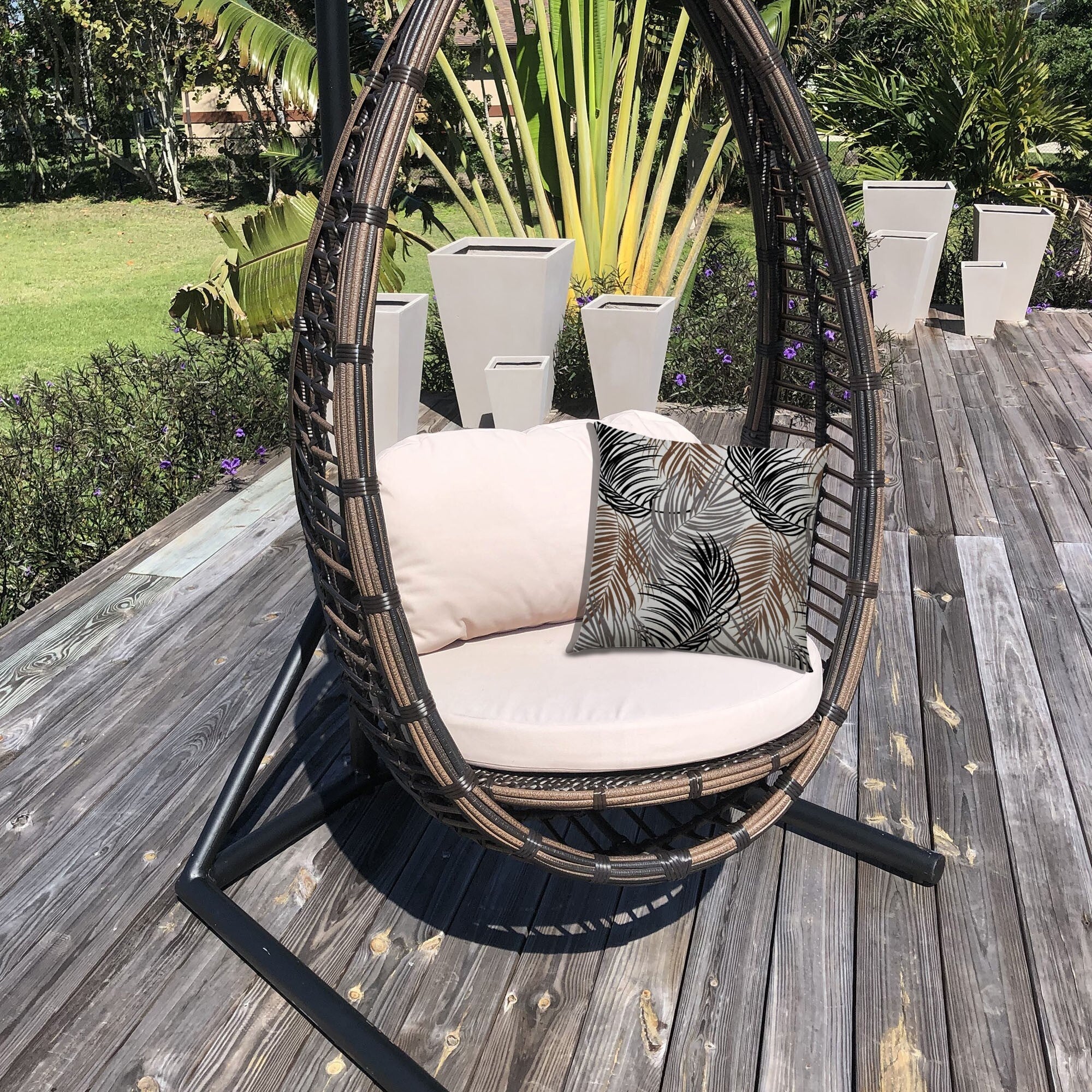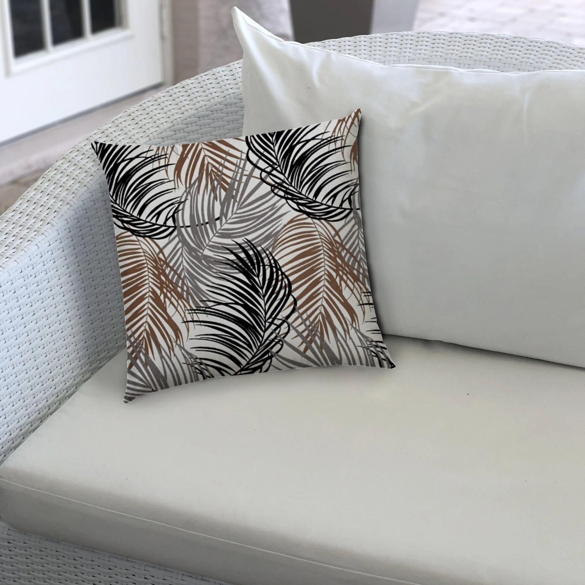 20" X 20" Brown Gray And Black Zippered Polyester Tropical Throw Pillow Cover - Grey