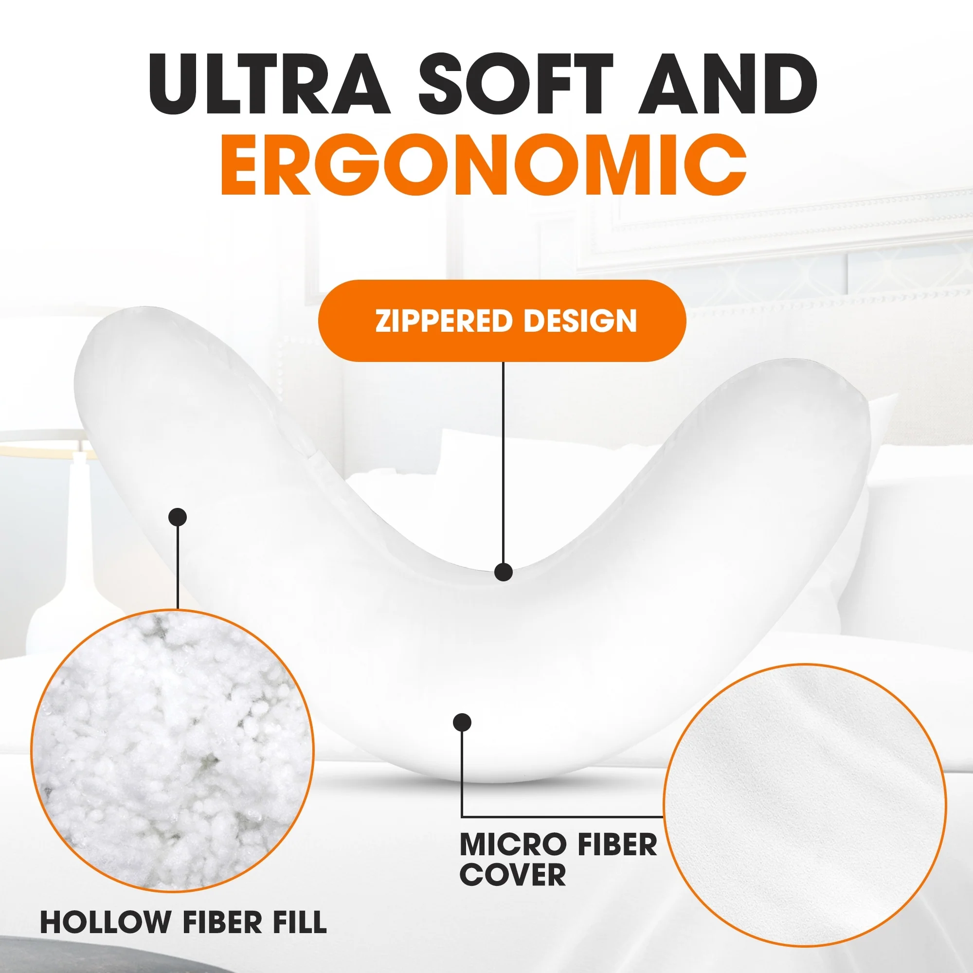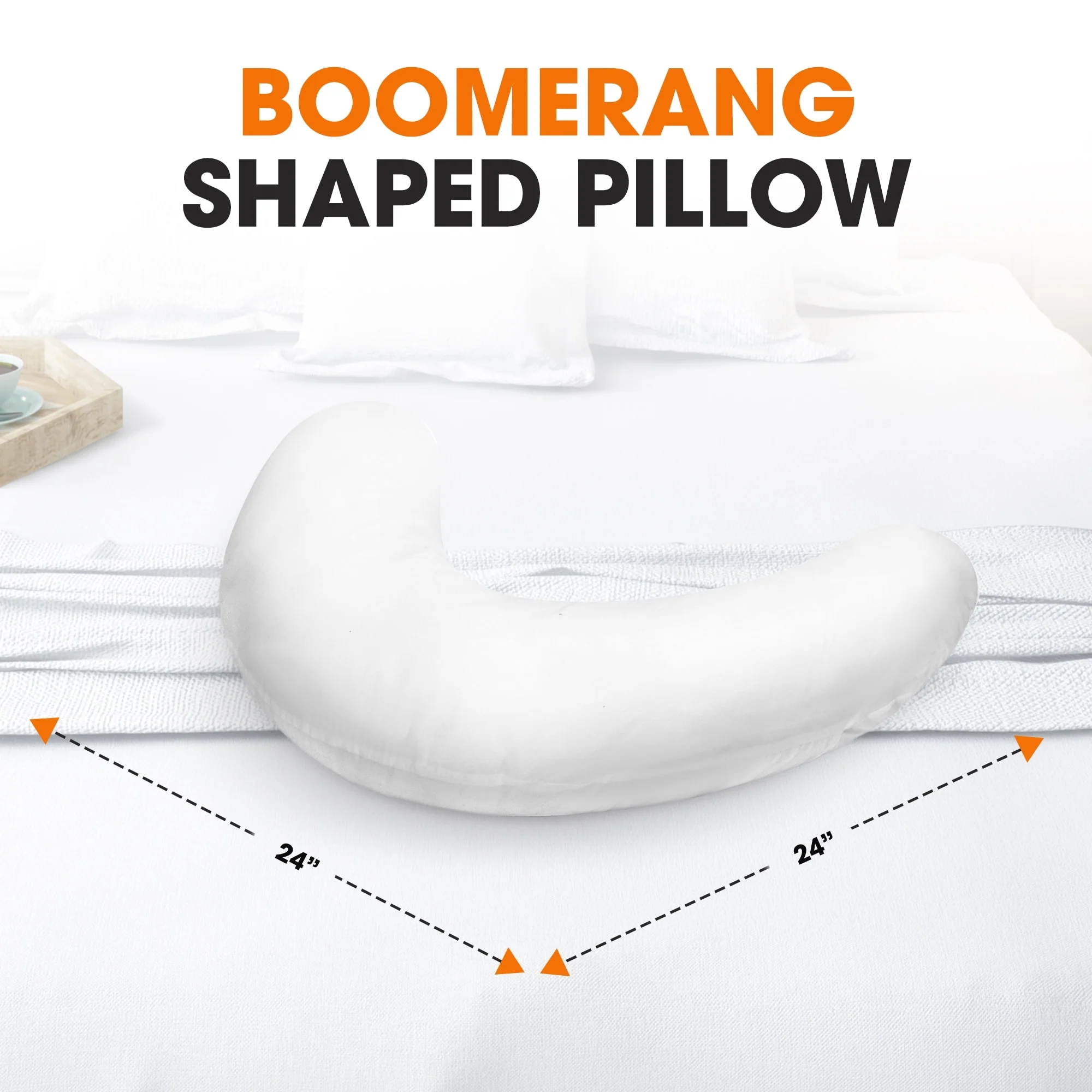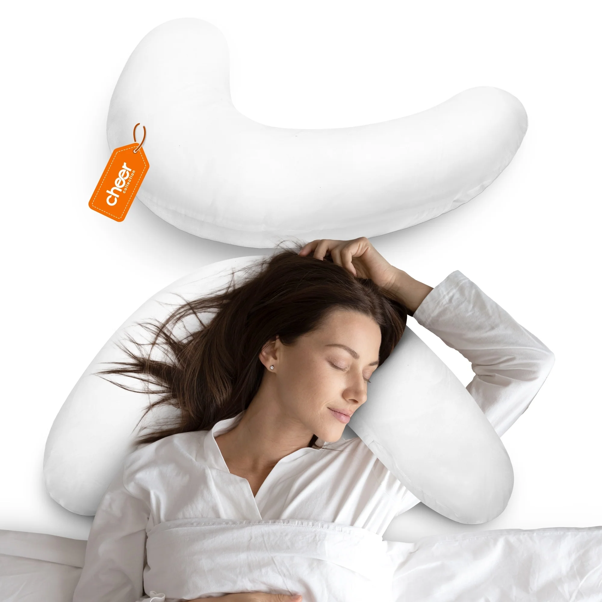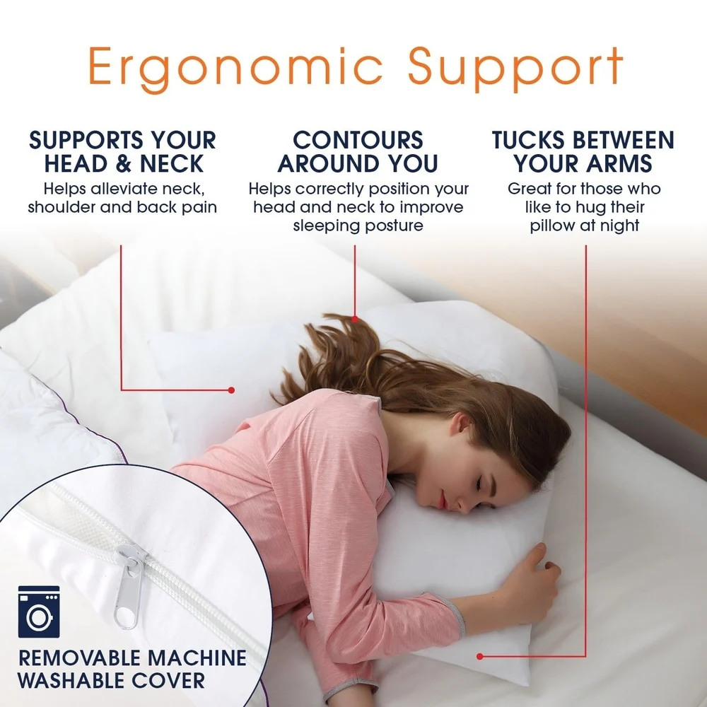 Cheer Collection Boomerang Shaped Bed Pillow with Washable Cover - White
