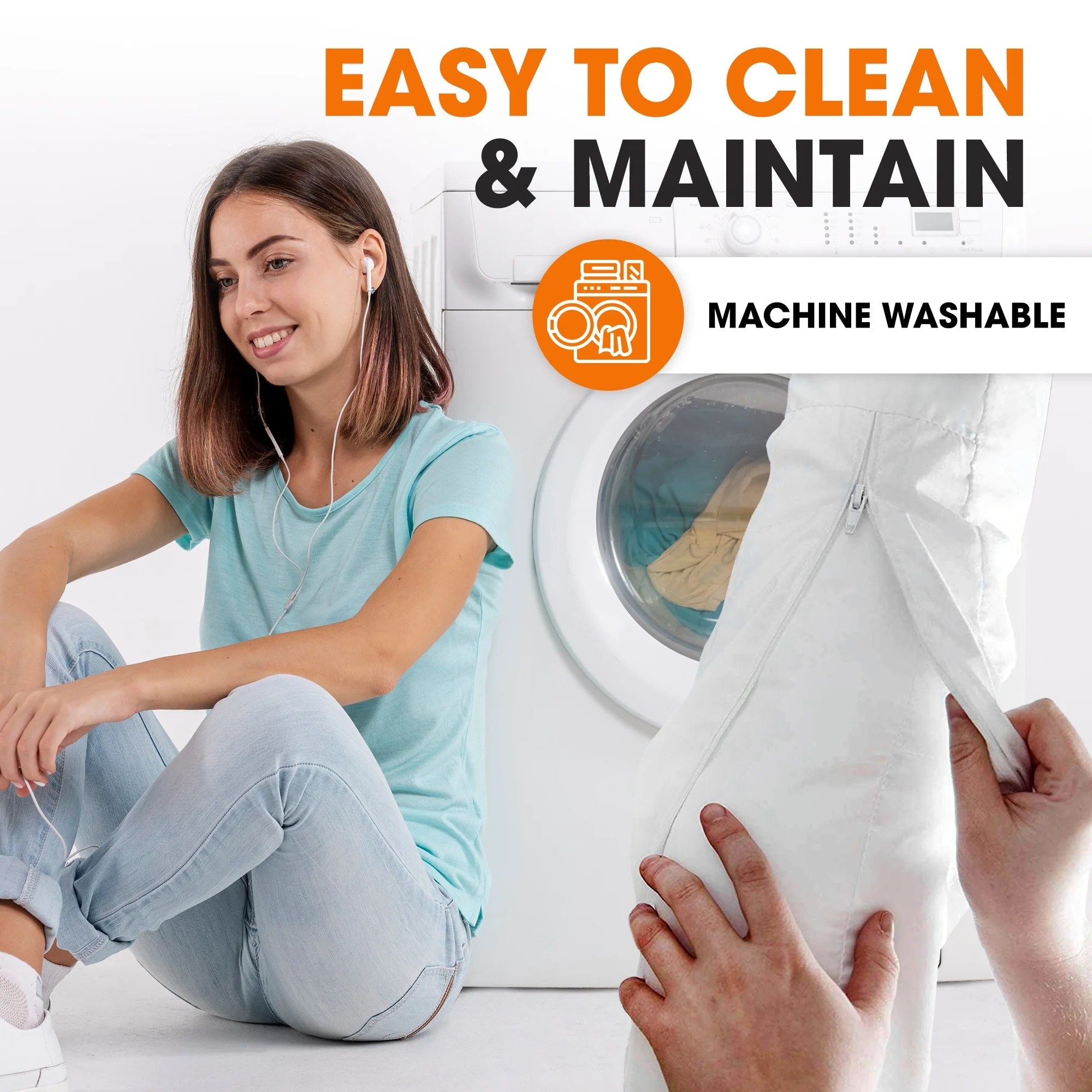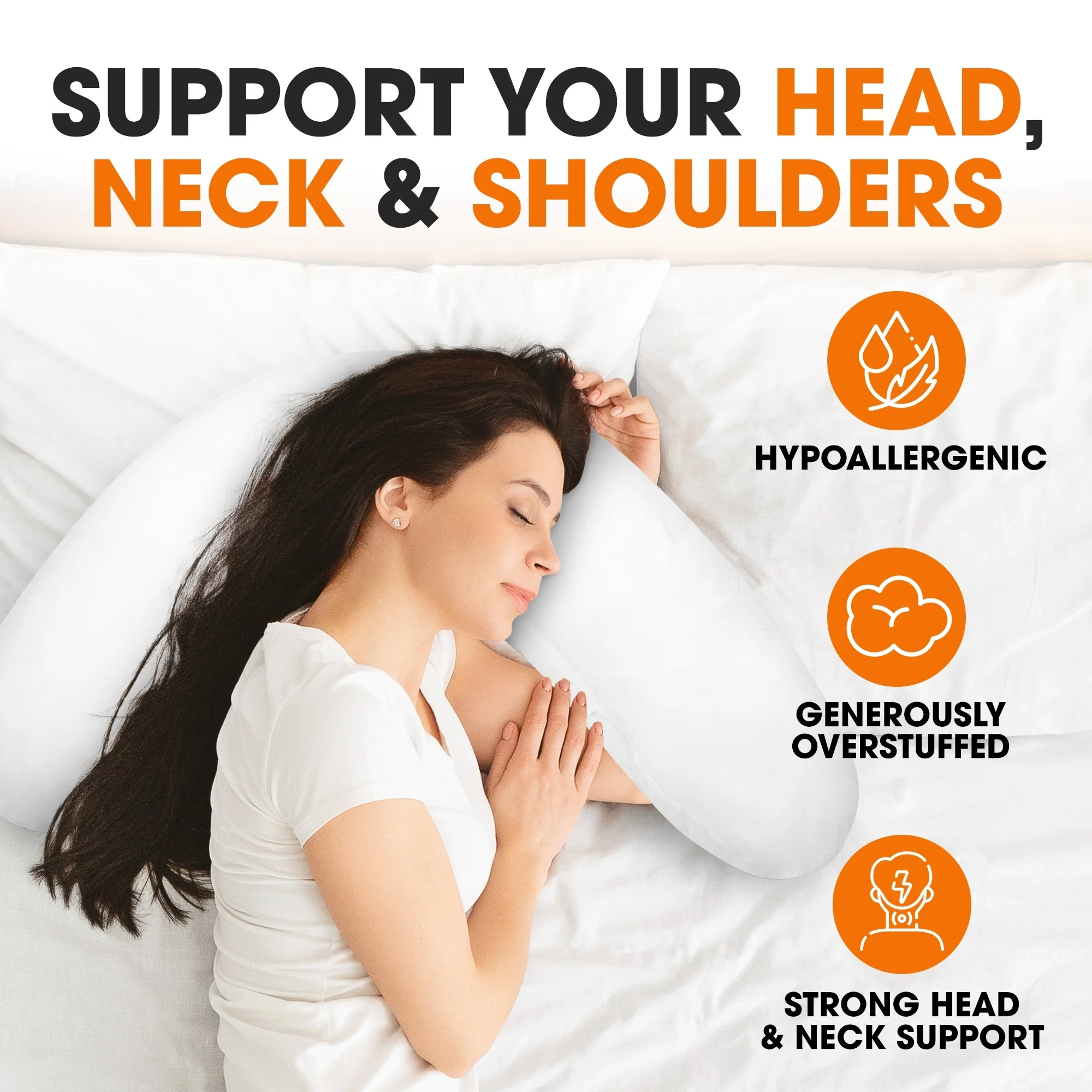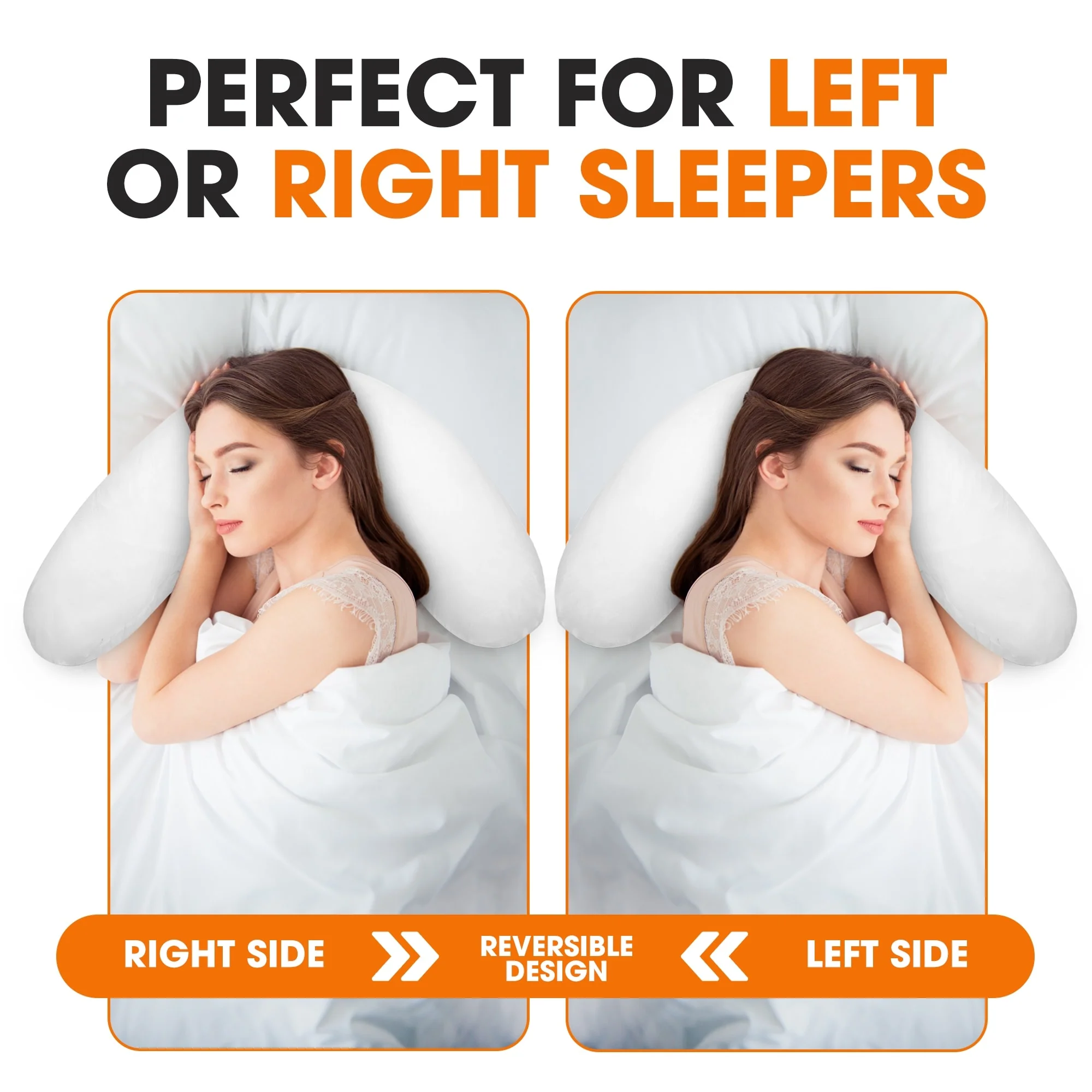 Cheer Collection Boomerang Shaped Bed Pillow with Washable Cover - White